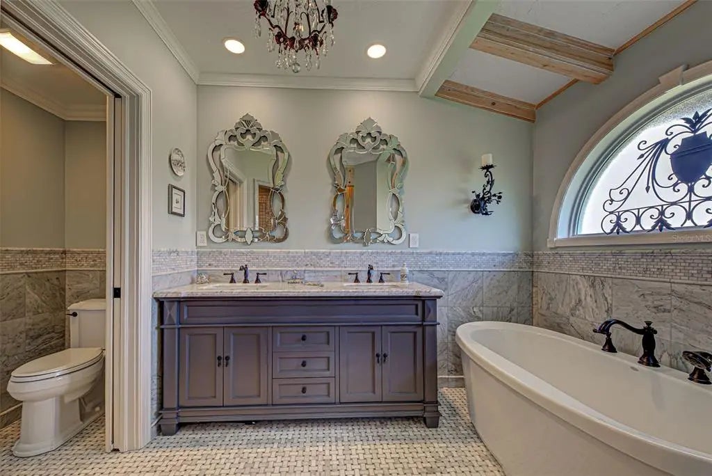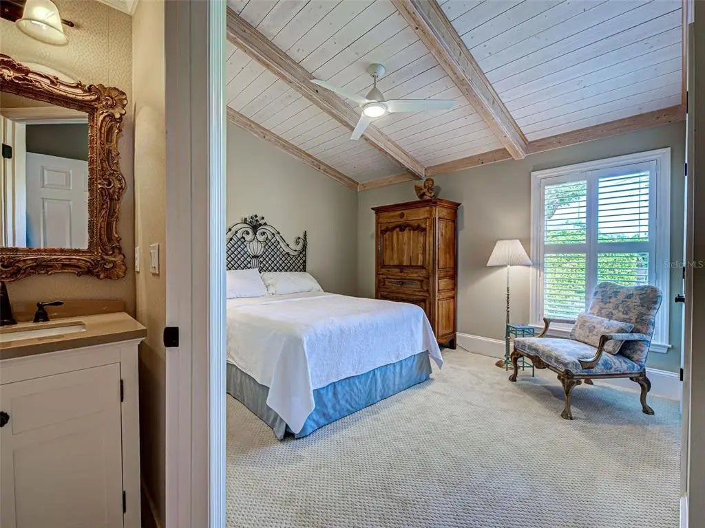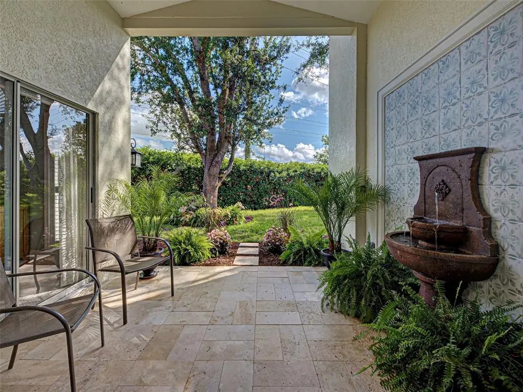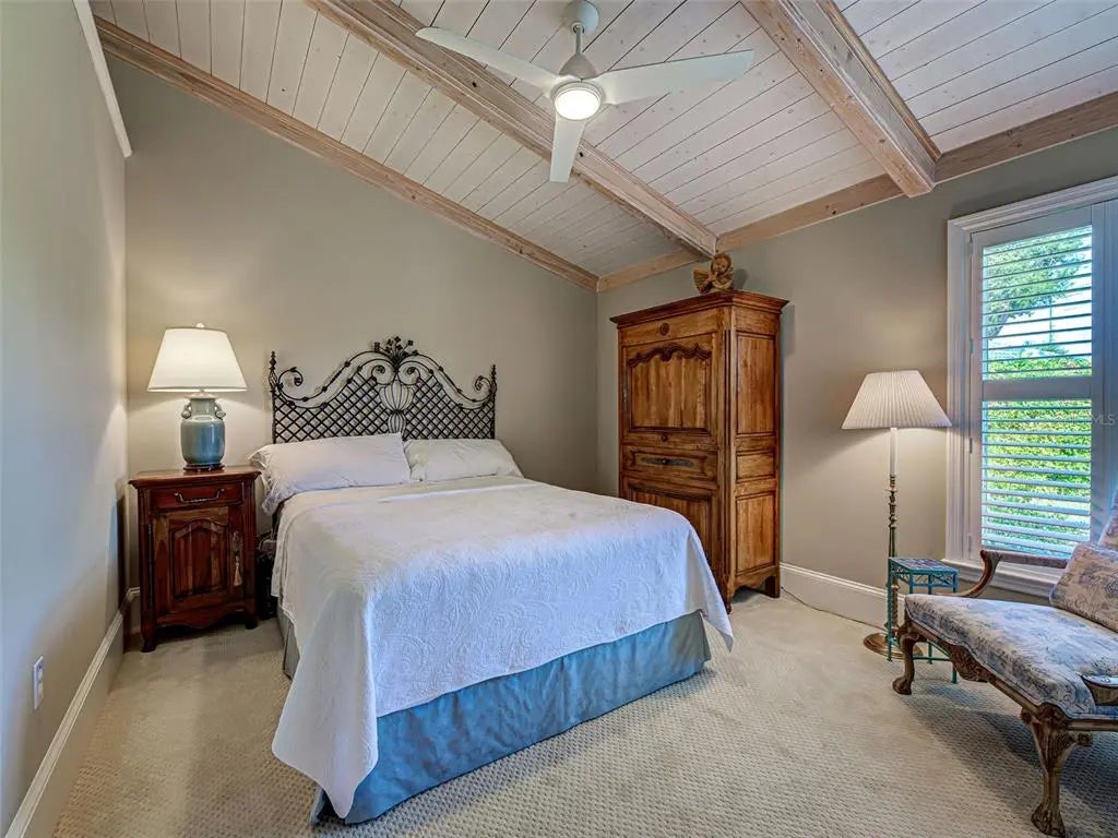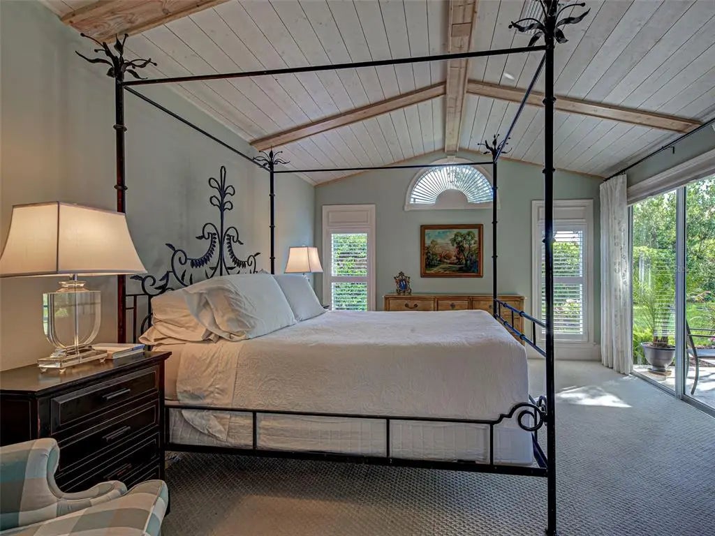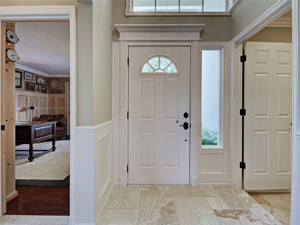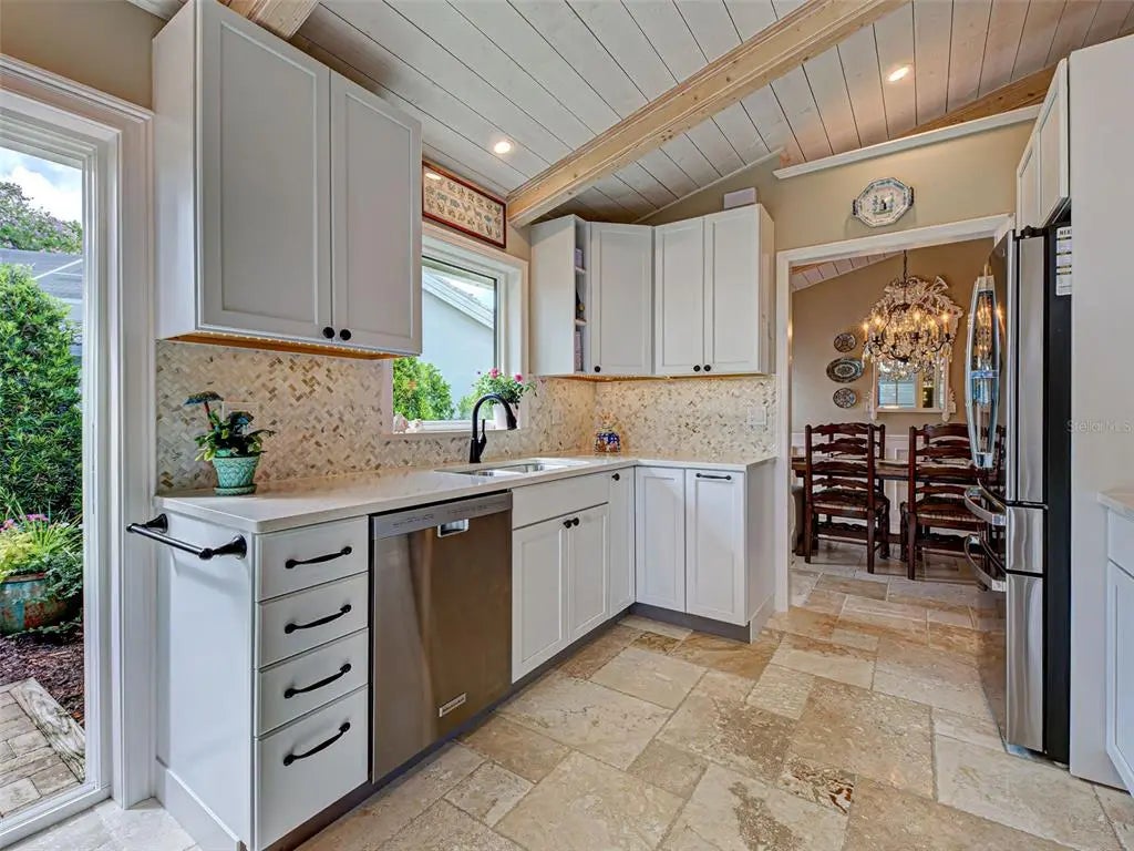 Many homes are listed as Mov-In Ready! When you actually see them, how many really are? This CHESTNUT CREEK property is in the perfect location, close to shopping, the beach, and downtown Venice. It has undergone a TOTAL UPGRADE from top to bottom, inside and out. Nestled in mature landscaping, you will find an exceptional home. The owners are trained in interior design and architectural disciplines. This home you will enjoy without worry. Whole House surge protection was installed, a COMPLETE TEAROFF TILE REROOF was done in 2022, with a wind mitigation and inspection report. In 2025 a new water heater was added and a county requirement for a BACK-FLOW PROTECTION has been inspected and in compliance with their requirement. Step into the home and you will instantly see the amazing use of detailed architectural elements, and high-end finishes. Cathedral Ceilings with whitewashed wood ceilings framed in pickled pine beams are present though-out the home, TRAVERTINE STONE flooring as well. FOYER: The coffered Foyer ceiling as you enter is highlighted by the oversized chandelier - it was acquired from the owners of the Ritz Carlton Pent House in Sarasota. Chair rail was used and raised paneling installed under it continuing into the dining room. Special detail was given to the front door surround, and crown molding was installed where appropriate. Travertine flooring flows through the house. LIVING ROOM: Looking into the Living Room the focal point is the decorative FIREPLACE - the mantle is from a Main-line Philidelphia Mansion, it is an antique ADAM mantle and is highly regarded. The lighting was upgraded to LED ceiling lights and the chandelier was from a Palm Beach Mansion. The banded wrought iron inserted in the 1/2 window is from EGYPT and is 300 years old. The massive built-in bookcase was custom designed with plenty of extra storage in the lower cabinets, a must for Florida homes. As your view shifts to the outside, the 3 panel slider look out unto the LANAI, where a fountain and potted plants become the foreground for the backyard. KITCHEN: The chef's kitchen has stainless steel appliances, including a COMBINATION (microwave, convection oven, and air fryer) installed under the counter in the peninsula island. LED lighting was installed in the ceiling and under counter. The Kraft Maid cabinets have lazy Susan shelving in the corner cabinets, pull out drawers, and a silver ware drawer, done in off white and iron hardware. A commercial fan over the slide in stove is vented to the outside. Over the refrigerator cabinet has been modified to handle all over sized trays, cookie sheets, and platters, and long foil or paper rolls. A herringbone marble backsplash completes the look. New low-e glass window and slider handle the heat from the east morning sun. PRIMARY BEDROOM: More ceiling beams, carpet in bedroom and closet. His and Hers walk-in closets and a 5 piece ensuite with separate shower, and water closet. a dual furniture vanity, Venetian mirrors, more beams, a chandlier from a Grosse Point Michigan Automotive magnate, and a beautiful free standing soaker tub all clad in Cararra Marble. COMMUNITY LOW HOA FEE PAYS FOR LAWN, SHRUB, AND TREE REGULAR MAINTENANCE.