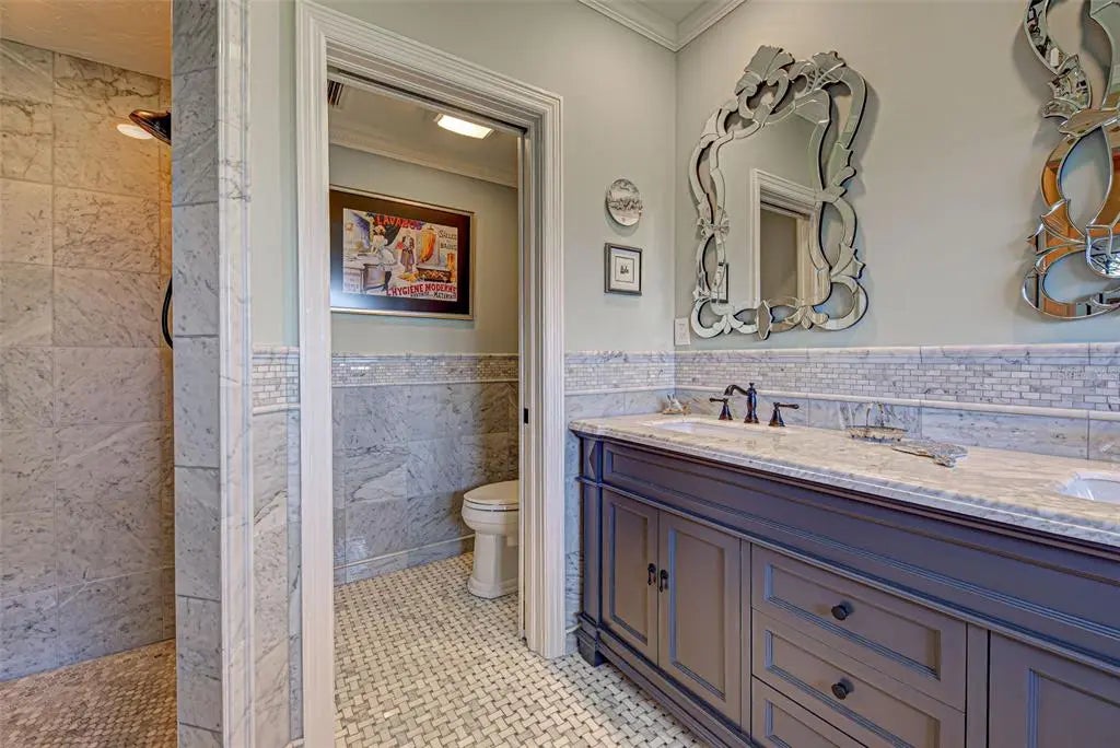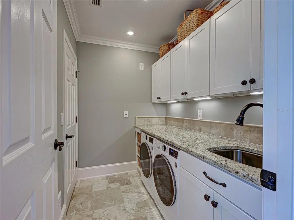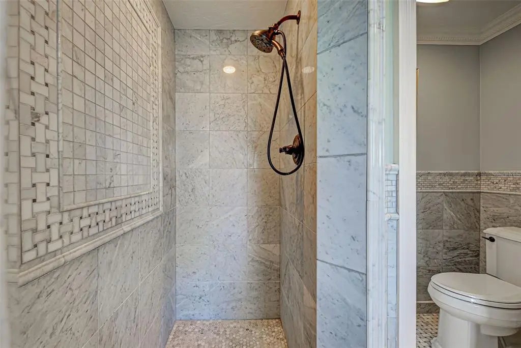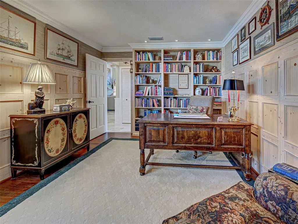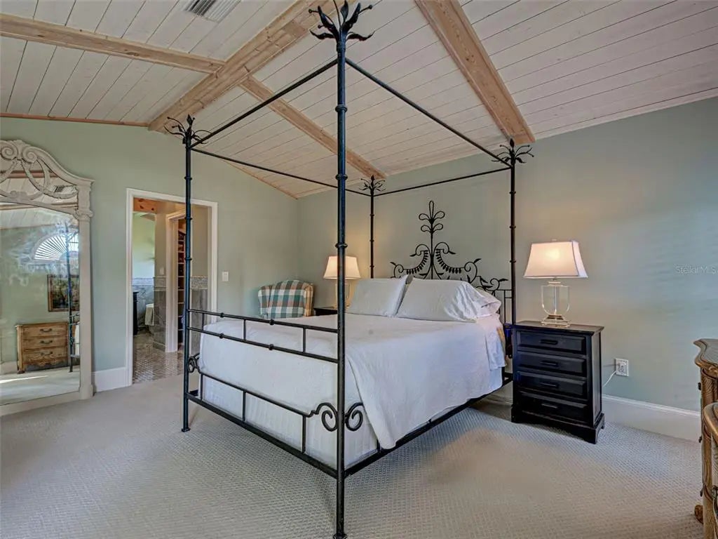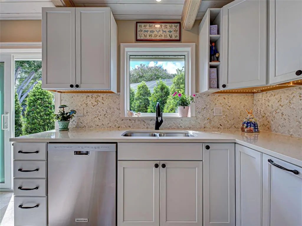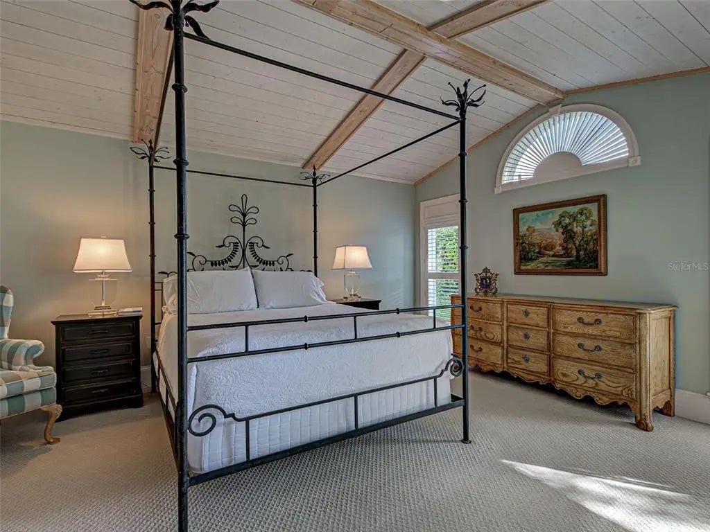 Many homes are listed as Mov-In Ready! When you actually see them, how many really are? This CHESTNUT CREEK property is in the perfect location, close to shopping, the beach, and downtown Venice. It has undergone a TOTAL UPGRADE from top to bottom, inside and out. Nestled in mature landscaping, you will find an exceptional home. The owners are trained in interior design and architectural disciplines. This home you will enjoy without worry. Whole House surge protection was installed, a COMPLETE TEAROFF TILE REROOF was done in 2022, with a wind mitigation and inspection report. In 2025 a new water heater was added and a county requirement for a BACK-FLOW PROTECTION has been inspected and in compliance with their requirement. Step into the home and you will instantly see the amazing use of detailed architectural elements, and high-end finishes. Cathedral Ceilings with whitewashed wood ceilings framed in pickled pine beams are present though-out the home, TRAVERTINE STONE flooring as well. FOYER: The coffered Foyer ceiling as you enter is highlighted by the oversized chandelier - it was acquired from the owners of the Ritz Carlton Pent House in Sarasota. Chair rail was used and raised paneling installed under it continuing into the dining room. Special detail was given to the front door surround, and crown molding was installed where appropriate. Travertine flooring flows through the house. LIVING ROOM: Looking into the Living Room the focal point is the decorative FIREPLACE - the mantle is from a Main-line Philidelphia Mansion, it is an antique ADAM mantle and is highly regarded. The lighting was upgraded to LED ceiling lights and the chandelier was from a Palm Beach Mansion. The banded wrought iron inserted in the 1/2 window is from EGYPT and is 300 years old. The massive built-in bookcase was custom designed with plenty of extra storage in the lower cabinets, a must for Florida homes. As your view shifts to the outside, the 3 panel slider look out unto the LANAI, where a fountain and potted plants become the foreground for the backyard. KITCHEN: The chef's kitchen has stainless steel appliances, including a COMBINATION (microwave, convection oven, and air fryer) installed under the counter in the peninsula island. LED lighting was installed in the ceiling and under counter. The Kraft Maid cabinets have lazy Susan shelving in the corner cabinets, pull out drawers, and a silver ware drawer, done in off white and iron hardware. A commercial fan over the slide in stove is vented to the outside. Over the refrigerator cabinet has been modified to handle all over sized trays, cookie sheets, and platters, and long foil or paper rolls. A herringbone marble backsplash completes the look. New low-e glass window and slider handle the heat from the east morning sun. PRIMARY BEDROOM: More ceiling beams, carpet in bedroom and closet. His and Hers walk-in closets and a 5 piece ensuite with separate shower, and water closet. a dual furniture vanity, Venetian mirrors, more beams, a chandlier from a Grosse Point Michigan Automotive magnate, and a beautiful free standing soaker tub all clad in Cararra Marble. COMMUNITY LOW HOA FEE PAYS FOR LAWN, SHRUB, AND TREE REGULAR MAINTENANCE.