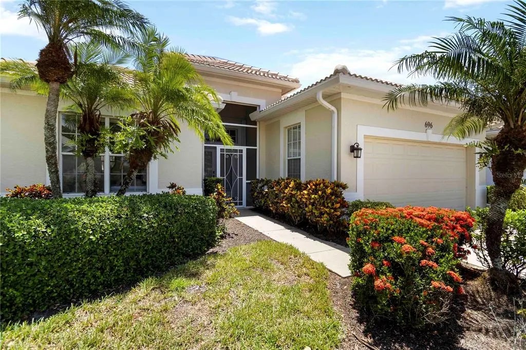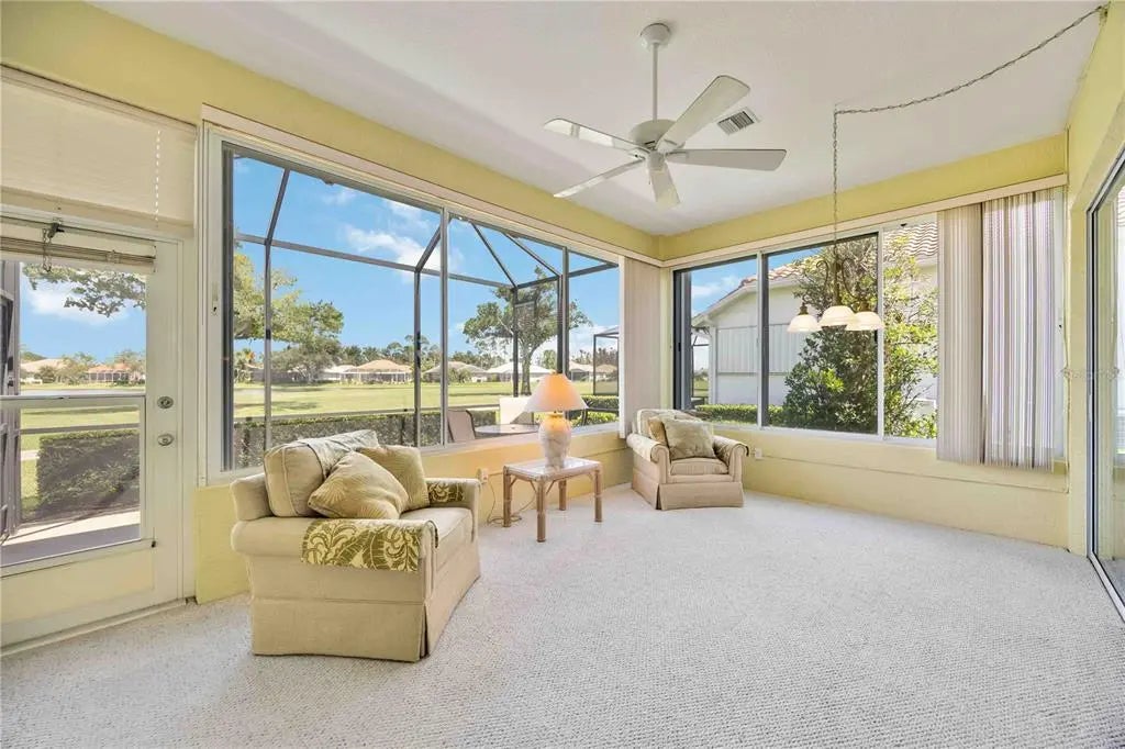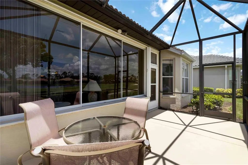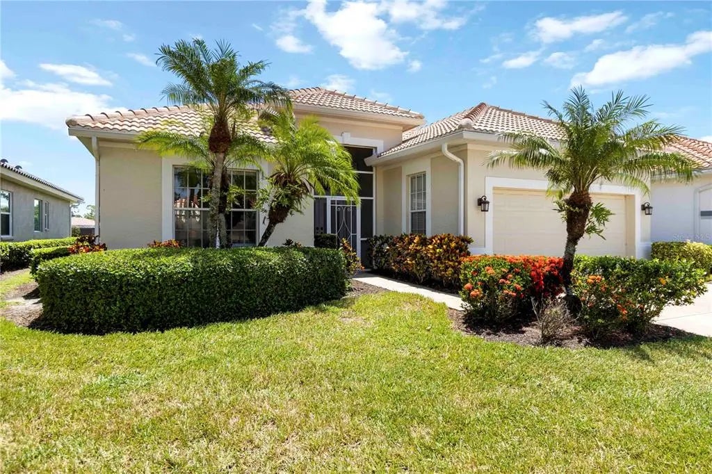 PRICE IMPROVEMENT!! SELLERS ARE MOTIVATED!! Discover serene living in this exquisite, TURNKEY, fully furnished custom built home by J & J Homes in the beautiful, gated Sawgrass community, which is located in the MAINTENANCE-FREE section. No detail was missed in the stunning updates, including recent updates in the kitchen with soft close drawers, pull out drawers in the cabinets, both bathrooms with new solid wood cabinets and crystal countertops. Beautiful luxury vinyl flooring flows throughout the main living areas. The home boasts impressive 10-foot ceilings, with elegant tray ceilings in the living room and master bedroom, enhancing the light-filled open floor plan that is perfect for entertaining. Elegant 8 ft French doors lead into the secondary bedroom and the master suite, which features a large walk-in closet. Enjoy peace of mind knowing the home features a newer tile roof (2023) and A/C (2019). For added storm protection, the home is also equipped with accordion shutters on the front and back entrances as well as a reinforced 2-car garage door. Step onto your private screened lanai to savor panoramic views of the tranquil lake and the pristine course. You are situated on the 9th hole within the Sawgrass Community, a beautiful 9-hole, par-36 championship course known for its challenging layout winding through lush nature preserves. A standout feature is its inclusion in the prestigious Waterford Golf Group, granting residents access to three distinct clubs: Sawgrass, Waterford, and Capri Isles. Beyond golf, the community offers a carefree lifestyle with its own clubhouse, fitness center, pool, plus tennis and pickleball courts. (No golf club membership is included or required), offering the ultimate flexibility to enjoy the views or pay as you play. This is an unparalleled opportunity to own a move-in-ready slice of paradise, all just a short drive from historic downtown Venice, award-winning beaches, and fine dining.