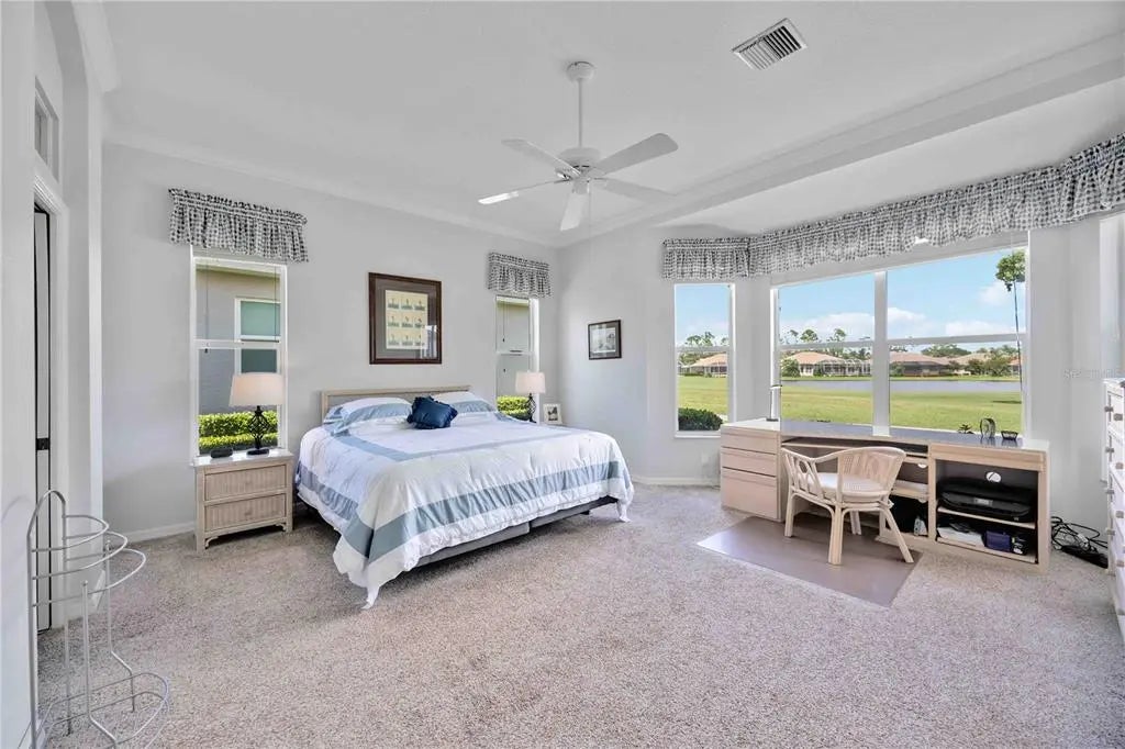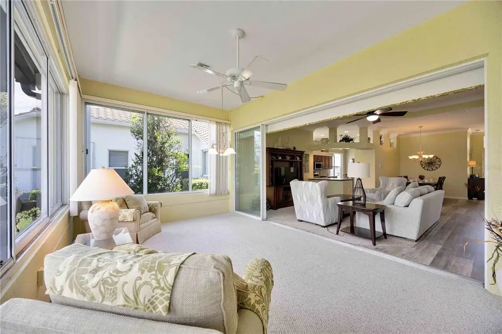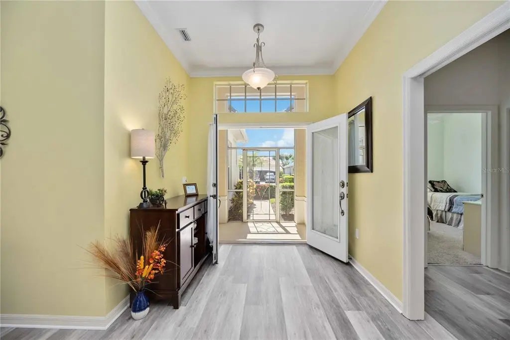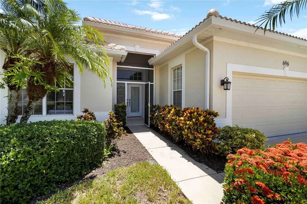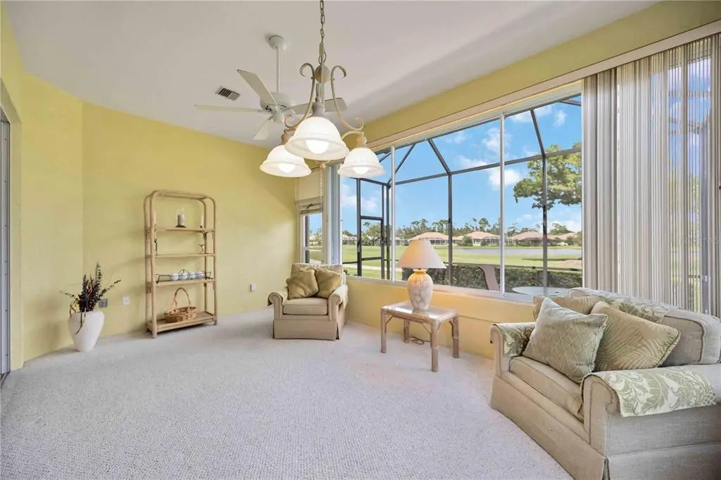 PRICE IMPROVEMENT!! SELLERS ARE MOTIVATED!! Discover serene living in this exquisite, TURNKEY, fully furnished custom built home by J & J Homes in the beautiful, gated Sawgrass community, which is located in the MAINTENANCE-FREE section. No detail was missed in the stunning updates, including recent updates in the kitchen with soft close drawers, pull out drawers in the cabinets, both bathrooms with new solid wood cabinets and crystal countertops. Beautiful luxury vinyl flooring flows throughout the main living areas. The home boasts impressive 10-foot ceilings, with elegant tray ceilings in the living room and master bedroom, enhancing the light-filled open floor plan that is perfect for entertaining. Elegant 8 ft French doors lead into the secondary bedroom and the master suite, which features a large walk-in closet. Enjoy peace of mind knowing the home features a newer tile roof (2023) and A/C (2019). For added storm protection, the home is also equipped with accordion shutters on the front and back entrances as well as a reinforced 2-car garage door. Step onto your private screened lanai to savor panoramic views of the tranquil lake and the pristine course. You are situated on the 9th hole within the Sawgrass Community, a beautiful 9-hole, par-36 championship course known for its challenging layout winding through lush nature preserves. A standout feature is its inclusion in the prestigious Waterford Golf Group, granting residents access to three distinct clubs: Sawgrass, Waterford, and Capri Isles. Beyond golf, the community offers a carefree lifestyle with its own clubhouse, fitness center, pool, plus tennis and pickleball courts. (No golf club membership is included or required), offering the ultimate flexibility to enjoy the views or pay as you play. This is an unparalleled opportunity to own a move-in-ready slice of paradise, all just a short drive from historic downtown Venice, award-winning beaches, and fine dining.