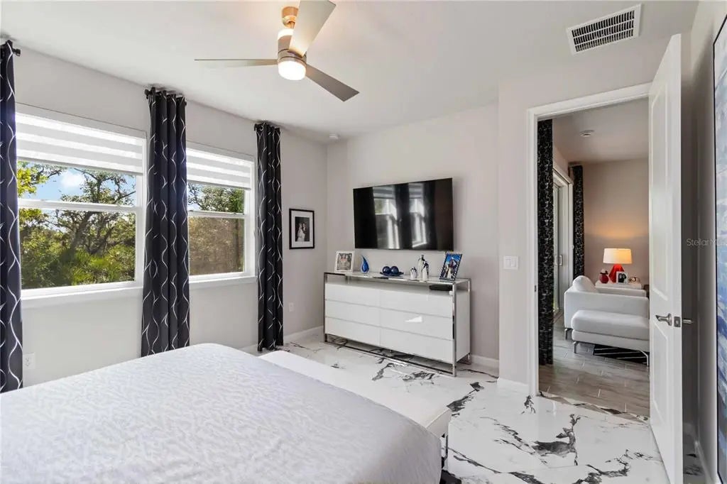 - Interior FeaturesCeiling Fan(s), Kitchen/Family Room Combo, Open Floorplan, Primary Bedroom Main Floor, Split Bedroom, Stone Counters, Walk-In Closet(s)