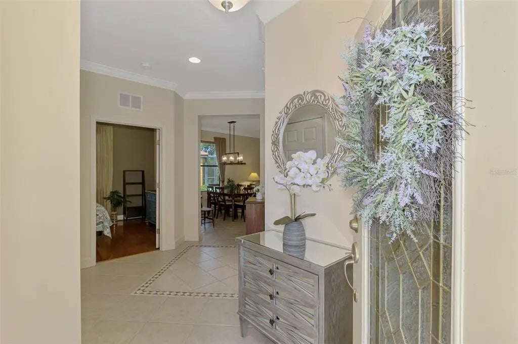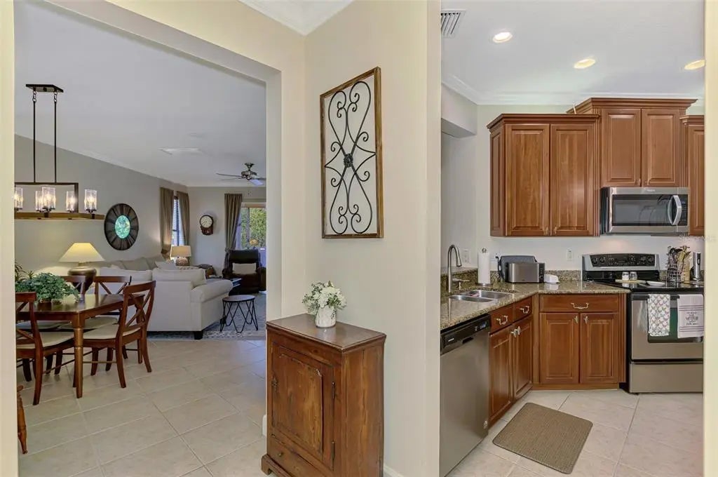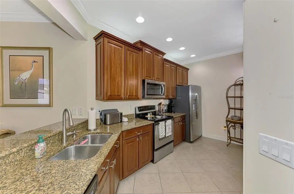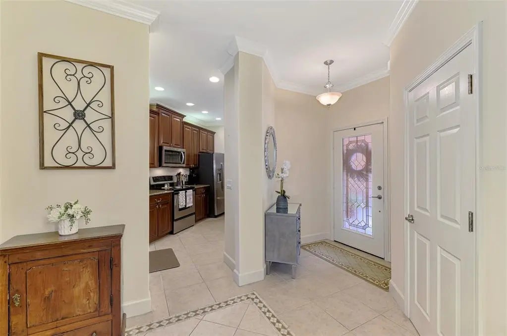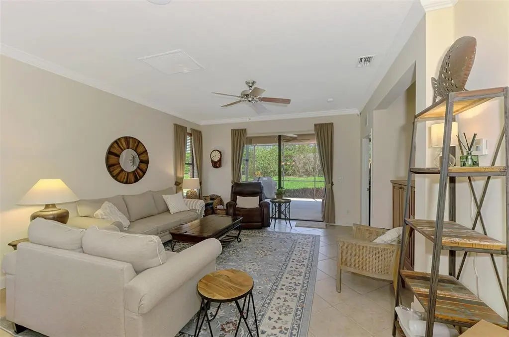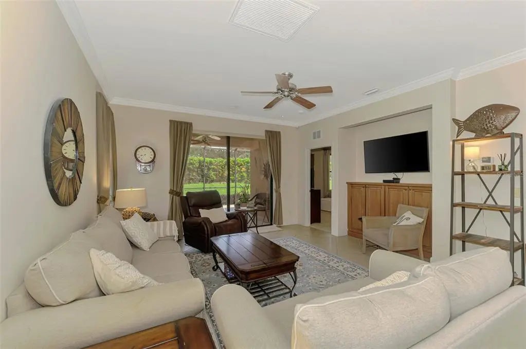 Discover resort-style living in the vibrant 55+ community of Venetian Falls with this stunning former model villa at 1350 Maseno Dr, Venice, FL. This meticulously maintained 2-bedroom, 2-bathroom end-unit villa, spanning 1,574 square feet, offers an open floor plan, modern upgrades, and an enviable lifestyle in one of Venice’s premier active adult communities. Step inside to a bright and airy interior, featuring crown molding, a spacious combo living and dining room, and an open-concept layout perfect for entertaining. The gourmet kitchen shines with updated stainless steel appliances, sleek granite countertops, and ample cabinetry, ideal for culinary enthusiasts. The adjacent office/den provides a versatile space for work, hobbies, or relaxation. The primary suite is a serene retreat with generous closet space and a luxurious en-suite bathroom, while the second bedroom and full bathroom provide comfort for guests or family. A separate laundry room adds convenience, and the extended lanai invites you to unwind with tranquil views of the lush surroundings—perfect for morning coffee or evening gatherings. This end-unit villa boasts a 2-car garage with pedestrian door access, ensuring ease and ample storage. As a former model home, it exudes quality craftsmanship and thoughtful design details throughout. Living in Venetian Falls means embracing an active, social lifestyle. Enjoy the resort-style pool, resistance pool, state-of-the-art workout facility with showers and lockers, bocce courts, and a putting area—all just steps from your door. Located in the heart of Venice, you’re minutes from pristine Gulf beaches, downtown shopping, dining, and cultural attractions. Move-in ready and brimming with upgrades, this villa is your gateway to carefree, luxurious living in a vibrant 55+ community. Don’t miss this opportunity to call 1350 Maseno Dr home!