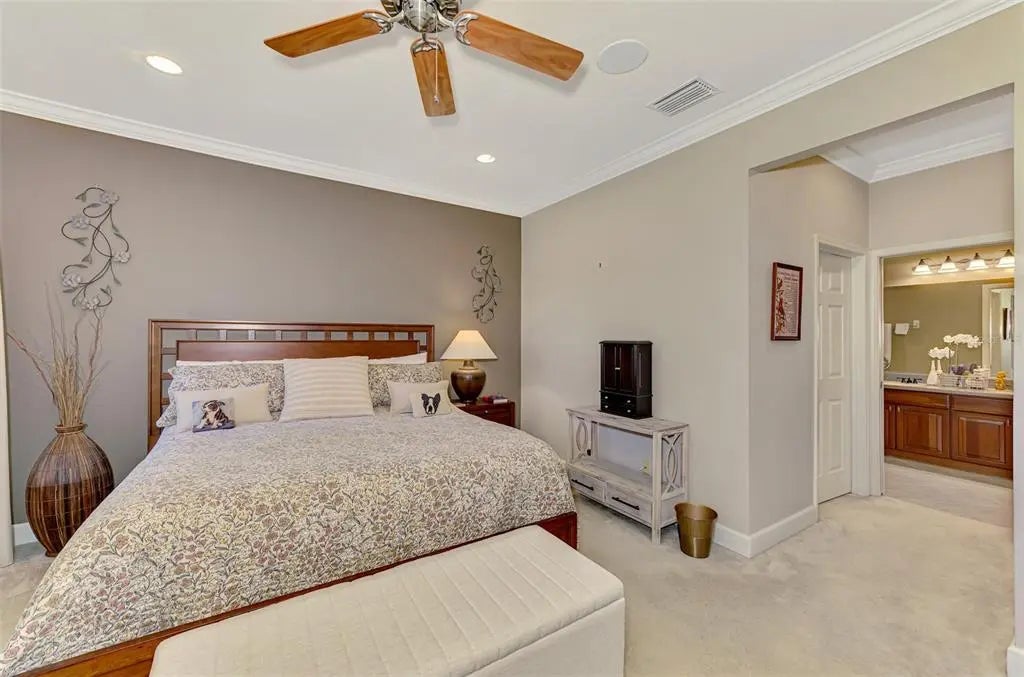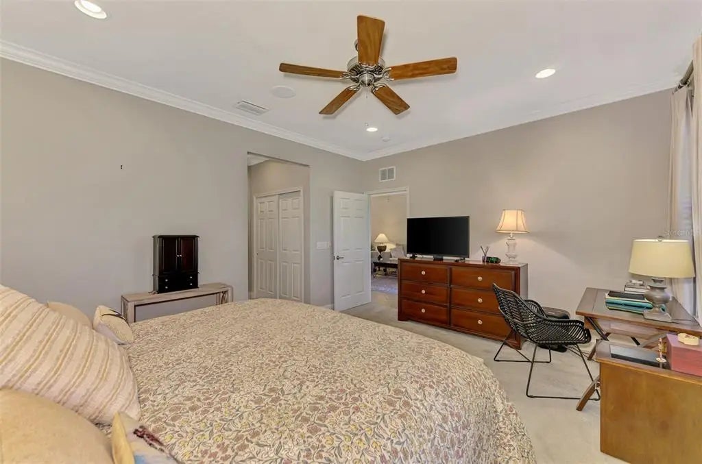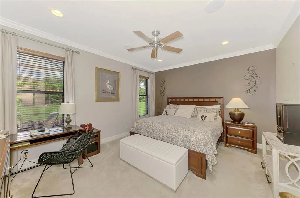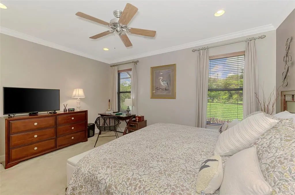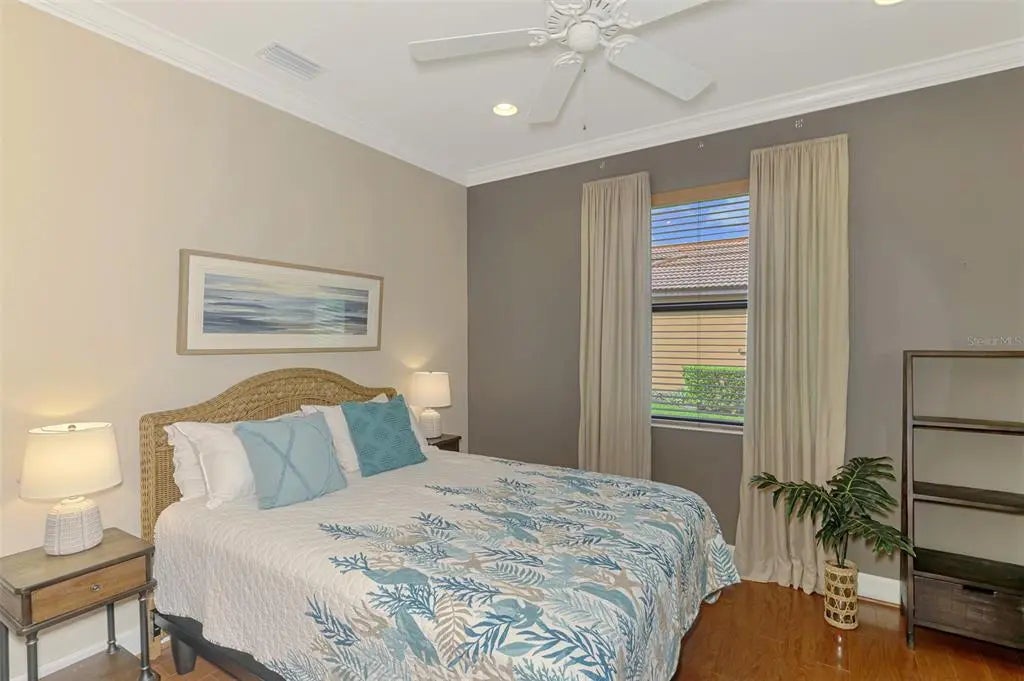 - Interior FeaturesCeiling Fan(s), Crown Molding, In Wall Pest System, Living Room/Dining Room Combo, Walk-In Closet(s), Window Treatments