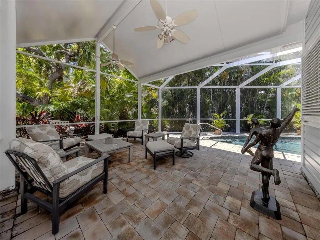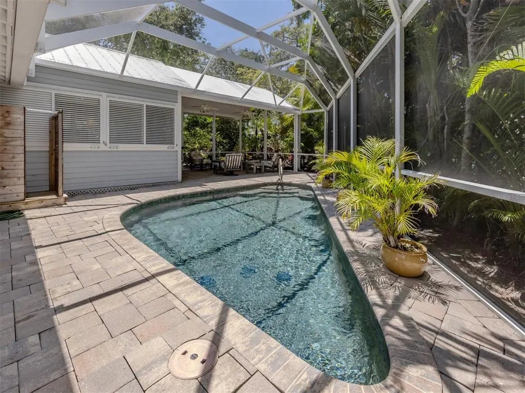 The historic Eagle Point Club in Venice is an exclusive waterfront community located within the privacy of mature foliage on the east, with Roberts Bay and the Intracoastal Waterway on all other sides. The only one of its kind, it was a creation circa 1910 by Bertha Palmer, famed figure in the early development of Sarasota County's Gulf, Bay and Waterfront lands. Eagle Point is a hidden gem, still mostly unknown and unseen by the crowds. Consisting of 24 acres of just 50 homes, 10 are original structures, listed on the National Register of Historic Places. The history is rich, but the focus today is on the pristine residence at 726 Eagle Point Dr. Situated on over 1/3 of an acre, the 1920-built home is move-in ready for the next lucky owners to fall in love with. Updates have been thoughtfully accomplished including the luxury kitchen and baths that are designed to seamlessly maintain the historic ambiance. High ceiling above, original heart of pine flooring below, shaded porches on 3 sides continue the ambiance. Updates in recent times include a perfectly-sized pool, heated and caged, that create outdoor living area of approx. 42X63, built in 2014. The beautifully designed free-standing 2+ car garage and storage building, built in 2011, is as handsome as it is functional. The amazing bonus amenity is the vintage clubhouse that includes guest rooms on the 2nd floor PLUS the free-standing 3-bedroom guest house next door, both of which may be reserved for visiting guests of homeowners. For those seeking a highly desired and unique Florida home, be sure to make an appointment to view this one-of-its-kind property.