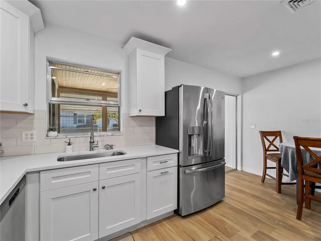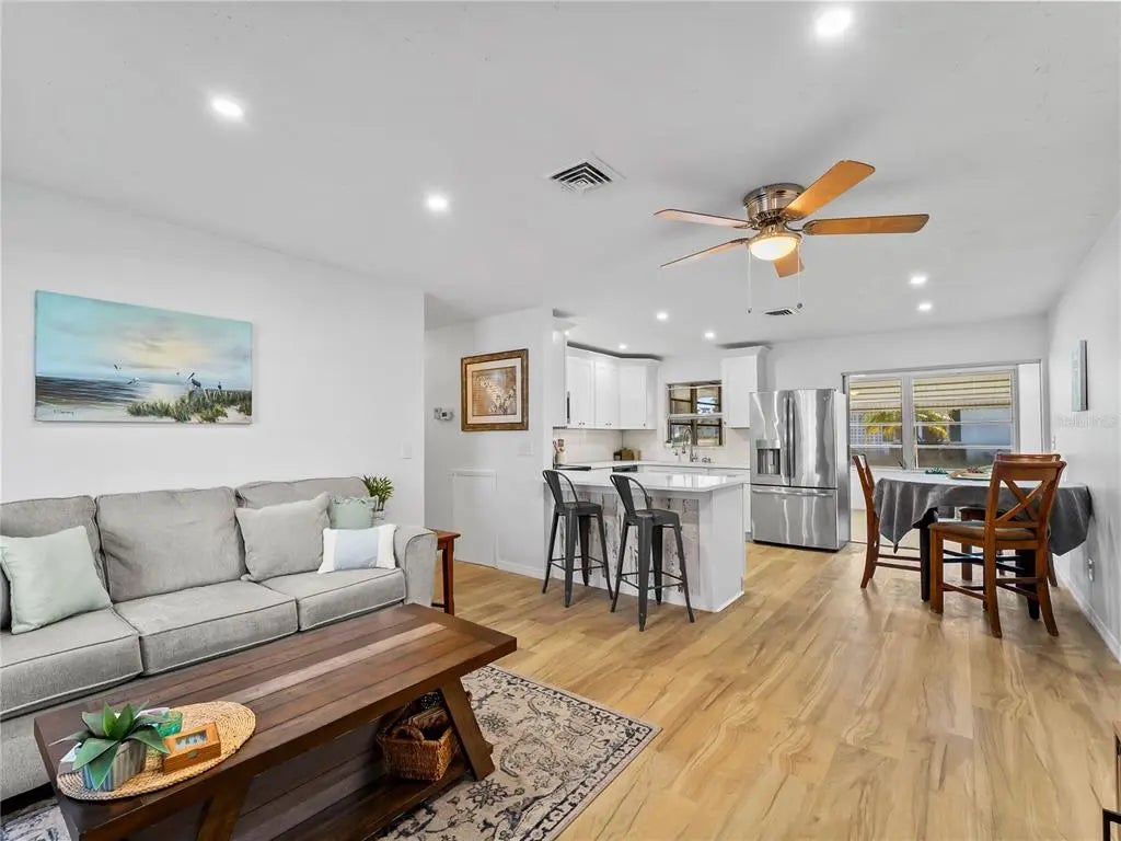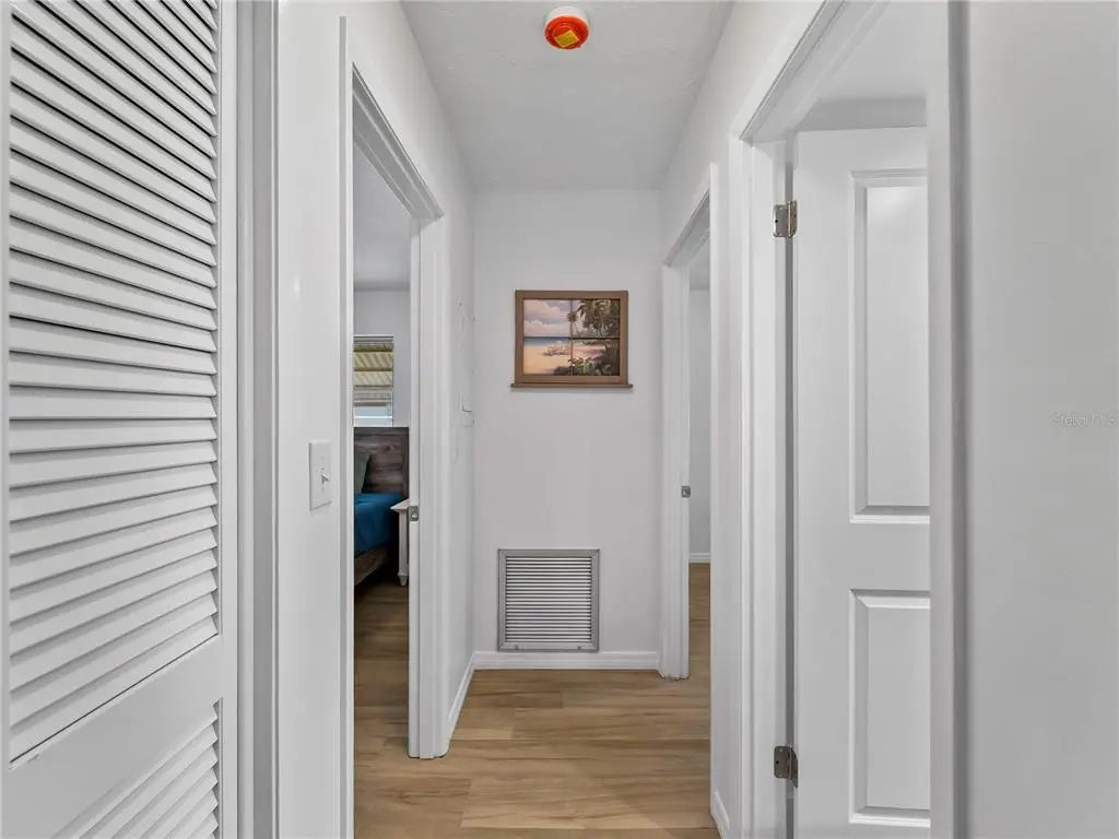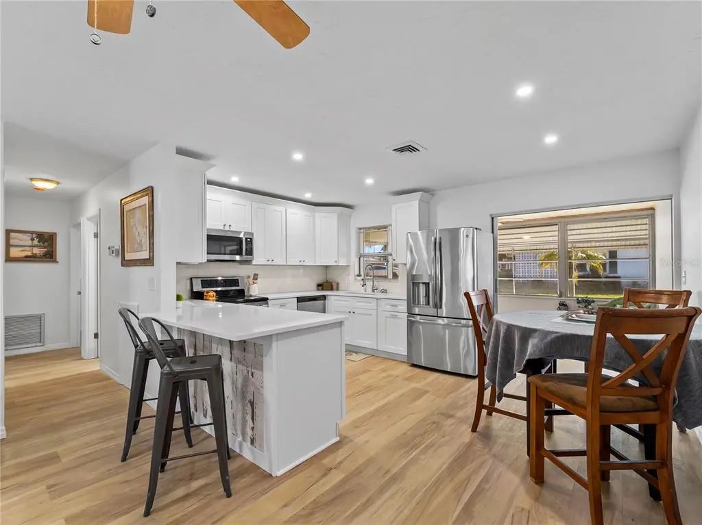 Beautiful, Completely remolded as of January 23rd and new to the market in its current condition. Corner villa unit on the Island of Venice. All Luxury vinyl floors throughout, nice open plan with large kitchen that features all new wood cabinets with soft close draws and doors. Stainless steel appliances. Breakfast bar and Quartz countertops. New Plumbing fixtures and sink. All cooper has been replaced. New Tile shower. This unit has plenty of storage with large walk in closet plus a large walk in hall closet. Freshly painted interior. Easy to see. Small friendly complex featuring a community pool in walking distance along with a clubhouse and shuffleboard.