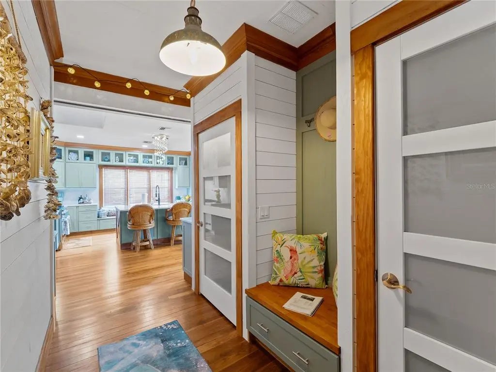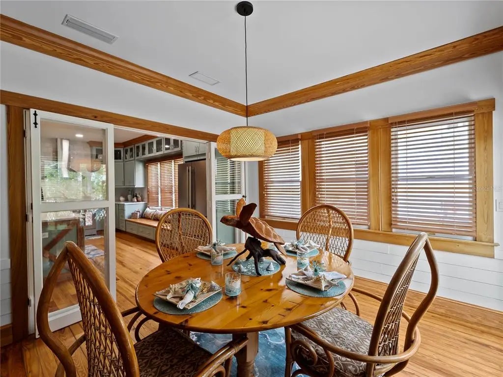 Take a walk back in time to 713 Eagle Point Drive. This is Old Florida at its finest built in 1917. This Home is on the register of National historical places in Florida. Eagle Point neighborhood once was a private hunting and fishing resort for wealthy developers, railroad and business tycoons and now is a lush oasis just a half a mile to downtown Venice for all of your shopping and dining desires. This charming waterfront 2 bed 2 1/2 bath home checks all the boxes with a new 30’ dock slip and 13000 lb boat lift underway on the sailboat water off of Robert’s bay which is a short straight out ride to the Gulf of America! This home just underwent a complete post hurricane renovation with all new designer touches to every room , the master bathroom looks straight out of a magazine. Original heart Pine floors throughout freshly refinished , new chef’s kitchen sure to impress. Everywhere you look in this house including the garage has a special touch. Vaulted living room and kitchen ceilings gives a light airy feel. This home comes furnished, professionally decorated turnkey ,no hassle just bring your suitcase. If you have a big family, you’re in luck! The historic clubhouse, dating back to 1916, adds a touch of nostalgia, and residents can accommodate overflow guests in the 3-bedroom cottage or 4-bedroom clubhouse , sleeping 14+, for neighborhood use only. Homes in this very exclusive and very welcoming neighborhood do not come up for sale very often, don’t miss your opportunity to own a piece of historic paradise.