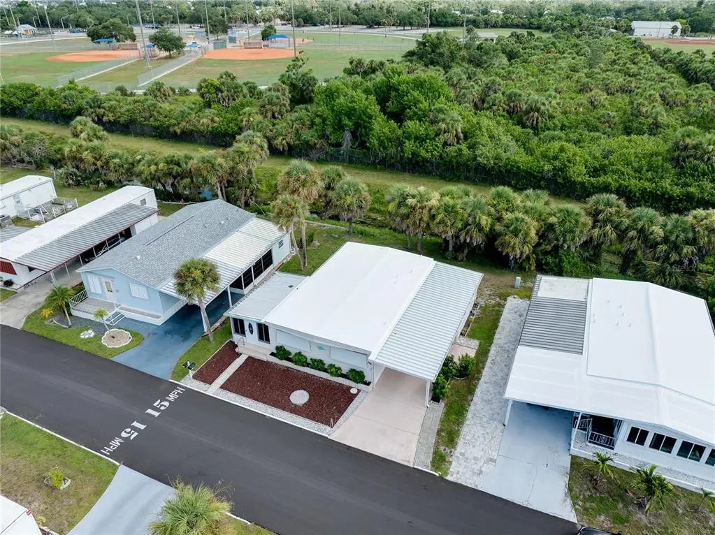 Welcome to Venice Isle, one of Venice’s premier 55+ resort communities! This beautifully maintained 2-bedroom, 2-bath home offers comfort, style, and peace of mind with major updates already completed. Enjoy a brand new membrane roof (2025), new carport, and new gutters. The enclosed Florida Room features wind resistant windows, providing a perfect space to relax year- round. The 2020 AC system ensures energy-efficient comfort. Inside, the spacious primary bedroom suite features a walk-in shower, while the 2 bedroom offers a bathroom with dual sinks and walk in shower perfect for guests. This home is move-in ready and designed for easy Florida living. You will love the large shed that includes the washer and dryer plus a workshop area ideal for hobbies, projects, or extra storage. Located in a quiet community, this home is perfect fulltime resident 55+ or seasonal retreat. The park amenities are numerous and include 2 heated pools, 2 hot tubs, putt putt golf, a fitness center, tennis courts, bocce ball, corn hole, horseshoes, billiards, ping pong, game room, Tiki Hut, 2 Clubhouses, and free community bus transportation to local shops and outings. There are also numerous activities and social events for all community members to take part in. The low HOA Fee includes Cable TV and Internet, Lawn Maintenance and all amenities. Located just minutes from downtown Venice and pristine beaches with easy access to shopping, dining, and other entertainment options. Whether you are enjoying a sunset stroll on the beach or exploring the charm of downtown Venice, this location offers the best of Florida living.