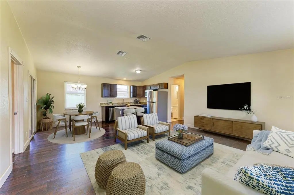 One or more photo(s) has been virtually staged. SELLER MOTIVATED- One of the LOWEST PRICED 3 BEDROOM HOMES FOR SALE IN VENICE TODAY! Just 5 minutes to Manasota Beach, area shopping, restaurants, and top-rated Venice schools. This is a bright, open-concept floor plan designed for comfort and entertaining. The updated kitchen features granite countertops, modern appliances, and generous prep space—flowing seamlessly into the dining and living areas. The spacious primary suite offers an en-suite bathroom, while two additional bedrooms are perfect for guests, family, or a home office. The laundry room includes upper and lower cabinetry, along with a washer and dryer for added convenience. Step outside to a large, fully fenced backyard—ideal for pets, play, or a future pool—and a storage shed provides extra space for tools or toys. Enjoy peace of mind knowing this home is NOT IN FLOOD ZONE, which means lower insurance costs and extra security. STORM SAFE with a NEW ROOF (2025) IMPACT WINDOWS (2021) HURRICAN ROOF CLIPS Installed (2021). Other features include: Updated Primary Bathroom & Vanity (2025) New Well Pump & Pressure Tank (2024) Water Heater (2019). This move-in-ready gem offers the perfect opportunity to enjoy the best of Florida living—schedule your private showing today! NO HOA, NO CDD and LOW TAXES!