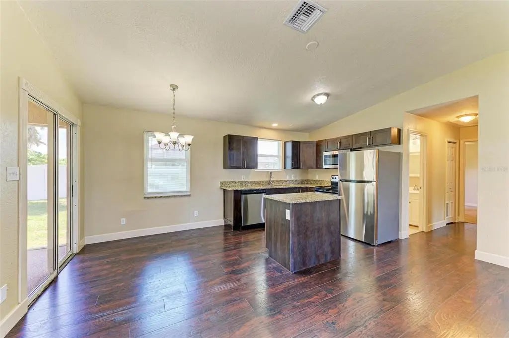 - Interior FeaturesCeiling Fan(s), Eating Space In Kitchen, Kitchen/Family Room Combo, Open Floorplan, Thermostat