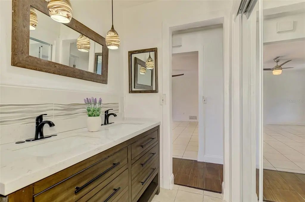One or more photo(s) has been virtually staged. Charming Venice home just minutes from the beach! Welcome to this beautifully maintained 3-bedroom, 2-bathroom home nestled in the heart of Venice. Situated on a spacious lot with lush landscaping, this move-in-ready property features a fully fenced front and backyard—perfect for relaxing or entertaining. As you arrive, you're welcomed by a private and secure front courtyard with brand-new pavers, offering a peaceful entryway and an ideal spot to enjoy your morning coffee. The home also includes a covered carport for convenient and protected parking. Inside, you’ll find an open and inviting layout filled with natural light, updated flooring throughout, and a completely updated kitchen featuring new cabinets, smart appliances, Formica countertops, and plenty of storage. All three bedrooms are generously sized, and the primary suite offers a private bath with a double-sink vanity and a walk-in closet for added comfort. Step out back to a tranquil fenced yard backed up to a wooded preserve, complete with a paved patio and a cozy pergola—perfect for outdoor dining or quiet evenings. Enjoy peace of mind with a roof that’s only three years old and comes with a 50-year warranty, as well as 50-year warrantied piping—rare and valuable features that add lasting value. Just minutes from historic downtown Venice, award-winning beaches, top-rated schools, dining, and medical facilities, this home perfectly blends comfort, style, and Florida living.