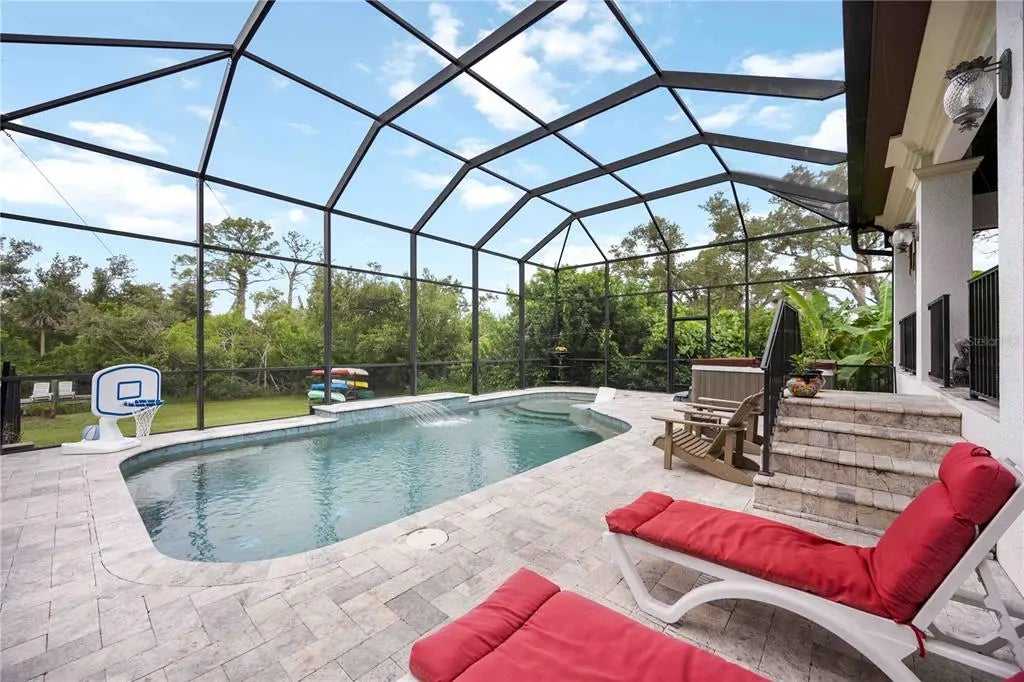 Experience the ultimate Florida lifestyle in this exceptional 4-bedroom, 4.5-bathroom waterfront estate on scenic Alligator Creek with direct access to a private beach by kayak. Built for both luxury and function, this home offers a pool & spa, 8-car garage (4 tandem or space for boat storage), and a boat dock & new ramp (2024). Step inside to soaring 12-foot ceilings, hurricane-rated front door & windows, and a flexible floor plan with all bedrooms featuring walk-in closets. The primary suite is located on the first floor with an updated spa-style bath. The home also features an in-law suite with a private bath, walk-in closet, living area, and kitchenette. Additional bedroom highlights include one bedroom with a private bath and another bedroom with a balcony. The chef’s kitchen is complemented by a wine refrigerator (conveys), and an expansive dining and entertaining space. Recent upgrades include a new water heater (2025), new pavers (2024), and a full-home generator (gas or propane). Comfort is ensured with 4 AC zones, a water softener, water filtration system, and security system with cameras and TVs (convey). Enjoy outdoor living including an outdoor kitchen with a new refrigerator (2025), multiple fruit trees, a gazebo & garden with solar lights and a fire pit, a dog run, and a covered patio overlooking the water. No HOA restrictions.This property is a rare combination of privacy, luxury, and boating access—perfect for those who want it all.