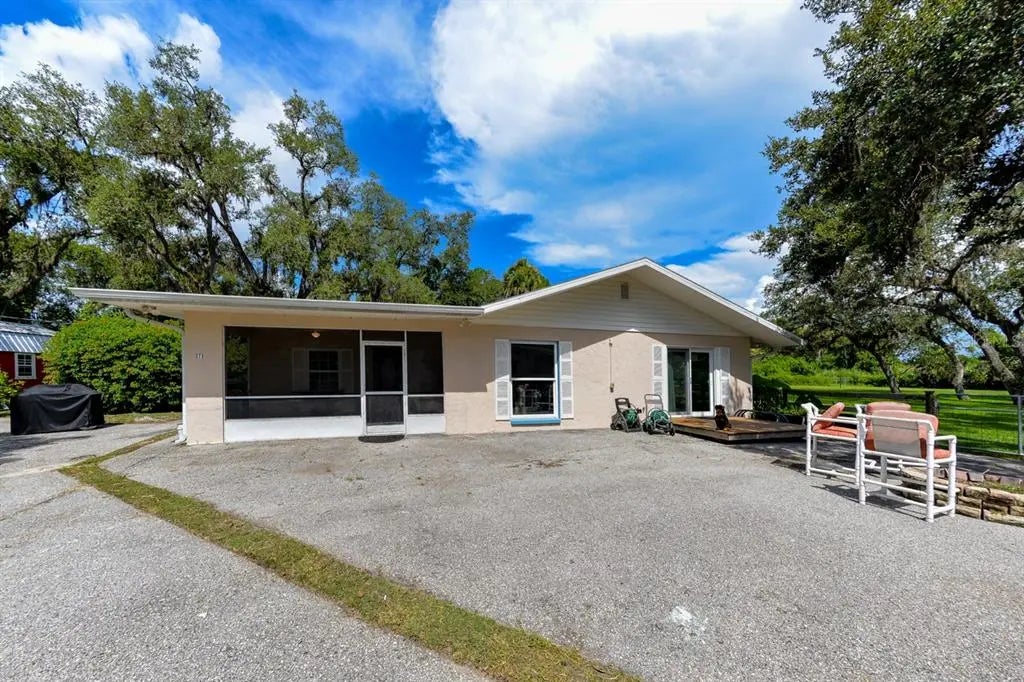 Seldom do we see an opportunity like this. Nature surrounds this multi generational retreat with SEPARATE QUARTERS spanning over 2 "well-manicured" ACRES. The possibilities are endless. The property boasts 2 structures for a total of approximately 2700 sf with 4 bedrooms and 3 baths. The ample green space is perfect for animals so your four legged fur-family will love it too! Play Frisbee in the morning with the dogs or enjoy a game of volleyball or badminton in the evening with friends. You can't beat the all time favorite - just relax in the tranquility poolside or enjoy the peace and quiet with your favorite book. The NEW ROOF is already done for you in July 2025. The "owned" photovoltaic SOLAR PANELS create a comfortable environment inside and are easy on the wallet, saving you money every month!! Enjoy the freedom of less rules and regulations since there is NO HOA or CDD, and NO FEES! There are TWO SHEDS on the grounds for substantial storage and the property is already connected to PUBLIC WATER. Come check it out for yourself and let your imagination run free.