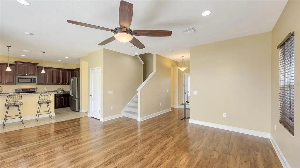 - Interior FeaturesCeiling Fan(s), Eating Space In Kitchen, High Ceilings, Kitchen/Family Room Combo, Open Floorplan, Solid Wood Cabinets, Stone Counters, Thermostat, Walk-In Closet(s), Window Treatments