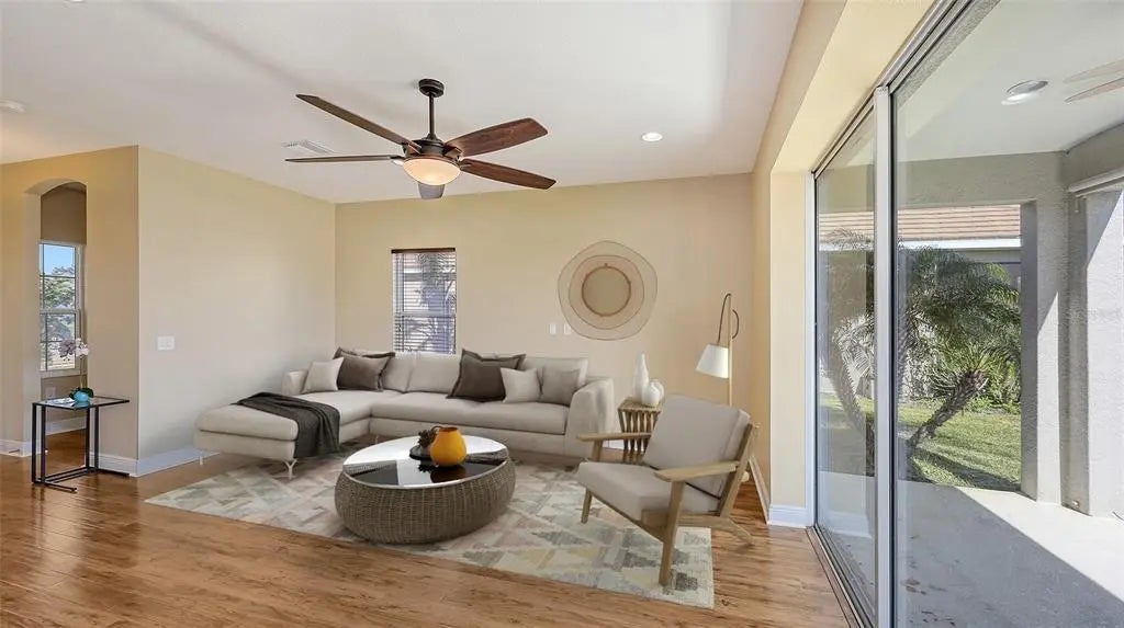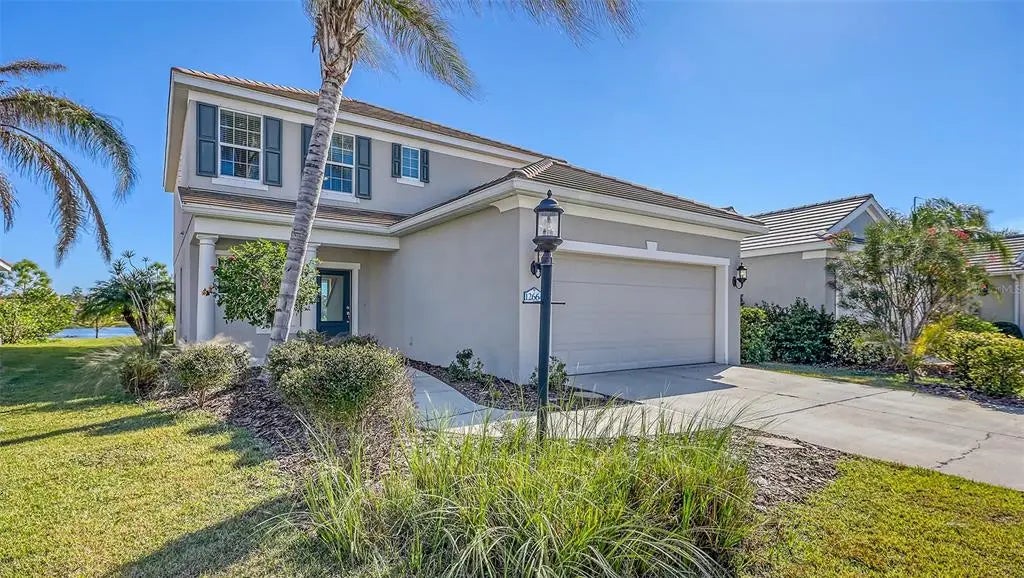 One or more photo(s) has been virtually staged. Short Sale. SHORT SALE. Discover this stunning 4-bedroom, 2.5-bath, 2-car garage, 2-story *LAKEFRONT* home nestled in the vibrant gated community of Grand Palm in Venice. As you step inside, you will be welcomed by an open floor plan featuring high ceilings, warm tones, and new laminate flooring. A picturesque setting of serene water views is set when you walk through the front entrance. Just slide open the 3 door pocket slider in living room to bring in fresh air. Step outside to the covered lanai, where you can savor the tranquility of the large private backyard with eastern exposure and even enjoy your morning coffee while watching the sunrise over the lake.The kitchen has cherrywood cabinets, granite countertops, stainless steel appliances, and a breakfast bar. Create dishes like a pro with the gas range stove. The formal dining room and casual dining area provide a perfect setting for both intimate gatherings and lively meals. The dining room is a flex space and could be used as an office or secondary sitting area.<br><br> The second floor features the primary suite, complete with a walk-in closet and a private bath with dual sinks and a spacious walk-in shower. You will also find three additional bedrooms, a separate full bath, and a laundry closet. A half bath on the first level adds to the home's functionality. The property is equipped with hurricane shutters, an irrigation system, a whole-home water softener system, a new hot water heater installed in 2024, and stairway to attic for convenience. Home was appraised at $640,000 within the last 12 months. Grand Palm offers an active lifestyle with amenities including a resort-style pool, clubhouse, spa, open café kitchen, tiki pavilion, game room, fitness center, walking trails, dog parks, playground, basketball, tennis, bocce ball, pickleball, and volleyball courts. The community also hosts numerous social activities, ensuring there's always something to enjoy. Conveniently located just 20 minutes from downtown Venice and its pristine beaches, this home also offers easy access to Wellen Park, known for its fine dining and entertainment. This must-see home is ready for its new owner, Don't miss the chance to make this exceptional property your new home sweet home.