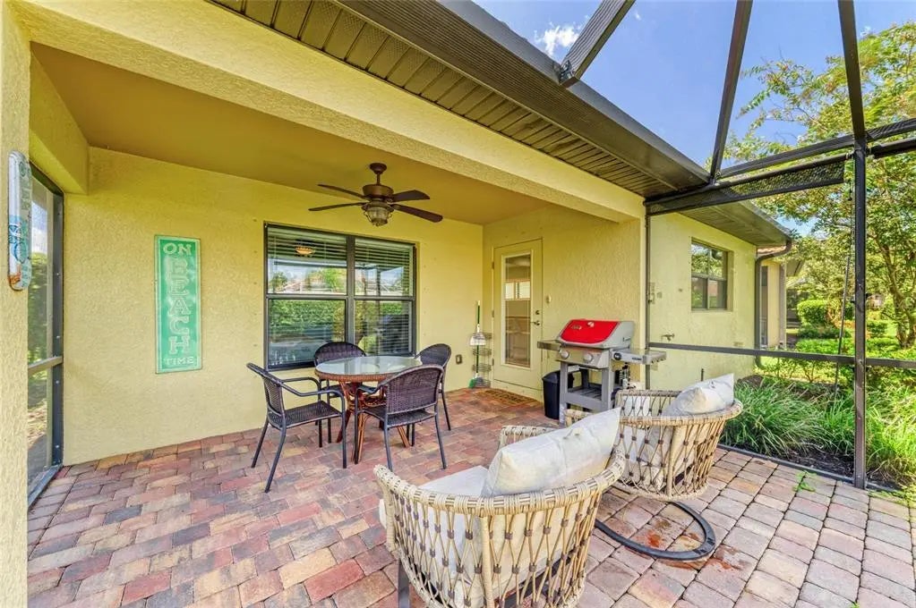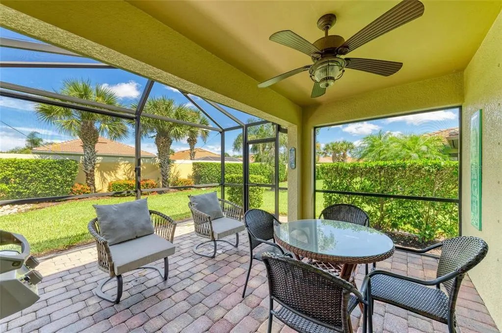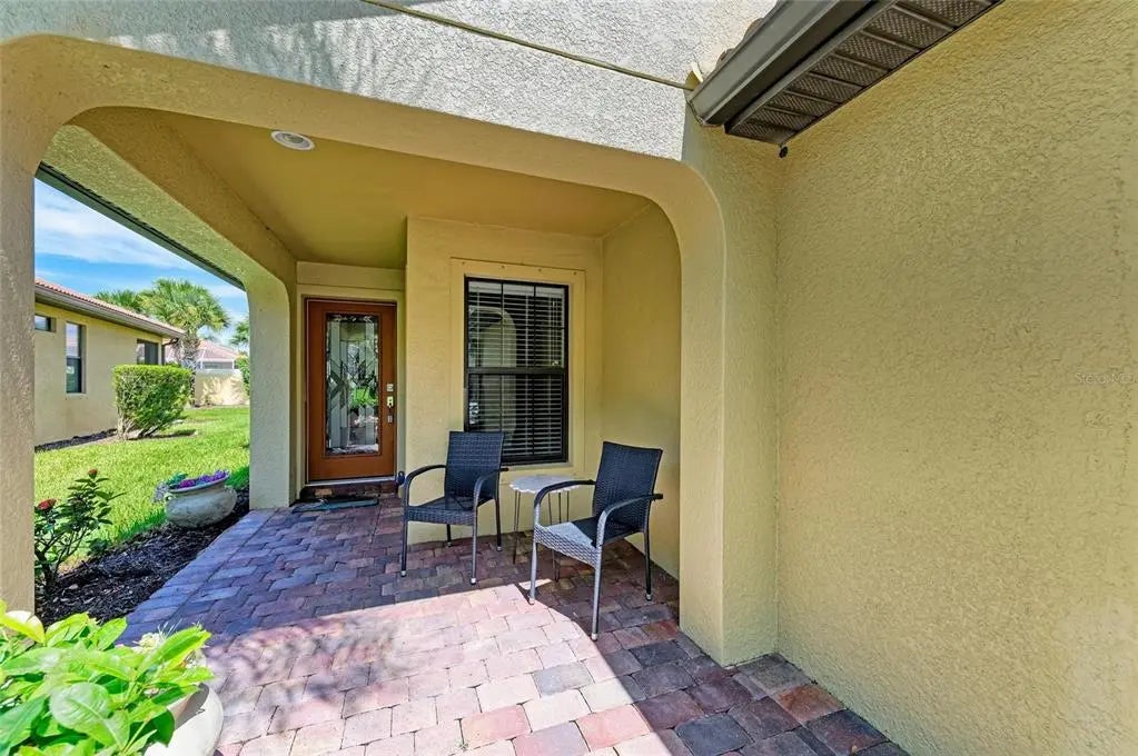 Short Sale. Lowest Priced Home in IslandWalk **TURNKEY FURNISHED** Located on a desirable street with mature landscaping, this home offers exceptional privacy from your oversized lanai. From the moment you arrive, you’ll appreciate the upgraded elevation, extended paver driveway, welcoming front sitting area, and high-end glass entry door. Inside, upgrades abound—tile laid on the diagonal, recessed lighting, plantation shutters, designer fans and fixtures, and one of the community’s most popular floor plans. A versatile flex room off the entry makes the perfect office, den, or guest space. The spacious living/dining area is ideal for entertaining and flows seamlessly into the chef’s kitchen, complete with a huge center island, wood cabinetry, granite countertops, stainless steel appliances, and a custom backsplash. The generously sized primary suite offers lanai views, a large walk-in closet, and a private bath with a tiled shower. A guest bedroom and bath are tucked away on the opposite side for privacy—perfect for hosting family or friends. The laundry room includes extra storage cabinetry. IslandWalk is famous for its amenities: 2 Clubhouses + Event Center, 2 Resort-Style Pools + Lap Pool, 12 Pickleball Courts, Har-Tru Tennis, Basketball, Dog Park, Playground, Miles of golf cart, walking, and biking trails over Venetian-style bridges, Community garden and endless clubs, events, and activities. All with low HOA & CDD fees, low taxes, no flood insurance required, and complete maintenance-free living! Plus, you’re just minutes from the new Atlanta Braves stadium, Publix, restaurants, shopping, and more—all accessible by golf cart. This is Florida living at its finest—move in and start enjoying the sunshine today!