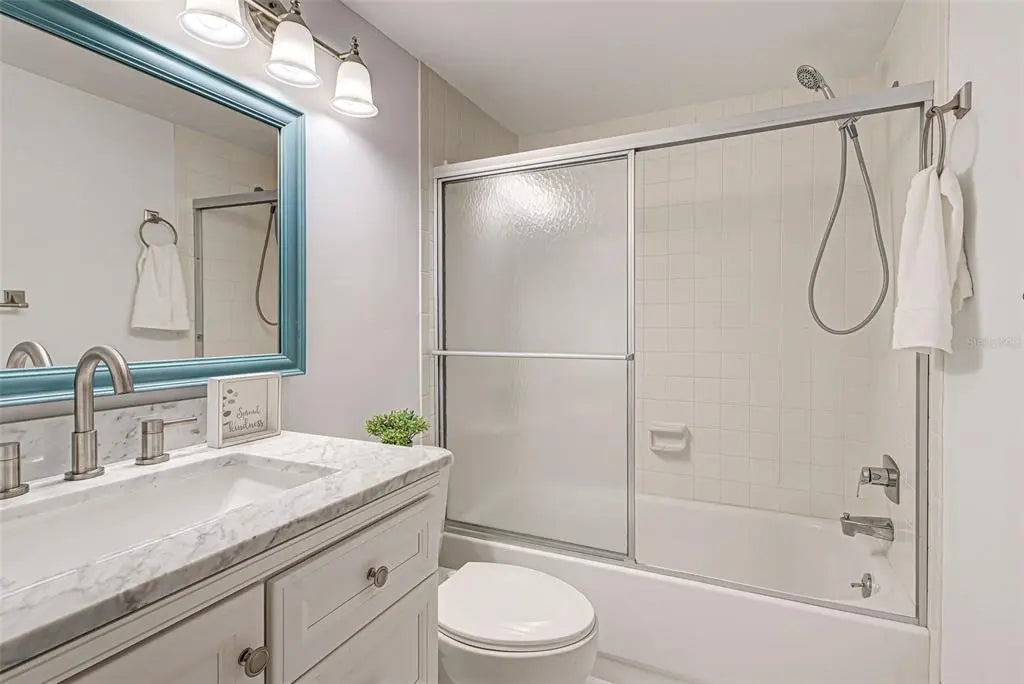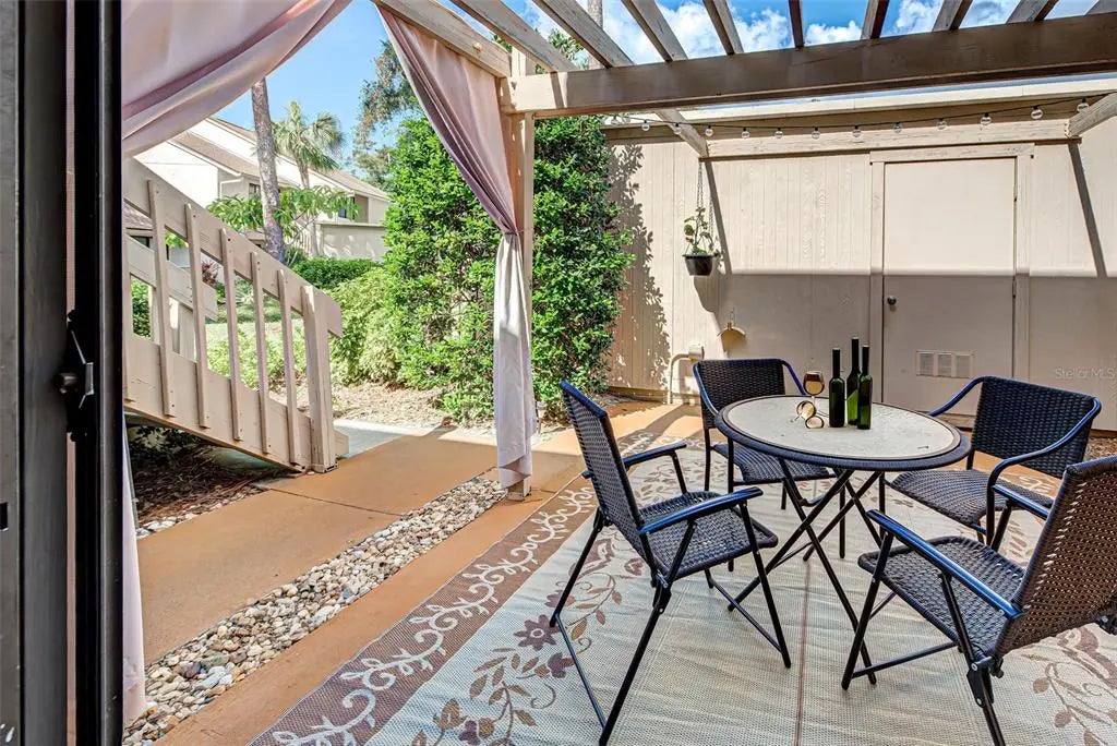 1st FLOOR!! IF you are seeking an ideal LOCATION AND AMENITIES, then you found it here! BIRD BAY offers resort-like amenities including Tennis and Pickle ball courts, Shuffleboard, heated pools, a Fitness Center, Library, plus meeting & activity rooms. The clubhouse has plenty of social activities available if you want to participate. All this within an easy walk from this unit and in addition, Bird Bay 1 has its own large heated pool! This 1ST FLOOR unit has a SECLUDED FRONT PATIO which is rare, with private access from your master bedroom making it your ideal hideaway for enjoying your quiet time with a morning coffee or your after hours beverage under the stars. Adjacent to this patio is your private storage unit with a washer/dryer combo and its own separate hot water heater. This unit has a BRAND NEW HVAC so you are all set. Once you enter this unit, you will see that the kitchen has granite countertops and a wide-opening pass through to the dining area. You will appreciate the new floors in the living areas, bedrooms and both bathrooms. You will be impressed with the flow all the way through this spacious unit to a large enclosed lanai. The lanai has sliding glass doors and screens that what were recently serviced to function smoothly, giving you additional living space and offers beautiful air flow through the home. This unit offers a convertible additional living space. It has a CONVERTIBLE WALL TO CLOSE IT OFF FROM THE REST OF THE HOME if you need a more private space and you can take advantage of an en-suite bathroom. Presently the owner has the space open to the rest of the unit and using it as an additional living room with the benefit of a sofa sleeper. These units are classified as a 2 bedroom but this gives the owner more flexibility for an office, den or a 2nd living room. The Master bedroom has built in shelves and a large walk in closet. The updated en-suite bath has additional storage as well. You will enjoy this peaceful oasis with the views of your private patio through the sliding glass doors. Bird Bay has acres of mature trees and lakes that adds to its peaceful setting. The unit has 1 covered private parking space and there is guest parking available. You can rest easy in inclement weather, because the unit comes equipped with hurricane shutters! It has close proximity to shopping, restaurants, beaches, interstate 75, airports, our new SMH hospital and our well know Legacy Trail which has access right at the entrance. So go out and enjoy a walk, a bike ride or drive up over the bridge and you are on the Island of Venice. Come experience downtown Venice, it has a vibe all its own! So come see what you can have right here at 658 Bird Bay Circle Furniture is negotiable. Don't hesitate to come and take a look There are some staging items that are not included.
