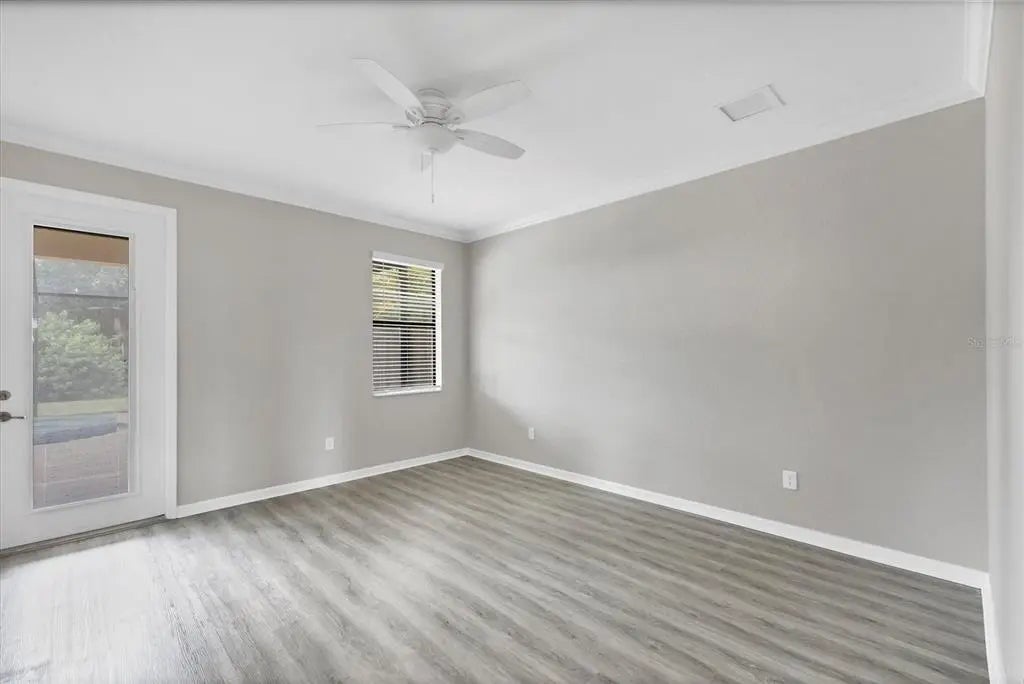 - Exterior FeaturesIrrigation System, Rain Gutters, Sidewalk, Sliding Doors