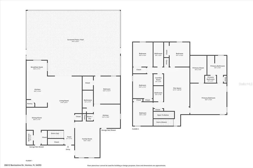 Liberation model multi-generational home. Main home has 5 bedrooms and 3.5 baths. Mother-in-Law suite has one bedroom, one full bath, complete kitchen, laundry closet and private entrance. There are 2 separate garages, a 2 car and a 1 car. The first floor features an open space connecting the living room, dining room, kitchen and lanai for outdoor living. The second floor includes a loft area surrounded by all five bedrooms, including the owner's suite with a luxurious bathroom. Home is maintenance free. Community has resort amenities and lifestyle with resort-style pool, clubhouse, fitness center and sport courts. Community is 10 minutes' drive from downtown Venice and beautiful Gulf of America beaches.