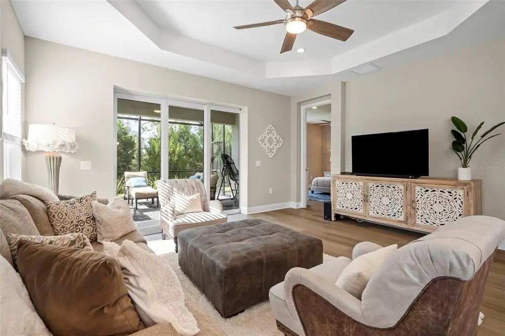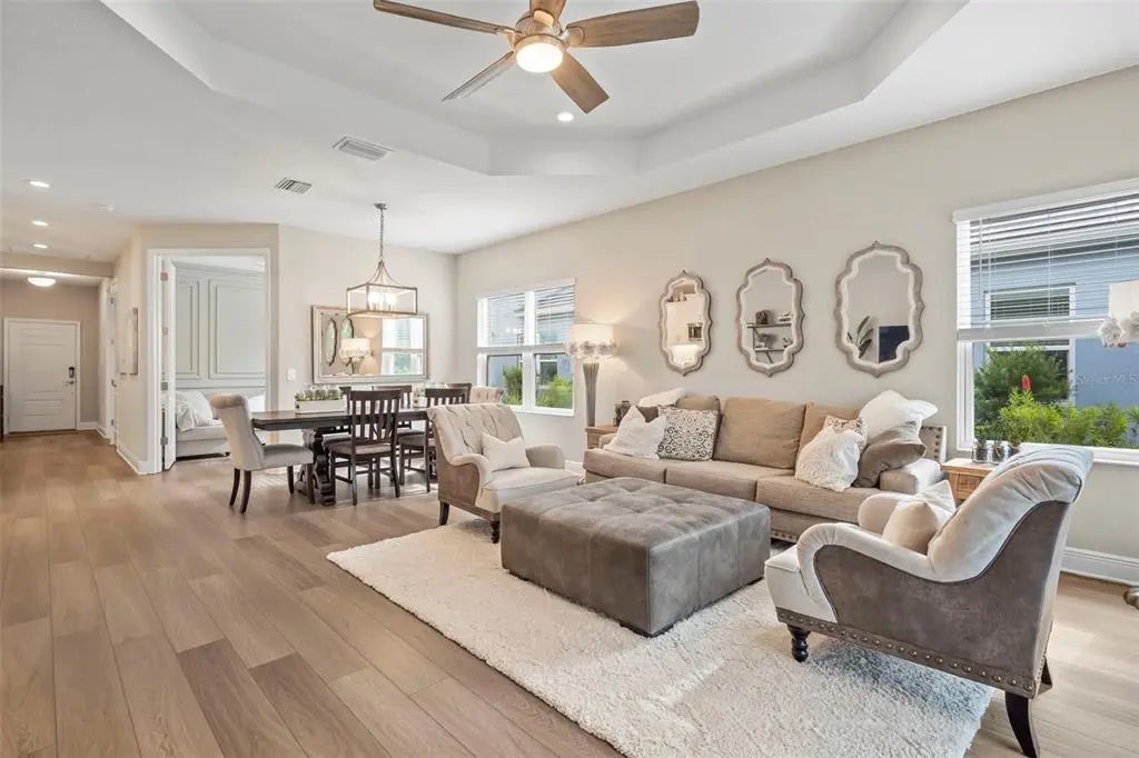 - Interior FeaturesCeiling Fan(s), Eating Space In Kitchen, Living Room/Dining Room Combo, Open Floorplan, Smart Home, Split Bedroom, Stone Counters, Thermostat, Tray Ceiling(s), Walk-In Closet(s), Window Treatments