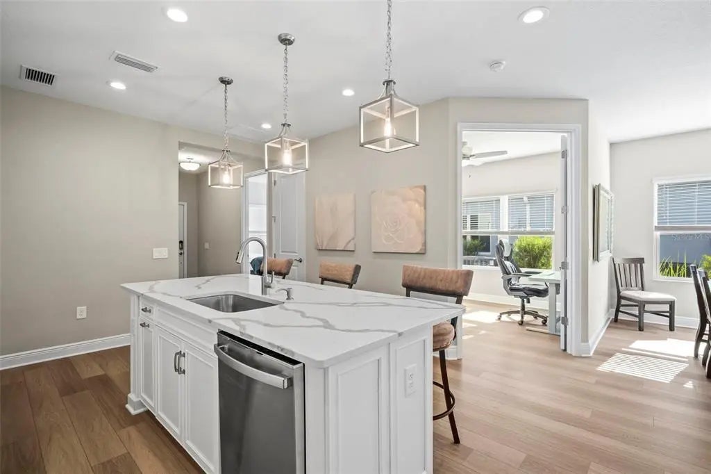 Under contract-accepting backup offers. Immaculate, Open-Concept design with 3 bedrooms, 2 bathrooms, PLUS a Den/Office, and extended outdoor lanai offers plenty of space. Location, Lifestyle, and Luxury in this 2-year-old villa! Split bedroom design, pocket-slider glass door, stainless steel GE Appliance package, and quartz countertops are just a few of the upgraded features in this home. IMPACT Windows and Doors so no need to mess with hurricane shutters. This villa has no carpet- all tile and LVP flooring along with beautiful, custom accent walls in each of the bedrooms and den to make this a truly standout home. All warranty items completed within the past year in this like new home. Grand Palm is more than just a neighborhood; it's a community with so much to offer! From the Social Club to lounging by one of the 3 pools, 2 spas, Fitness Center, or Dog Park; you're sure to find something that fits your lifestyle. There are all kinds of sports courts (yes to Pickleball!), playground, splash pad, fishing docks, and miles upon miles of walking trails. Food trucks and monthly social calendar are a few extra perks. Grand Palm is part of Wellen Park, close to downtown and a short drive to Venice or Nokomis Beach. Come and experience for yourself the beauty of this home within this unique, amenity rich gated community!