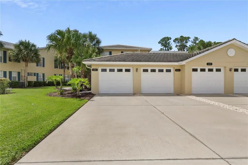 First-Floor Condo with Private Preserve Views. Experience the best of Florida living in this spacious 3-bedroom, 2-bath first-floor condo with a detached garage and private driveway. With no stairs and maintenance-free living, this home offers convenience and comfort at every turn. The condo is offered furnished if desired. The open layout is filled with natural light, featuring a bright Florida room and screened lanai overlooking the tranquil preserve. The living and dining areas flow seamlessly into the kitchen, complete with a breakfast bar and a cozy eat-in nook—perfect for entertaining or casual everyday living. The refrigerator and dishwasher were recently updated. The primary suite is a private retreat with a huge walk-in closet, beautiful bay window, dual sinks, and a walk-in shower. A split floor plan ensures privacy for guests with two additional bedrooms and a full bath, while a dedicated laundry room adds everyday ease. The private driveway also offers parking for two additional vehicles, making it easy to host visitors. With condominium ownership, exterior maintenance is fully handled, giving you the freedom to enjoy a carefree lifestyle. The community offers two sparkling pools and an active clubhouse, while optional membership at Plantation Golf & Country Club offers two 18-hole championship golf courses, 13 Har-Tru tennis courts, 6 pickleball courts, Bocce Ball, fitness center, Jr. Olympic pool along with dining and activity programs. Just minutes from Venice’s beautiful beaches, Wellen Park Downtown, shopping, dining, and easy access to I-75, this condo combines privacy, convenience, and the vibrant Florida lifestyle you’ve been looking for.
