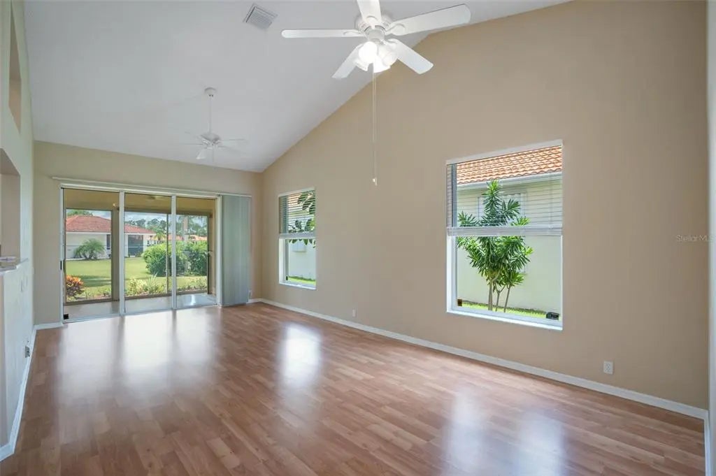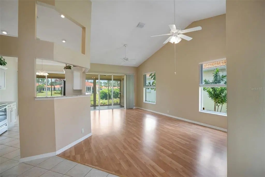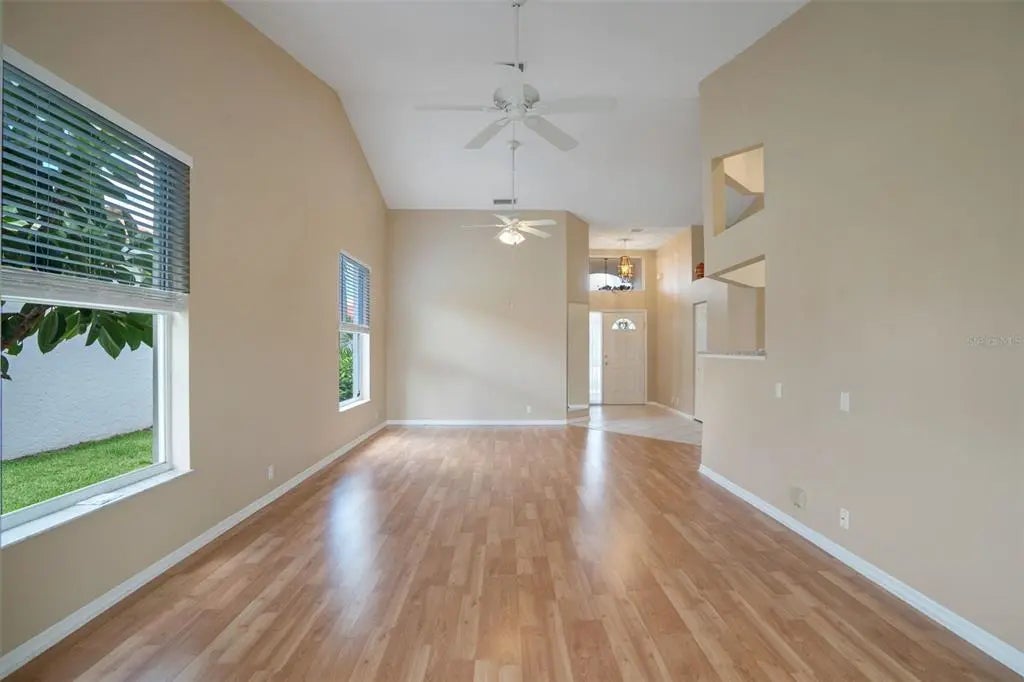 - Interior FeaturesCathedral Ceiling(s), Ceiling Fan(s), Eating Space In Kitchen, High Ceilings, Living Room/Dining Room Combo, Open Floorplan, Primary Bedroom Main Floor, Solid Wood Cabinets, Split Bedroom, Stone Counters, Thermostat, Walk-In Closet(s)