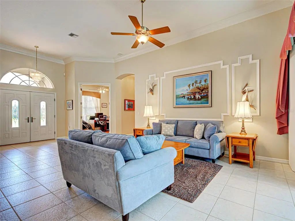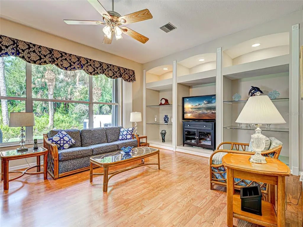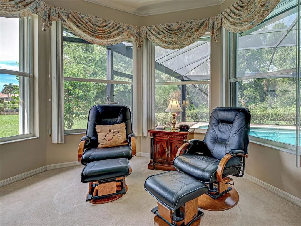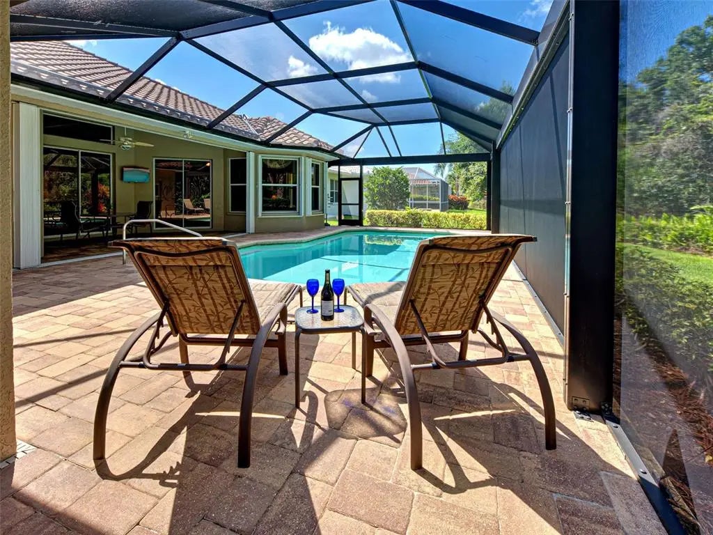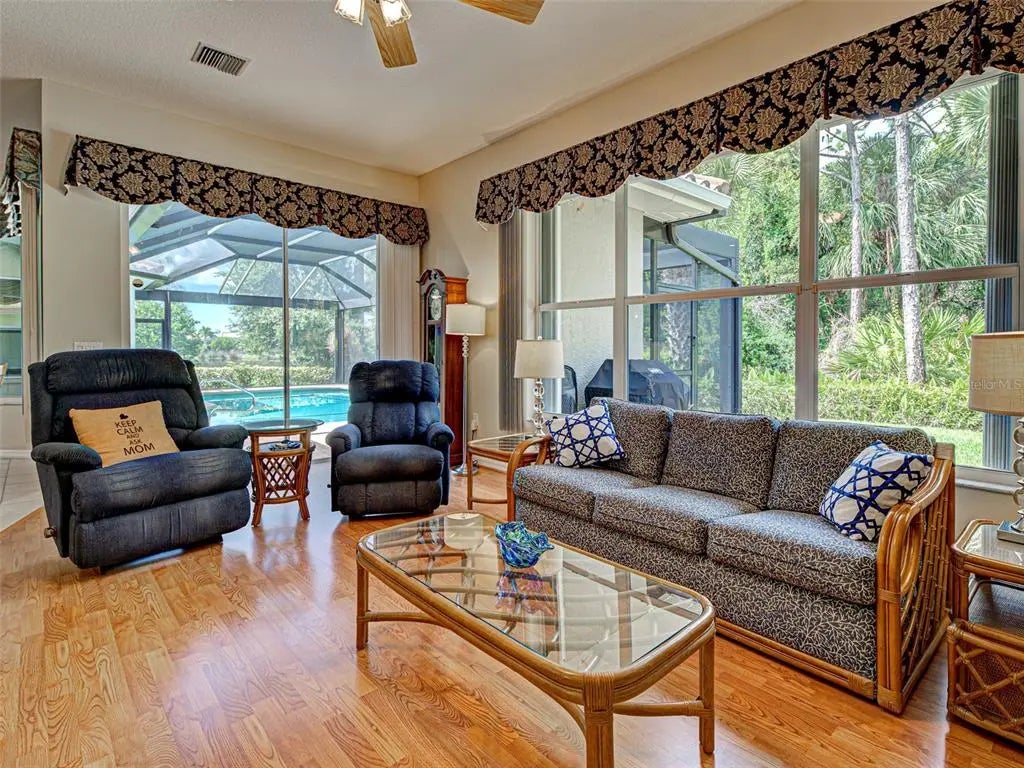 Under contract-accepting backup offers. Dreaming of a Sawgrass home with a HEATED POOL, NEWER TILE ROOF (2022), a tranquil setting with peekaboo water views and preserve views and over $125,000 in improvements? If yes, you must come tour this custom-built home which offers 3 spacious bedrooms, a large office/den, 2 1/2 bathrooms (pool bath) and over 3,000 square feet of thoughtfully designed living space. You will love the expansive, private lanai with new clear view screens to enjoy the soothing views and the over-sized 2-car garage will thrill the man of the house. Located in the sought after gated, golfing (optional) Sawgrass community and set on a large lot. The many windows offer an abundance of natural light while the open floor plan dazzles with soaring 12-foot ceilings, crown molding and classy ceramic tiles. The heart of the home is sure to delight with its granite countertops, large island, newer stainless-steel appliances, large breakfast bar and breakfast area with water/preserve views. Adjacent is the roomy family room with built-ins, perfect for relaxing with neighbors or enjoying a favorite movie. Entertaining is a delight, whether in the formal living room, dining room or dining alfresco under the stars on your private lanai. The sumptuous primary suite is a sanctuary with preserve and water views, 2 walk-in closets, lanai sliders and an ensuite bathroom with Roman walk-in shower, garden tub, dual vanities and private commode. Guests will appreciate the split floorplan which offers 2 spacious bedrooms and a guest bathroom. Float in your solar heated pool on the large, peaceful lanai with lush tropical landscaping, peekaboo water views, spectacular sunsets, pavers, pool bathroom and outdoor shower - a true oasis. Enjoy peace of mind with full home hurricane protection (easy to operate accordion shutters), a generator with mobile AC unit and the home is not in a flood zone. More to love: sellers had an inspection and made all necessary repairs, AC is dual zoned (2023 & 2012), home has fresh exterior paint, new gutters, new water heater (2024) and the pool pump (2023) and heater (2019) are newer. You will appreciate the lovely curb appeal thanks to the paver driveway and lush, tropical landscaping. Sawgrass has low HOA fees and no CDD fees and offers a vibrant lifestyle with wonderful amenities, including a resort style community pool, fitness center, active clubhouse and pickleball courts. Ideally located - 4 short miles to Venice Island’s beaches, dining, and cultural offerings, it is also conveniently close to Sarasota Memorial Hospital, I-75, and the expanding Wellen Park community. Avid golfers will appreciate that Sawgrass is surrounded by Capri Isles and Waterford's golf courses with optional golf membership and no mandatory fees. Don’t miss this rare opportunity for luxury, location, and lifestyle - this spectacular home truly has it all! Be sure to watch the video.
