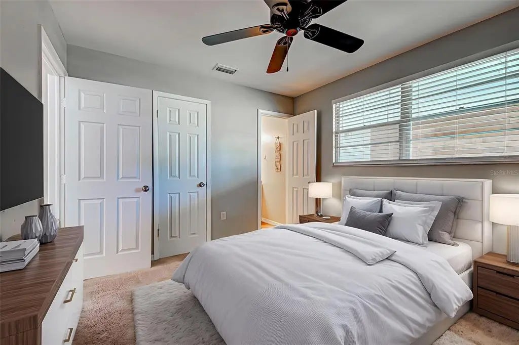 - Interior FeaturesCathedral Ceiling(s), Ceiling Fan(s), Living Room/Dining Room Combo, Open Floorplan, Solid Surface Counters, Walk-In Closet(s), Window Treatments
