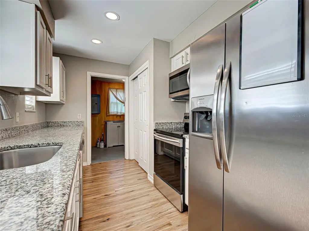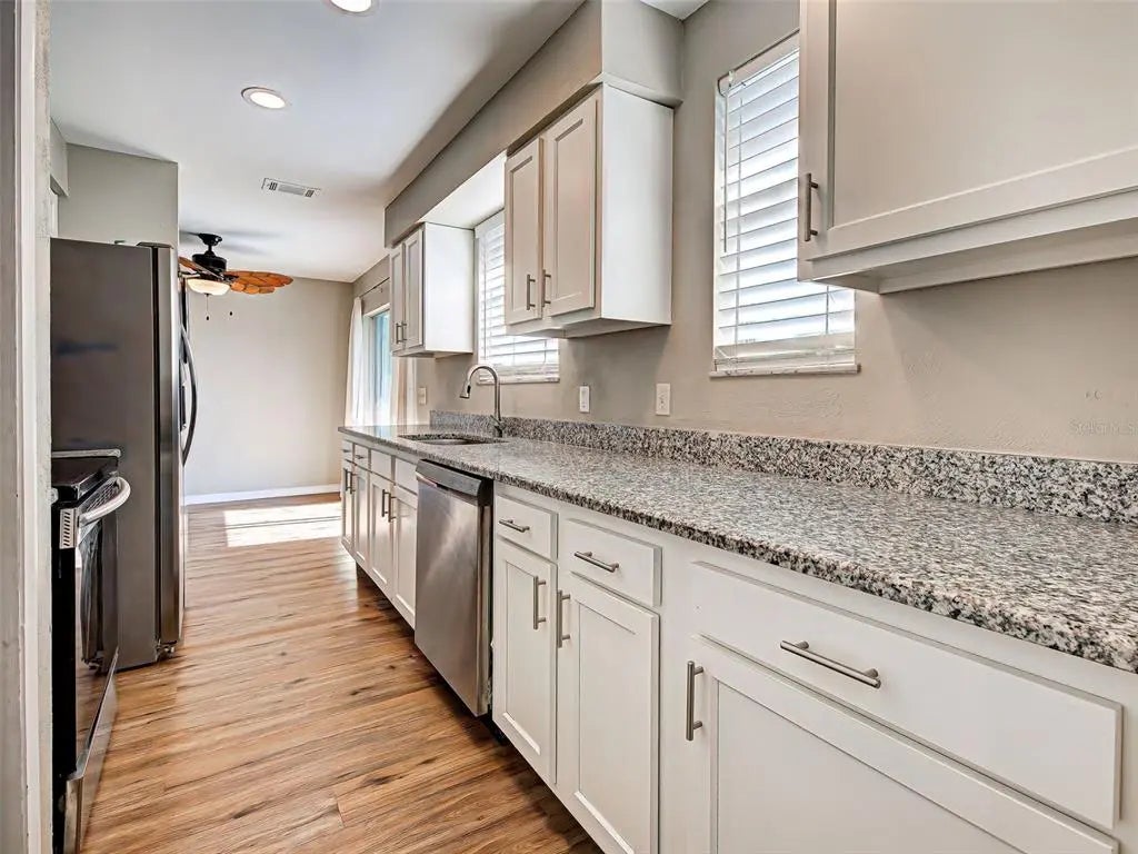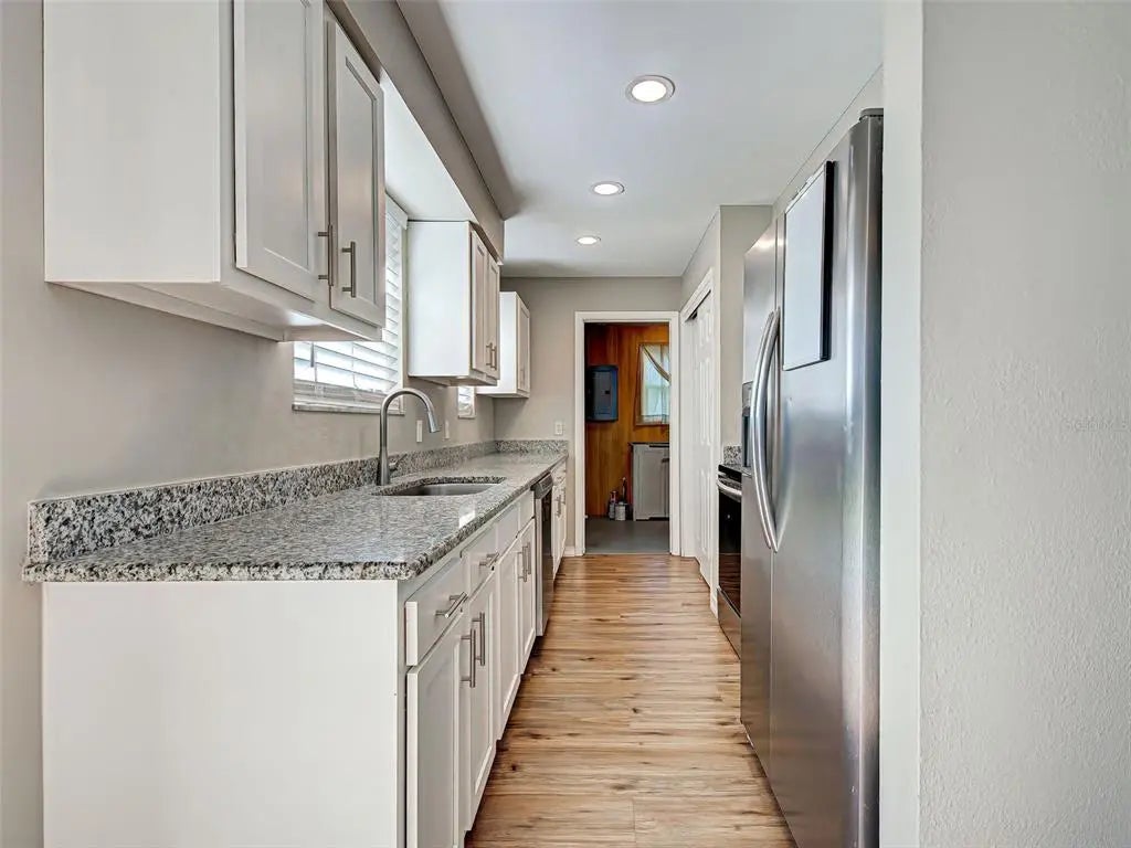One or more photo(s) has been virtually staged. ***NEW LOW PRICE! MUST SEE!***Escape to your own private coastal retreat in this charming 3-bedroom, 1.5-bathroom home, perfectly situated in the heart of Venice. With 1,646 total square feet of beautifully updated living space, this cozy haven offers the best of Florida living. Step inside and be greeted by new luxury vinyl plank flooring that creates a bright and open feel throughout the main living areas. The stunning kitchen is a chef's delight, featuring new shaker cabinets, sleek stainless steel appliances, and elegant granite countertops. All three bedrooms offer a serene escape with fresh paint and plush new carpeting. Both bathrooms have been tastefully modernized to enhance your comfort. AC is 2 years old and the roof & gutters were replaced in 2022! The sewer lines were re-lined in 2024 and the home features public water/sewer, hurricane shutters for all openings, giving you a discount on your home insurance, and NO FLOOD insurance needed! Enjoy the quintessential Florida lifestyle in your large, fully fenced-in private backyard—perfect for soaking up the sun or enjoying a quiet evening. Additional storage is available in the convenient shed and utility room. Centrally located near the desirable Pinebrook neighborhood, you are just 2.5 miles to Venice beach and less than 2 miles from the historic charm of downtown Venice, with its unique dining, cultural events, and theater. You'll also be moments away from pristine beaches, shopping, grocery stores, the new Sarasota Memorial Hospital, I-75, and numerous golf courses. Don't miss your chance to call this beautiful coastal property home!