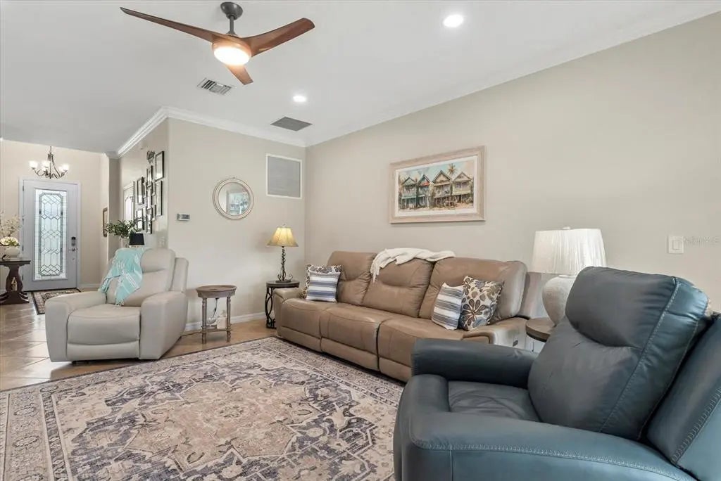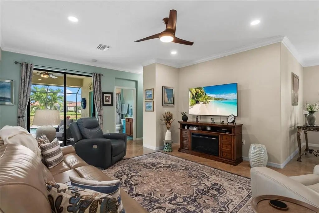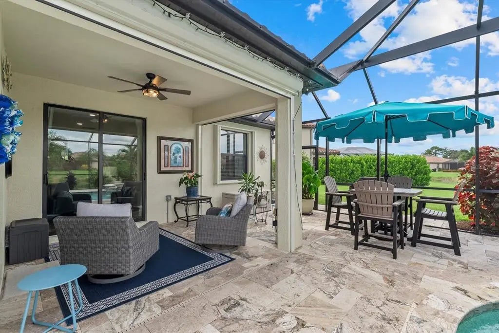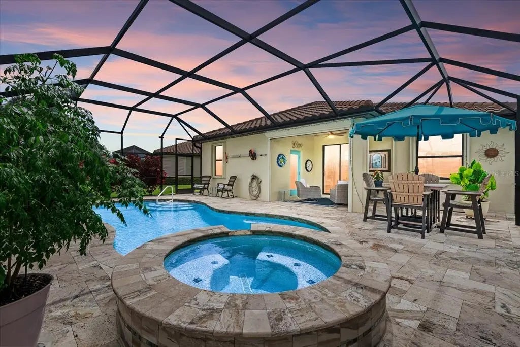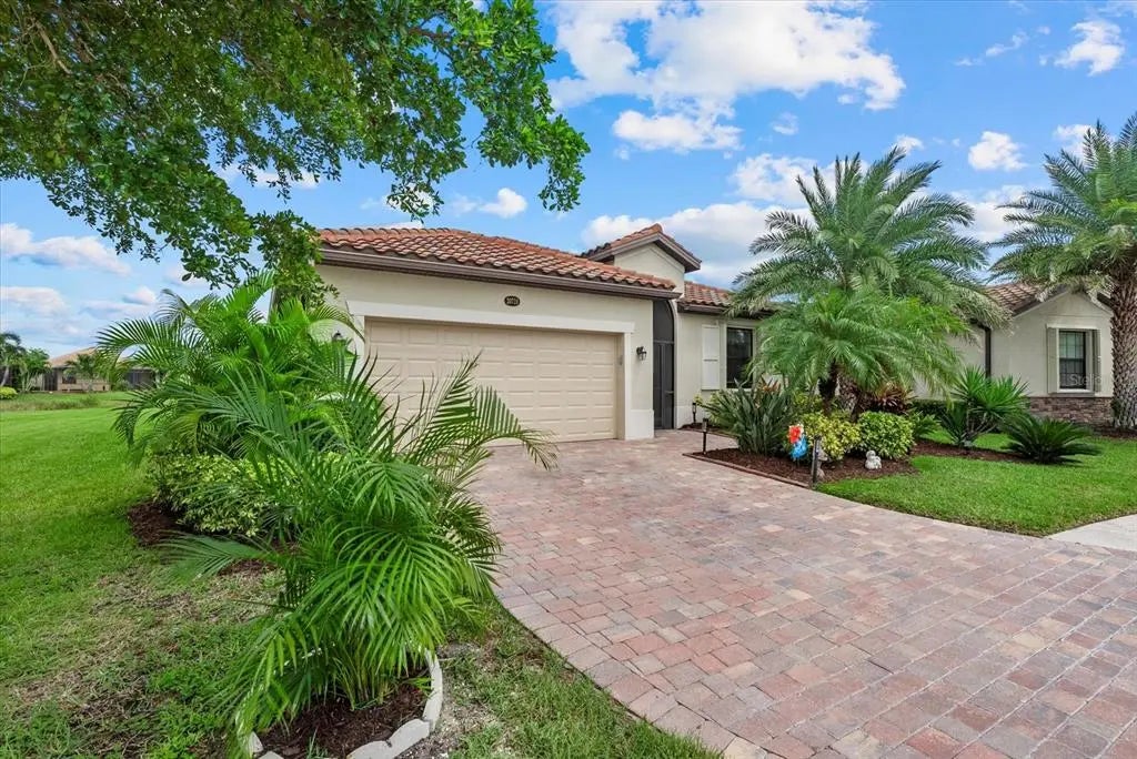 WATER VIEW • POOL & SPA • OVERSIZED LOT • CAPRI FLOOR PLAN Experience luxury Florida living in this beautifully designed single family pool home in the highly sought after, maintenance free community of Gran Paradiso in Venice, Florida. Set on a quiet cul de sac with a serene water view, this popular Capri floor plan offers spacious open living areas with elegant upgrades throughout. Enjoy exceptional curb appeal with tropical landscaping and a lush oversized lot that provides privacy and extra green space. Step into your private oasis with an extended screened lanai, heated saltwater pool and spa, travertine tile decking, and color changing LED lights that are perfect for relaxing or entertaining. Peace of mind features include hurricane shutters and impact resistant windows. Inside you will find porcelain tile floors, granite countertops, crown molding, neutral finishes, and a split bedroom layout designed for comfort and functionality. The kitchen includes stainless steel appliances and ample cabinetry, while the two car garage features epoxy flooring and overhead storage. Gran Paradiso offers resort style amenities that include a lagoon style pool, fitness center, tennis and pickleball courts, saunas, steam rooms, and an active social calendar. Conveniently located near Wellen Park, US 41, I 75, shopping, dining, golf, boating, and Gulf Coast beaches, this home is perfect for full time residents or seasonal retreat seekers. Start living the Florida Gulf Coast lifestyle and schedule your private tour today.