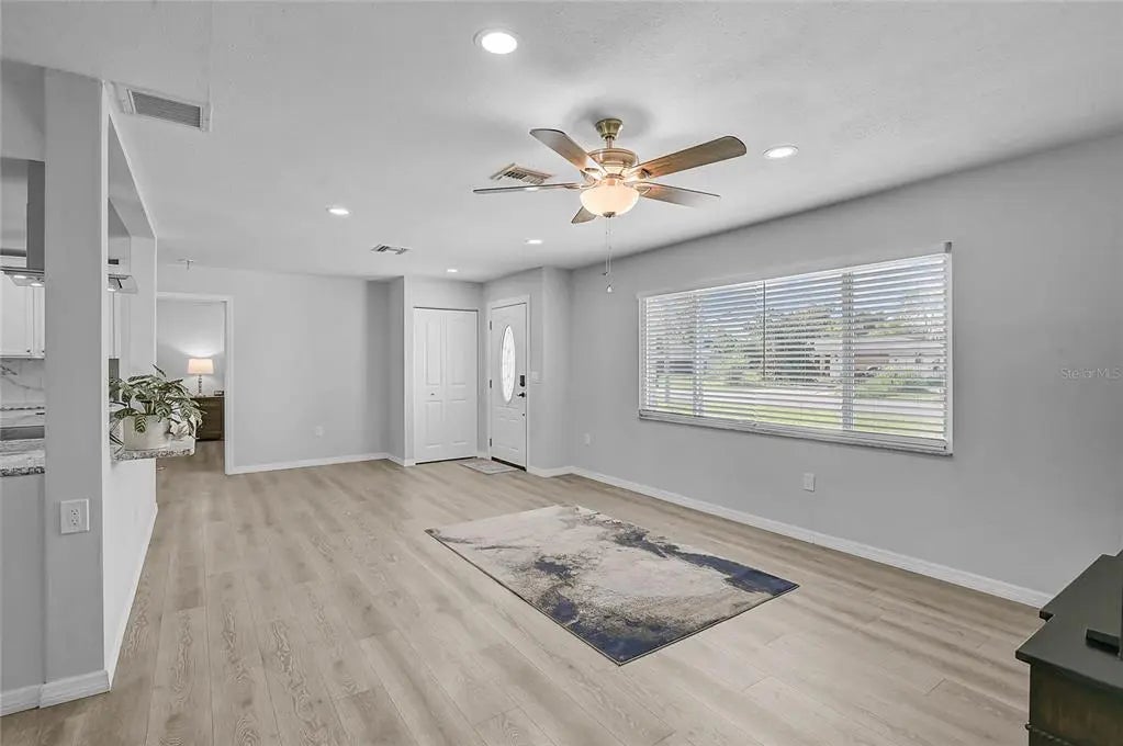 - Interior FeaturesCeiling Fan(s), Living Room/Dining Room Combo, Primary Bedroom Main Floor, Split Bedroom, Stone Counters, Thermostat, Walk-In Closet(s), Window Treatments