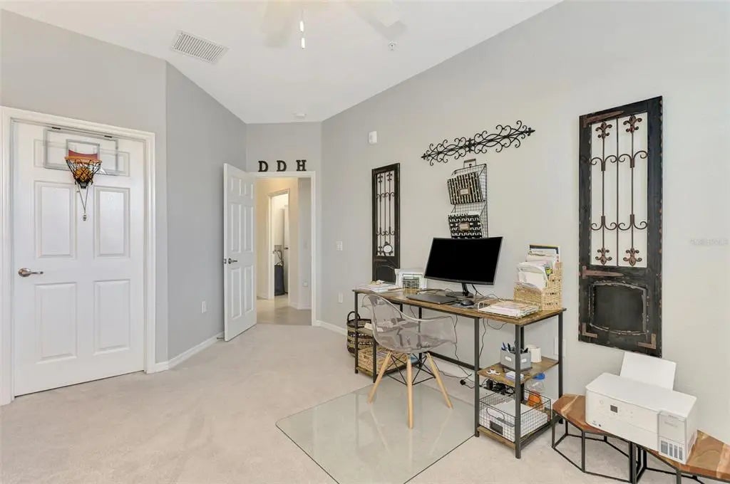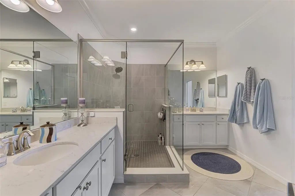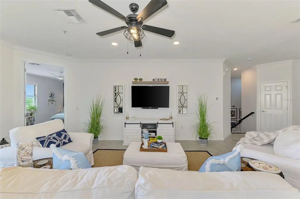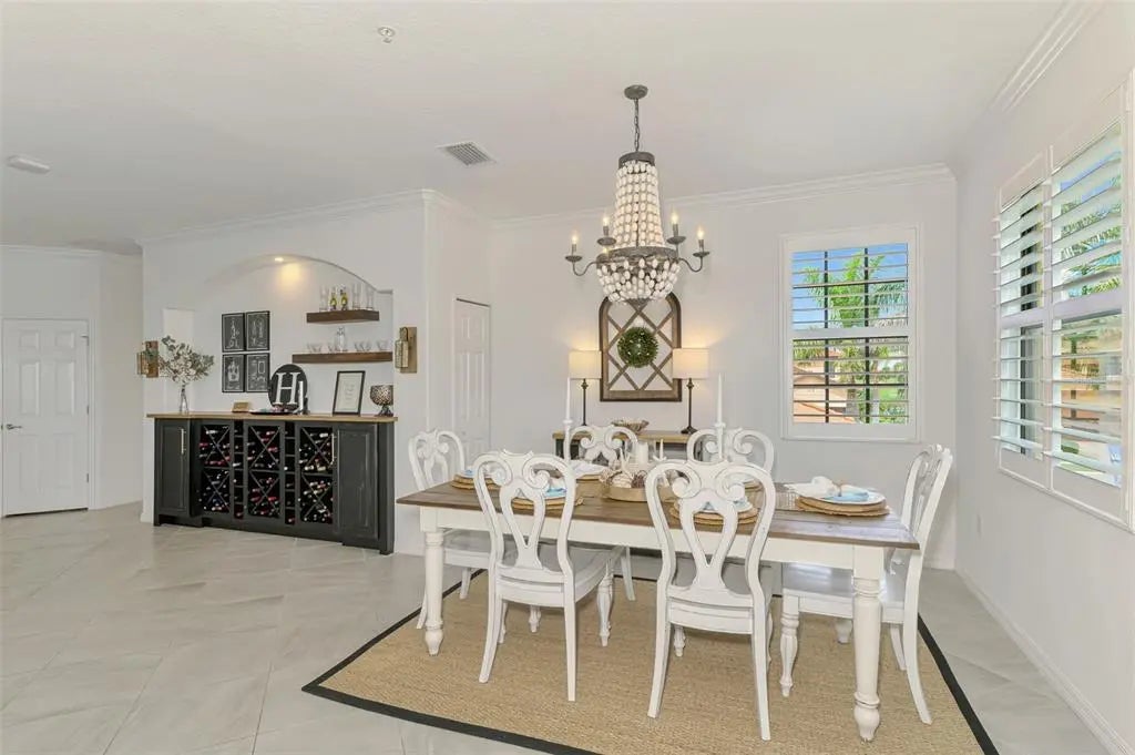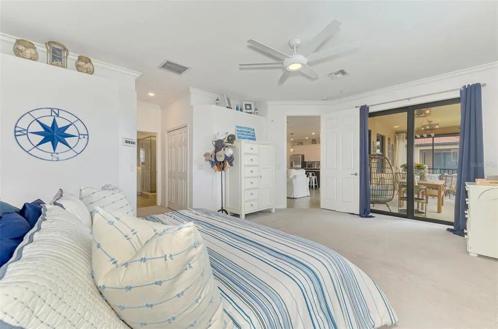 Now is your chance to own this lavishly upgraded TOP FLOOR END UNIT condo, located in the highly sought after guard gated golf community of Sarasota National. Enjoy SOUTH FACING water and preserve views right from the comfort of your oversized screened lanai. HURRICANE IMPACT GLASS throughout! Step through the front door to find an impressive 2-story foyer entrance that was re-imagined with custom installed stair treads with matching banister and a decorative tile landing. Once upstairs you will appreciate a large open floor plan that was made for entertaining. Impress your guests with the thoughtfully designed wine bar with hand crafted wood top and sleek floating shelves. The kitchen showcases an designer backsplash, an oversized island outfitted with decorative woodwork, and tasteful quartz countertops. There is a large pantry with custom shelving system, and the cook of the family will enjoy a sleek stainless steel appliance package. The large living room is a great space to gather with friends or to relax and unwind after an enjoyable day on the golf course. Enjoy spectacular water views from every angle as you move through the home. Other upgrades include tile on the diagonal in the main living areas, crown moldings, plantation shutters, and designer light fixtures and fans. The primary suite offers ample space with extra room to create a home office or sitting area. A set of sliders lead out to the lanai, and a large window allows you to enjoy the stunning view right from the comfort of your bed. 2 walk-in closets with custom closet systems provide impressive organization. The en suite bathroom showcases dual vanities with extra storage, an oversized walk-in shower with seamless glass enclosure, and a private water closet. On the opposite side of the condo, you will find 2 additional bedrooms equal in size, both offering generous walk-in closets. A second full bathroom is just off the two extra bedrooms and features a tub/shower combo. It is easy to create privacy for guests from the main living space by closing the hallway privacy door. There is an in-unit laundry room with an upgraded stackable washer and dryer, freeing up space for more storage. Also included is a large 2 car garage with a 3rd tandem space to create a workshop, home gym, or to store your toys. This building is completely maintenance free and includes all landscaping maintenance, pest control, cable tv, water, sewer, and trash pick-up. Your monthly HOA fee also includes 2 GOLF MEMBERSHIPS that require no extra buy-in fee! This condo is perfect to use as a full-time residence, a part-time seasonal home, or even a great investment... one that will generate substantial rental income! Live like you are on a 5-star vacation with a 30,000sf clubhouse with resort style pool, hot tub, outdoor tiki bar serving food and drinks daily, a coffee house, fine dining restaurant, 7,000sf fitness center with top-of-the-line equipment and classes, day spa, card room, bocce ball, pickle ball, tennis, dog park, playground, event lawn, and 18-hole championship golf course. Sarasota National is a guard gated 2400-acre International Audubon Bird Sanctuary that offers some of the most beautiful water and preserve views in all of Venice. This home is just minutes to the Atlanta Brave's spring training camp at the CoolToday Park Stadium, as well as the town center of Wellen Park. Explore 3 local beaches and historic downtown Venice, all less than 15 minutes from your front door!