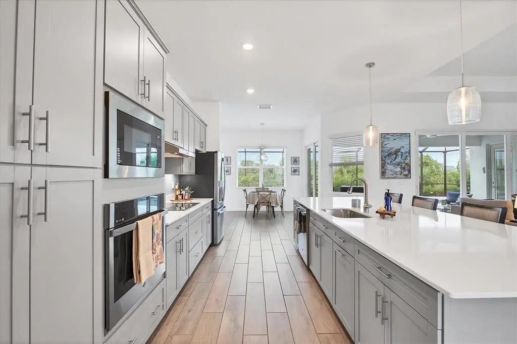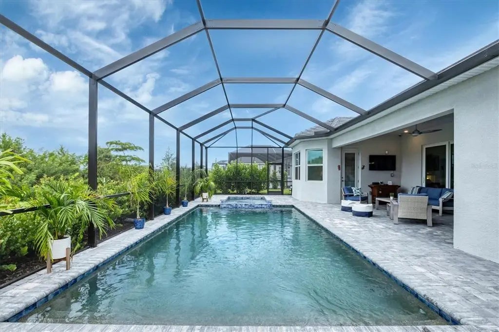 Under contract-accepting backup offers. *** PRICE IMPROVEMENT AND GOLF DEEDED!!!*** Stately and stunning, this Napoli II model, estate home is located in the premier, resort-style community of Wellen Park Golf & Country Club, with a deeded golf membership—just pay a cart fee to play! Situated on a premium private lot with serene nature preserve views and nestled on a quiet street, this 4BR/2.5BA residence offers the ideal blend of elegance, comfort, and low-maintenance living. Enjoy impact-rated windows and sliding glass doors for your peace of mind, wood-look ceramic tile flooring, soaring ceilings, and a spacious 3-car side-load garage. The open-concept layout flows seamlessly from the chef’s kitchen—featuring quartz countertops, custom cabinetry, and high-end appliances—into generous living and dining areas. Pocket sliders lead to a beautiful outdoor oasis with a heated pool and spa, perfect for entertaining or relaxing in private. The serene and relaxing primary suite is a true retreat with an abundance of space with a reading nook, and a clear view French door leading to your luxurious pool and have blinds between the glass for privacy, and an ensuite bathroom just steps away. The spa-like bathroom includes a soaking tub, large shower, and dual vanities. The 4th bedroom is an added bonus with double French doors which can also be used as den or home office. Two additional guest bedrooms are thoughtfully separated for privacy, ideal for when friends and family come to visit! Living in Wellen Park Golf & Country Club means enjoying resort amenities, including an 18-hole Gordon Lewis-designed golf course, heated community pool, tennis, pickleball, bocce, tiki bar, salon, spa, state-of-the-art fitness center, dog park, social events, and miles of walking/biking trails. Low HOA dues include your golf membership, gated access, lawn maintenance, irrigation water, cable, and internet. Wellen Park Golf & Country Club offers a vibrant lifestyle with world-class amenities, Located just minutes from downtown Wellen Park include dining, shopping, concerts, yoga on the great lawn, and CoolToday Park, home of the Atlanta Braves spring training. Venice’s pristine beaches and historic downtown are just 20 minutes away. Enjoy the ultimate Florida lifestyle with peace, tranquility, and world class amenities all in a maintenance-free, gated community. Just bring your bathing suit—this executive home is ready for you! NOTE: CDD fee is included in the taxes, and your golf membership is included in your HOA dues. HOA fee also includes basic cable and internet. Welcome Home to Wellen Park Golf & Country Club—where every day feels like a vacation! *** Wellen Park Golf & Country Club will not be selling anymore golf memberships. They are sold out of houses/homesites with the golf deeded memberships. DON'T LET THIS FABULOUS OPPORTUNITY PASS YOU BY!