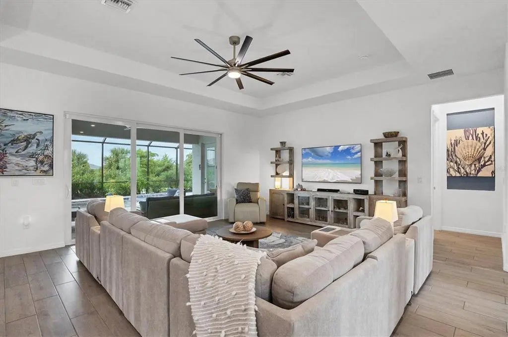 Stately and stunning, this Napoli II model, estate home is located in the premier, resort-style community of Wellen Park Golf & Country Club, with a deeded golf membership—just pay a cart fee to play! Situated on a premium private lot with serene nature preserve views and nestled on a quiet street, this 4BR/2.5BA residence offers the ideal blend of elegance, comfort, and low-maintenance living. Enjoy impact-rated windows and sliding glass doors for your peace of mind, wood-look ceramic tile flooring, soaring ceilings, and a spacious 3-car side-load garage. The open-concept layout flows seamlessly from the chef’s kitchen—featuring quartz countertops, custom cabinetry, and high-end appliances—into generous living and dining areas. Pocket sliders lead to a beautiful outdoor oasis with a heated pool and spa, perfect for entertaining or relaxing in private. The serene and relaxing primary suite is a true retreat with an abundance of space with a reading nook, and a clear view French door leading to your luxurious pool and have blinds between the glass for privacy, and an ensuite bathroom just steps away. The spa-like bathroom includes a soaking tub, large shower, and dual vanities. The 4th bedroom is an added bonus with double French doors which can also be used as den or home office. Two additional guest bedrooms are thoughtfully separated for privacy, ideal for when friends and family come to visit! Living in Wellen Park Golf & Country Club means enjoying resort amenities, including an 18-hole Gordon Lewis-designed golf course, heated community pool, tennis, pickleball, bocce, tiki bar, salon, spa, state-of-the-art fitness center, dog park, social events, and miles of walking/biking trails. Low HOA dues include your golf membership, gated access, lawn maintenance, irrigation water, cable, and internet. Wellen Park Golf & Country Club offers a vibrant lifestyle with world-class amenities, Located just minutes from downtown Wellen Park include dining, shopping, concerts, yoga on the great lawn, and CoolToday Park, home of the Atlanta Braves spring training. Venice’s pristine beaches and historic downtown are just 20 minutes away. Enjoy the ultimate Florida lifestyle with peace, tranquility, and world class amenities all in a maintenance-free, gated community. Just bring your bathing suit—this executive home is ready for you! NOTE: CDD fee is included in the taxes, and your golf membership is included in your HOA dues. HOA fee also includes basic cable and internet. Welcome Home to Wellen Park Golf & Country Club—where every day feels like a vacation!