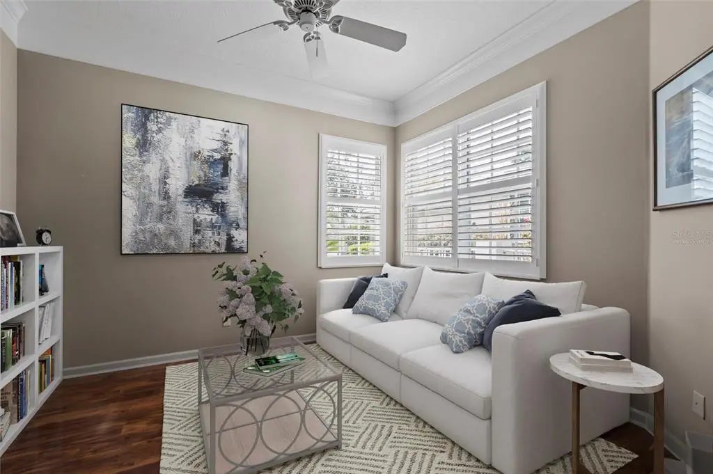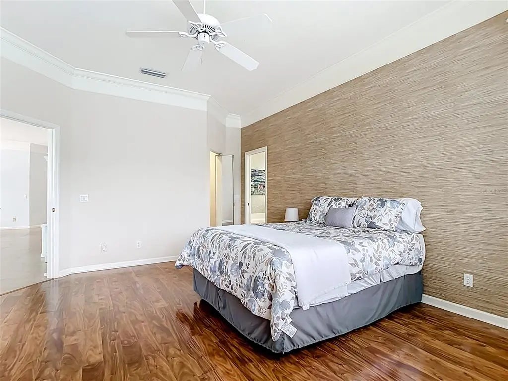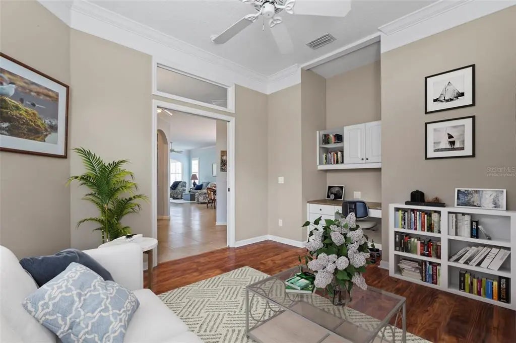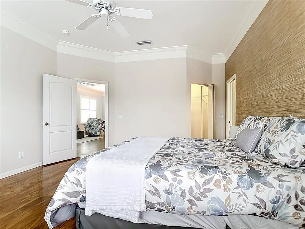SWEEPING WATER VIEWS IN PLANTATION GOLF & COUNTRY CLUB! Experience the 'best of both worlds' - carefree condo living with the feel of a single-family home. This elegant 3 bedroom, 2.5 bathroom, 2 car garage detached villa offers nearly 2,000 sq. ft. of light-filled living space with lakefront views, high ceilings, crown molding, plantation shutters AND MORE! Recent improvements include a NEW ROOF (2023), NEW AC (2023), NEW HOT WATER TANK (2025), and wood-look flooring in bedrooms for easy care (no carpet here!). This home is a storage lover’s dream, featuring a spacious hall closet, LARGE WALK-IN CLOSETS in both the primary and guest bedroom, linen closets in both bathrooms, cabinetry in laundry room, and a generous kitchen pantry to keep everything organized. The gourmet kitchen features granite countertops, Noir stainless steel appliances, sliding cabinet shelves, breakfast bar, under-cabinet lights, and bay-window dining nook. When it's time to unwind, the spacious primary suite features a bay window with water views, soaking tub, frameless glass shower, and dual vanity. Enjoy seamless indoor-outdoor living with a screened front porch and EXTENDED REAR LANAI overlooking the serene lake, where you'll enjoy bird watching and nightly sunsets. The versatile bonus / sunroom creates the ideal spot for a craft area, music room, reading nook...the possibilities are endless. Laundry room has been thoughtfully upgraded with stylish cabinets, granite countertop and utility sink, leading to an epoxy-finished 2-car garage with convenience and style. Located in the desirable Plantation Golf & Country Club community of The Villas of St. Andrews II, this neighborhood has tree-lined streets and a majestic live oak adorned with orchids in your front yard. Residents enjoy maintenance-free living with reasonable and stable HOA fees — all assessments have been paid, ensuring peace of mind for the future. HOA fee includes roof reserves, exterior painting (to be completed this Fall), structural insurance, lawn care, irrigation, basic cable, and community pool just a short stroll away. OPTIONAL MEMBERSHIP at Plantation Golf & Country Club is available, giving residents access to two championship 18-hole golf courses, 13 Har-Tru tennis courts, 6 pickleball courts, state-of-the-art fitness center, a Jr. Olympic pool, exceptional dining and social events. This makes Villas II perfect for those seeking an active lifestyle, social events, and luxury amenities. Just minutes to Venice beaches, Wellen Park, shopping, dining, and the Atlanta Braves stadium. Don’t miss this rare opportunity for carefree lakefront living! (Disclaimer: some interior photos have been virtually staged)