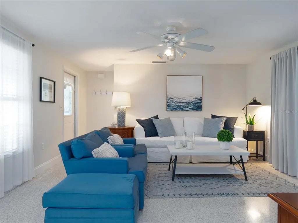 Don't miss this Island of Venice Beach Retreat! Enjoy the Golden Beach deeded beach access just a short stroll from your door with this charming 2 bedoom, 2 bath Island home featuring a 1 car garage on a spacious lot. You'll feel right at home as soon as you enter with beautiful terrazzo floors and a cozy beachy feel throughout. The sellers are even providing you with all the furnishings to help make your move a breeze! The welcoming front porch is perfect for relaxing at the end of the day, while the expansive lanai offers plenty of space for sunbathing or savoring your morning coffee in the covered area. Newer paver bricks enhance the driveway and much of the exterior, adding to the home's fantastic curb appeal. Located just a few blocks from the quaint downtown of Venice Island, you'll be close to top restaurants, boutique shopping, art shows, holiday parades, concerts, and many cultural events. Whether its relaxing at the beach, enjoying community events, meeting friends at the neaby Lake Venice Golf Course, or simply soaking in the Florida sunshine, every day here feels like paradise. This adorable home is a must see!