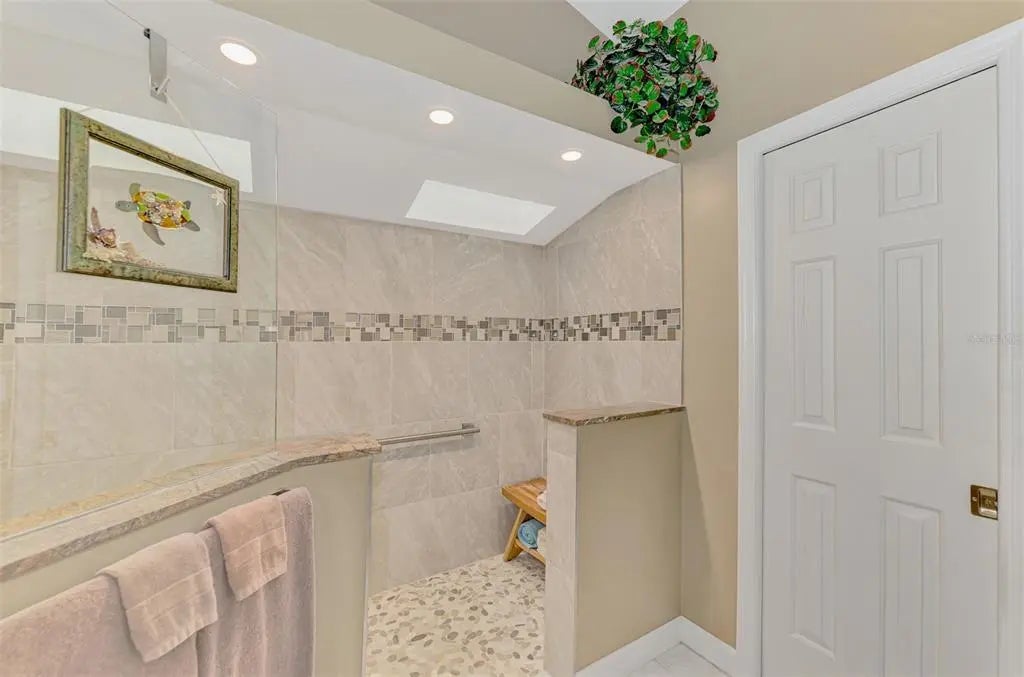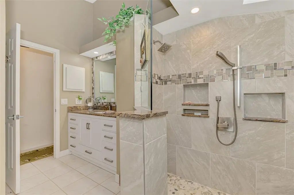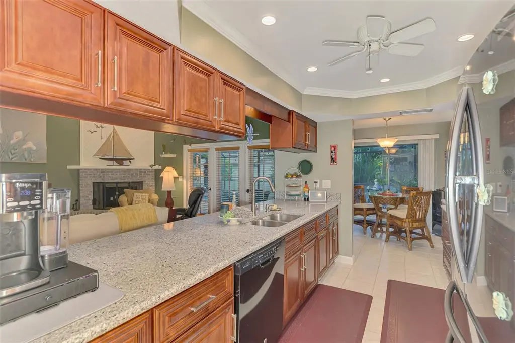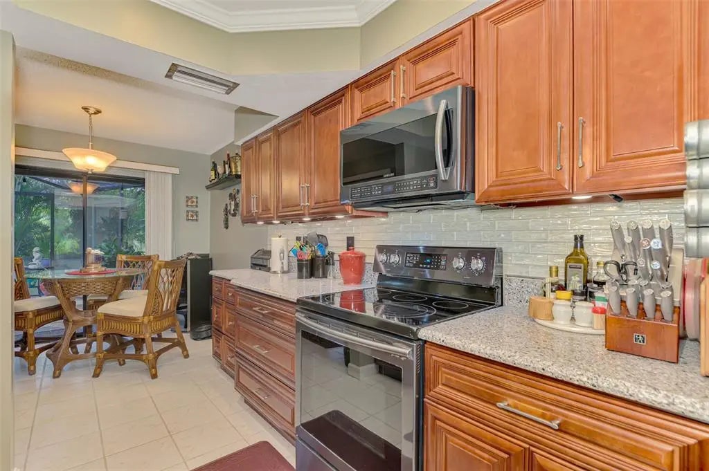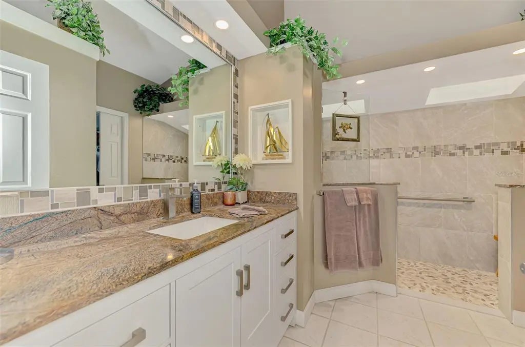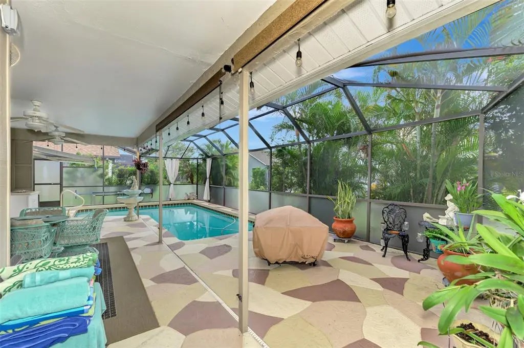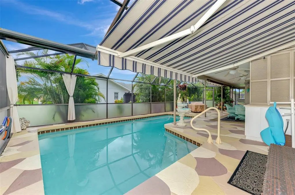 Potential for 2 Owner Suites here! Don’t miss your chance to buy an updated custom 2-bedroom, 2-bath pool home on a quiet street in the sought-after Gulf View Estates, a “Hidden Gem” friendly, deed-restricted community with low HOA fees of only $325 annually and no CDD fees. Conveniently located just 5 minutes from Manasota Key Beach, this property is also conveniently located around the corner from the great shopping, dining, and entertainment in the Venice area - including the Atlanta Braves Spring Training complex. As you step inside through the double-door entry and screened porch, you'll be welcomed by abundant natural light, soaring vaulted ceilings, and the popular Open Floor plan. This design flows seamlessly from the Great Room into the Dining Room and into the Chef's Kitchen, which has been completely updated with beautiful wood cabinets, expansive granite countertops, modern appliances, and a cozy breakfast nook, which features a convenient disappearing door to the Lanai. The Great Room features a fireplace and French doors that open to the oversized lanai and a sparkling heated pool. The lanai provides ample space to relax and enjoy the Florida outdoor lifestyle, including a wet bar/Jenn-Aire cooking feature, an extendable sun shade, plus room for a free-standing fire pit. Retreat to the Owner's Suite, which boasts vaulted ceilings, French doors leading to the lanai, an oversized walk-in closet, and a fully renovated en-suite bath. The en-suite bath includes designer upgrades such as a lovely raised vanity and an expansive zero-entry step walk-in shower. The second bedroom, updated second bath and linen closet are located on the opposite side of the home for added privacy, making it a perfect in-law suite or second owner's suite. The fully equipped laundry room, complete with cabinets and a laundry tub, is conveniently located next to the 2-car garage. An outdoor shower provides a quick rinse from the Beach. This home has been re-plumbed, has an updated electric panel, a new HVAC system installed in 2020, and a new roof installed in 2021. Generator on site and some furniture is negotiable. This well-maintained home is move-in ready!