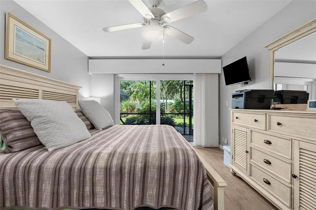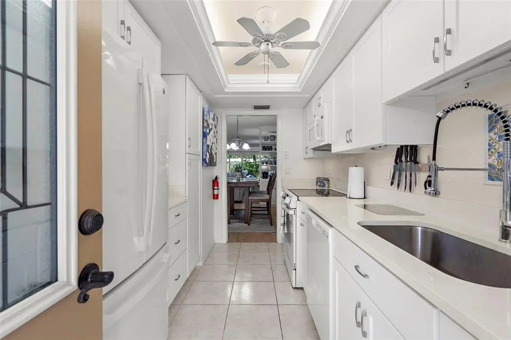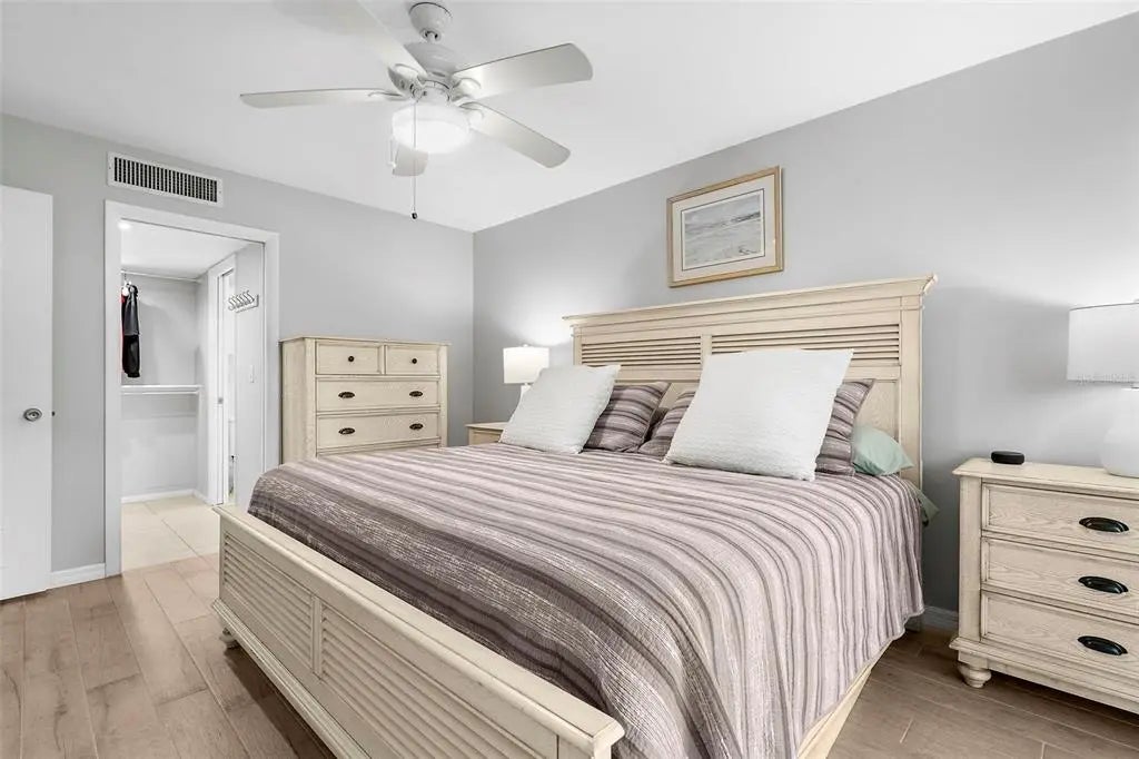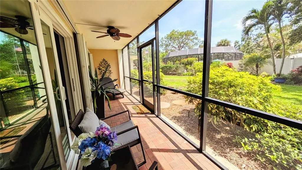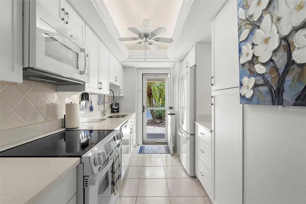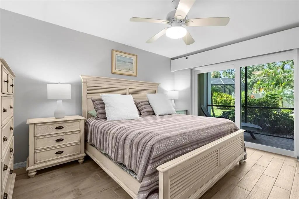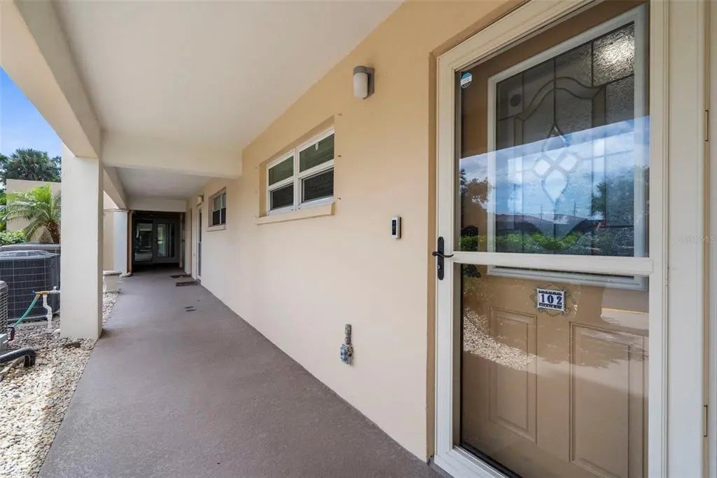 Under contract-accepting backup offers. The Venice vibe is calling! Find your carefree, coastal escape. This stunningly updated condo offers the rare combination of a secure, well-run community, a convenient ground-floor location, and an incredible walkable lifestyle. Great investment potential with an impressive rental history, or make this your winter getaway or full-time residence! This rare, ground-floor unit offers true convenience: no stairs or elevators! It's just steps from the community's heated, screened-in pool, lobby, and club room, yet its location offers a secluded escape with private, tropical garden views. This location cannot be beat! Walk to pristine beaches, the Venice Farmer's Market, and the shops and restaurants of Historic Downtown. Discover the tranquil trail among the Banyans and enjoy easy access to nearby Centennial Park for concerts and events, or Hecksher Park for tennis, basketball, and pickleball. Beach lovers? Venice Beach is just at the end of the street! Inside, the 2-bedroom, 2-bath floor plan flows effortlessly, defined by custom built-ins and premium porcelain tile throughout. The kitchen and both bathrooms have been updated with new quartz counters. A new GE refrigerator and range (2024), a newer dishwasher (2023), and a new water heater (2024) ensure a worry-free experience. With a newer AC (2022) and impact-resistant glass sliders, you can enjoy year-round comfort and peace of mind. The association has maintained stable costs, keeping up with regular maintenance and inspections. Buy with confidence and embrace the true Venice lifestyle from day one. A new roof project was recently completed, adding to the list of building improvements that include a resealed parking lot (2023), fresh paint (2023), and updated elevators (2021). Plus, your new home is located in the lower-risk Flood Zone X, providing solid insurance options. The active 55+ community at Venice Avenue Condominium provides a full schedule of social activities. This unit is immaculately maintained, and ready for you to move in. This is your chance to own a piece of paradise. Schedule a private showing and make it yours.