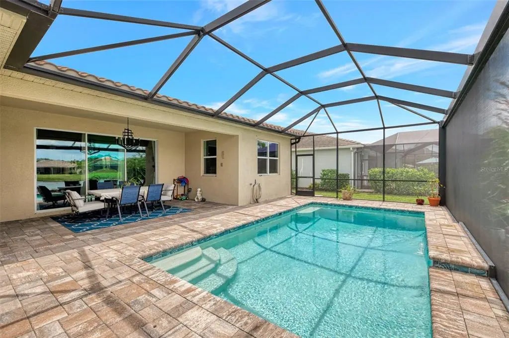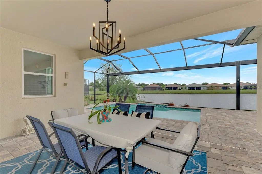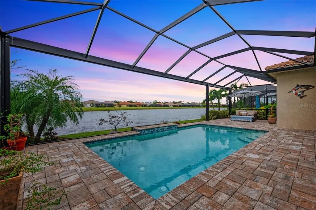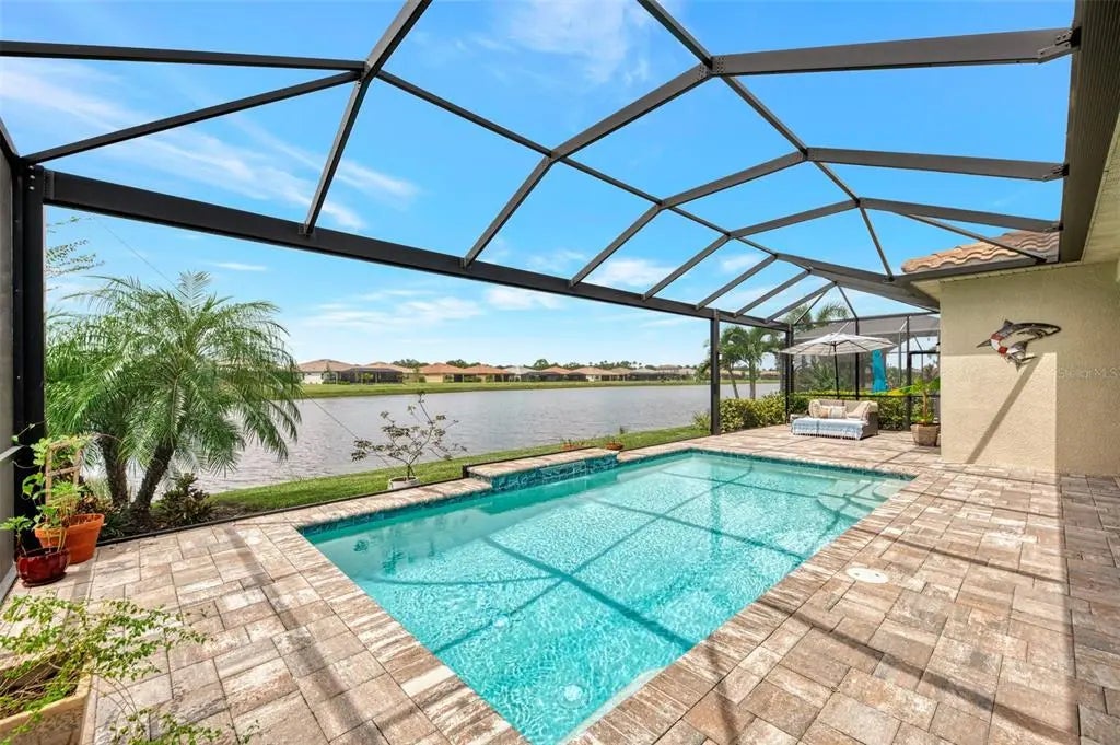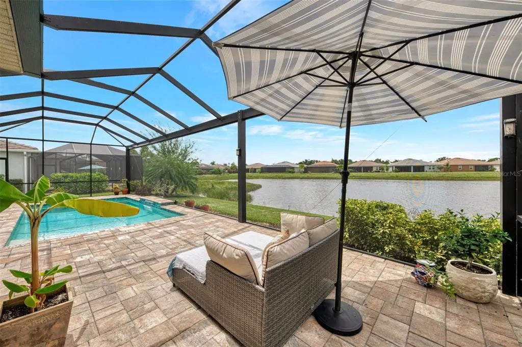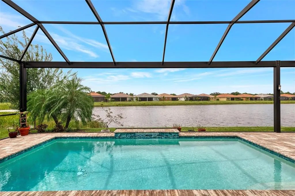 Now is your opportunity to own this 2021 built home located in the amenity rich gated community of Renaissance at Wellen Park. This 4-bedroom, 4 full bathroom, plus bonus room, home was expertly designed with almost 2900sf of open concept living space, making this one of the lowest price per sf one-story pool homes in all of Wellen Park. Situated on a beautiful pond with stunning Florida sunsets, the sparkling heated saltwater pool was upgraded with decorative tile that mimics the waves of the ocean, a tranquil water feature, and a clear view screen. The lanai area is perfect for both entertaining and relaxing! Best of all, NO FLOOD INSURANCE REQUIRED! There is a welcoming front porch to enjoy. Step through the front door to be greeted by a spacious dining area that leads into an oversized living room. Throughout the main living spaces you will find upgraded 12x24 tile, multiple tray ceilings with crown moldings, extra recessed lighting, and designer light fixtures and fans. The kitchen showcases raised panel cabinetry, beautiful Cambria quartz countertops, built-in stainless-steel appliances, and a modern range hood that is vented to the outside. There is a massive island with a single-bowl sink that is perfect for entertaining, and a large walk-in pantry. The eat-in kitchen offers a spacious dinette area with custom wood wall details. Enjoy the water view from every angle as you move through the home. The primary suite is flooded with light thanks to three large windows and has luxury vinyl plank floors, a tray ceiling, and decorative woodwork and wallpaper on the accent wall. The en suite has an oversized dual sink vanity with loads of storage, a large walk-in shower, a separate water closet for privacy, and a massive walk-in closet. The three other bedrooms are in separate areas of the house, making each one private. Each bedroom enjoys luxury vinyl plank floors, making this house completely carpet free! Each bedroom feels like an en suite with access to its own full bathroom, and all of the showers were upgraded with tile to the ceiling. Just before you reach the 4th bedroom which has its own private entry to the front porch, you will find a light-filled bonus room with built-in dry bar. This space is perfect for creating a game/playroom, man-cave, home office, or flex space to suite your needs. The separate laundry room is easily closed off, and there are loads of closets throughout that help to create ample storage at every turn. The 2-car garage was upgraded with a showroom quality epoxy garage floor, and the HVAC system is equipped with UV Light, designed to enhance indoor air quality and reduce allergens. Some of the LOWEST HOA FEES in Wellen Park, Renaissance is a gated lifestyle community with resort style amenities that include a clubhouse with working kitchen and clubroom, pool with zero entry and lap lanes, hot tub, fitness center, outdoor patio with fireplace, tennis courts, pickle ball courts, playground, dog park, and so much more! This home is just minutes from the Atlanta Brave's spring training camp at the CoolToday Park Stadium, as well as the new and exciting town center of Wellen Park. Wellen Park has loads of restaurants, shopping, live music events, and a weekly farmer’s market. Enjoy easy access to I-75 and explore 3 local beaches and historic downtown Venice, all less than 15 minutes from your front door! If you have been dreaming of owning your piece of Florida's paradise, set up a private showing today!