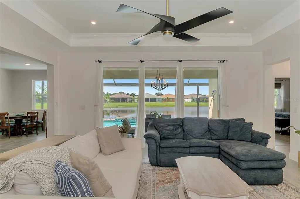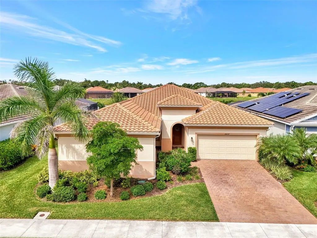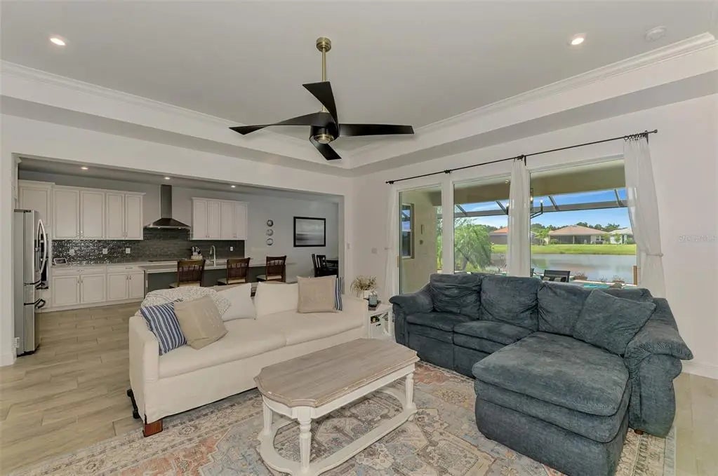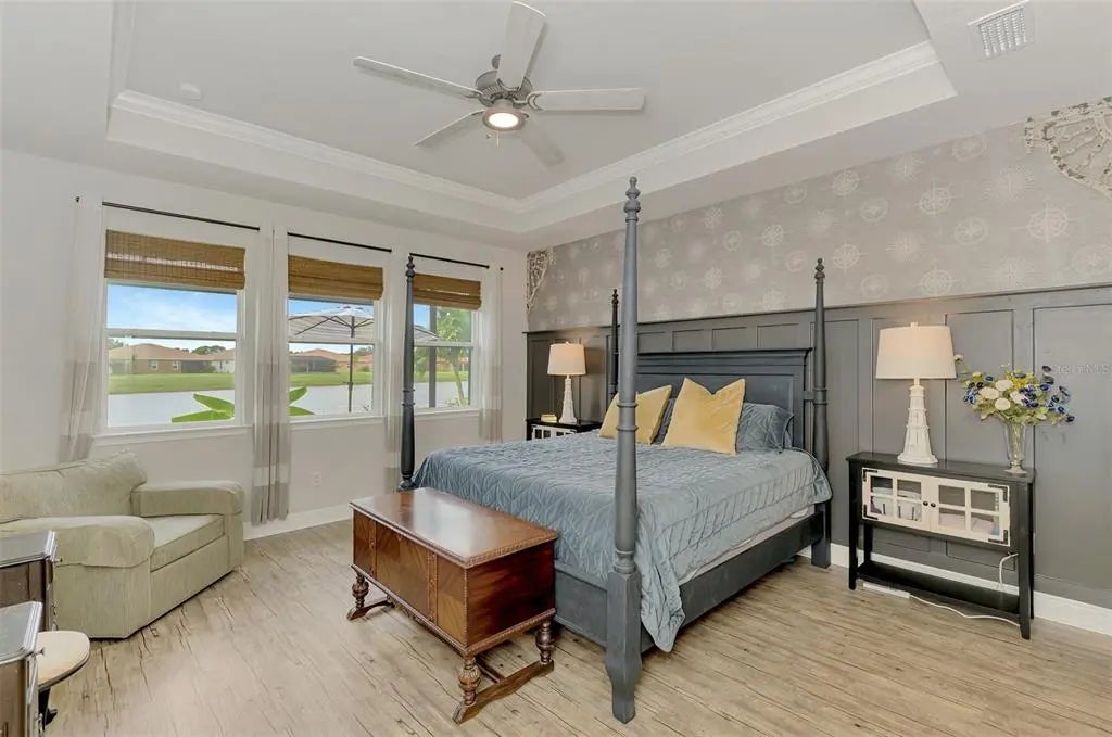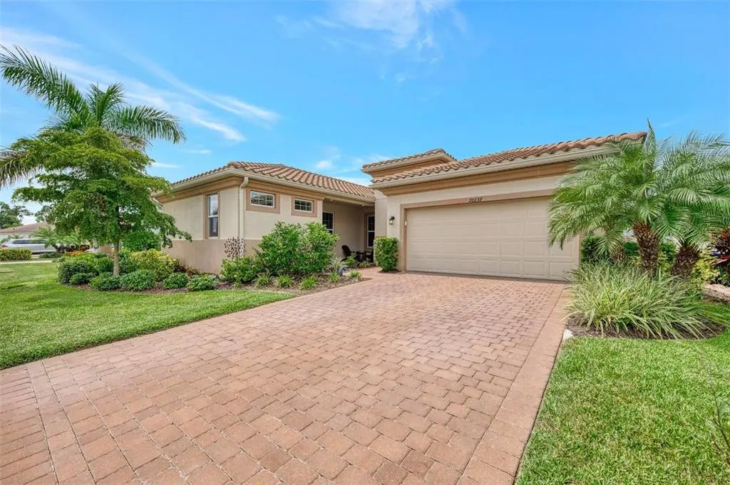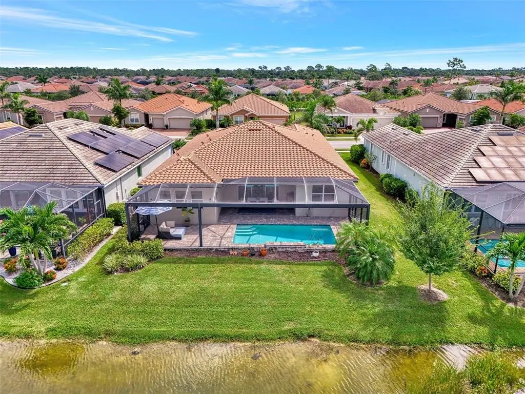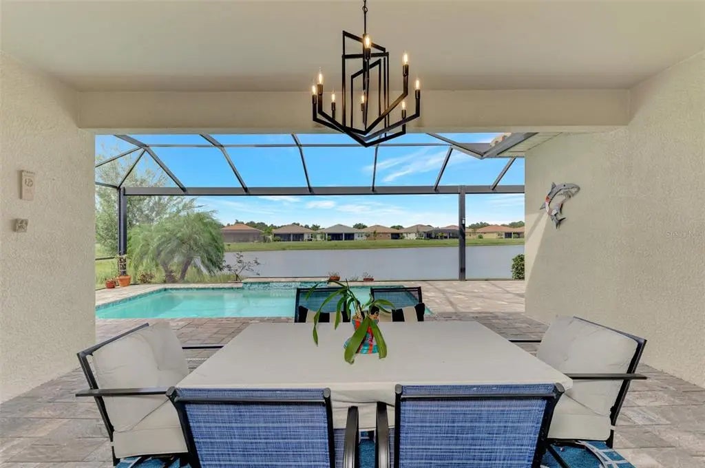 Now is your opportunity to own this 2021 built home located in the amenity rich gated community of Renaissance at Wellen Park. This 4-bedroom, 4 full bathroom, plus bonus room, home was expertly designed with almost 2900sf of open concept living space, making this one of the lowest price per sf one-story pool homes in all of Wellen Park. Situated on a beautiful pond with stunning Florida sunsets, the sparkling heated saltwater pool was upgraded with decorative tile that mimics the waves of the ocean, a tranquil water feature, and a clear view screen. The lanai area is perfect for both entertaining and relaxing! Best of all, NO FLOOD INSURANCE REQUIRED! There is a welcoming front porch to enjoy. Step through the front door to be greeted by a spacious dining area that leads into an oversized living room. Throughout the main living spaces you will find upgraded 12x24 tile, multiple tray ceilings with crown moldings, extra recessed lighting, and designer light fixtures and fans. The kitchen showcases raised panel cabinetry, beautiful Cambria quartz countertops, built-in stainless-steel appliances, and a modern range hood that is vented to the outside. There is a massive island with a single-bowl sink that is perfect for entertaining, and a large walk-in pantry. The eat-in kitchen offers a spacious dinette area with custom wood wall details. Enjoy the water view from every angle as you move through the home. The primary suite is flooded with light thanks to three large windows and has luxury vinyl plank floors, a tray ceiling, and decorative woodwork and wallpaper on the accent wall. The en suite has an oversized dual sink vanity with loads of storage, a large walk-in shower, a separate water closet for privacy, and a massive walk-in closet. The three other bedrooms are in separate areas of the house, making each one private. Each bedroom enjoys luxury vinyl plank floors, making this house completely carpet free! Each bedroom feels like an en suite with access to its own full bathroom, and all of the showers were upgraded with tile to the ceiling. Just before you reach the 4th bedroom which has its own private entry to the front porch, you will find a light-filled bonus room with built-in dry bar. This space is perfect for creating a game/playroom, man-cave, home office, or flex space to suite your needs. The separate laundry room is easily closed off, and there are loads of closets throughout that help to create ample storage at every turn. The 2-car garage was upgraded with a showroom quality epoxy garage floor, and the HVAC system is equipped with UV Light, designed to enhance indoor air quality and reduce allergens. Some of the LOWEST HOA FEES in Wellen Park, Renaissance is a gated lifestyle community with resort style amenities that include a clubhouse with working kitchen and clubroom, pool with zero entry and lap lanes, hot tub, fitness center, outdoor patio with fireplace, tennis courts, pickle ball courts, playground, dog park, and so much more! This home is just minutes from the Atlanta Brave's spring training camp at the CoolToday Park Stadium, as well as the new and exciting town center of Wellen Park. Wellen Park has loads of restaurants, shopping, live music events, and a weekly farmer’s market. Enjoy easy access to I-75 and explore 3 local beaches and historic downtown Venice, all less than 15 minutes from your front door! If you have been dreaming of owning your piece of Florida's paradise, set up a private showing today!