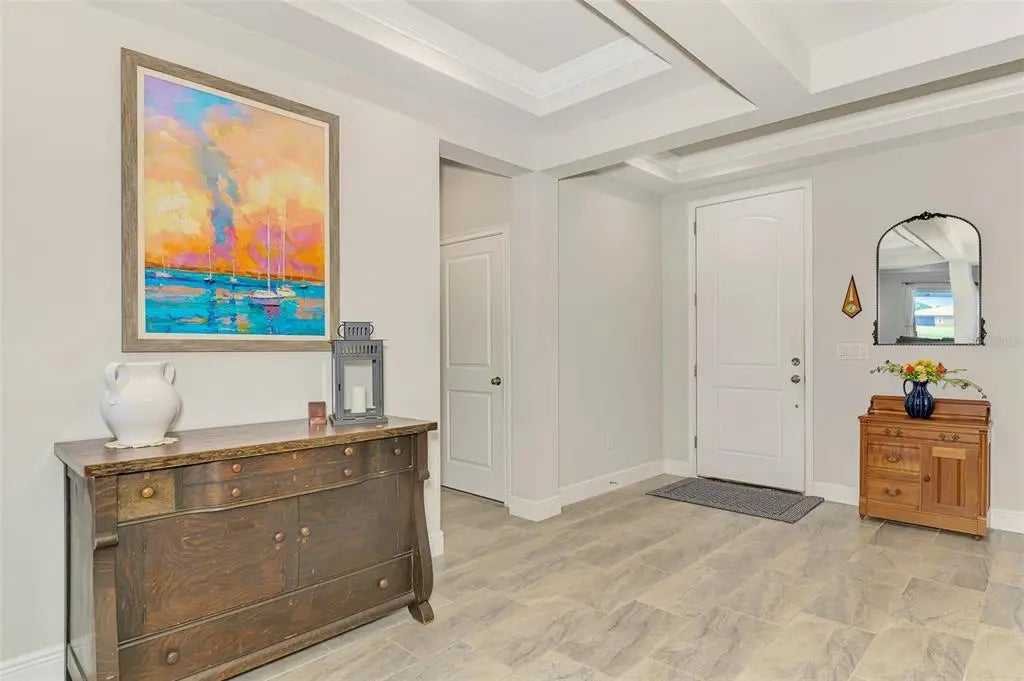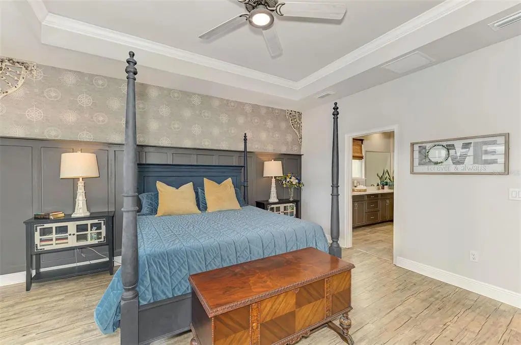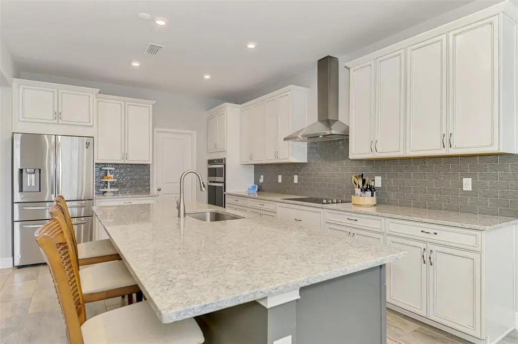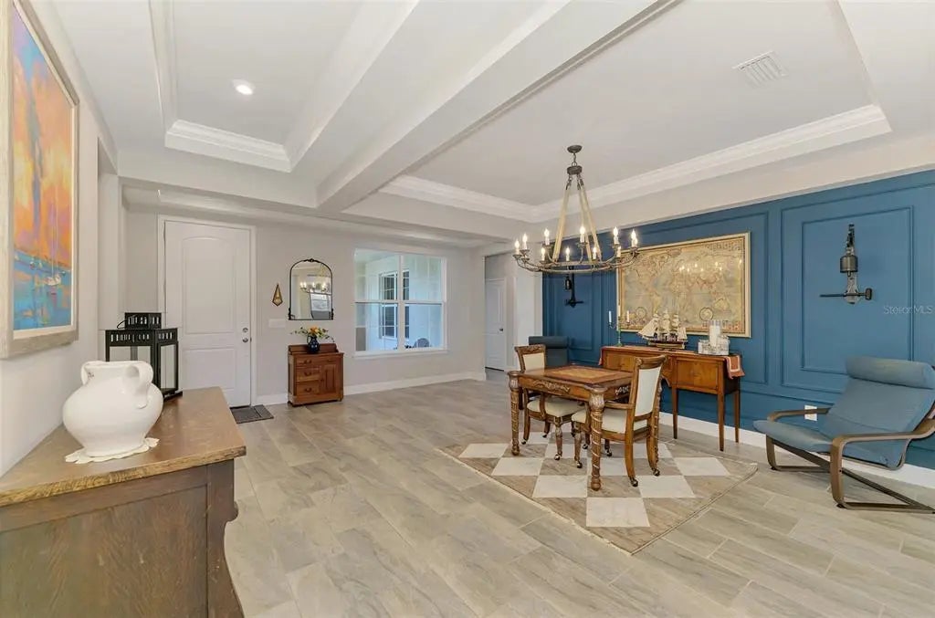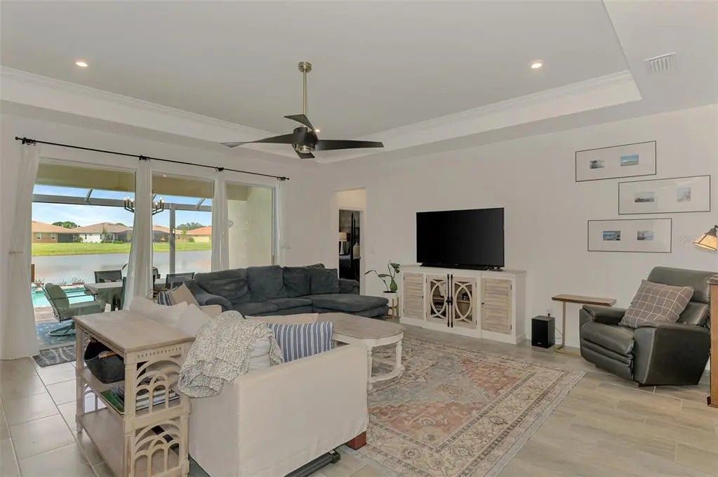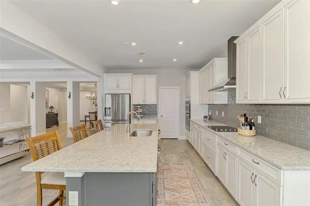 Now is your opportunity to own this 2021 built home located in the amenity rich gated community of Renaissance at Wellen Park. This 4-bedroom, 4 full bathroom, plus bonus room, home was expertly designed with almost 2900sf of open concept living space, making this one of the lowest price per sf one-story pool homes in all of Wellen Park. Situated on a beautiful pond with stunning Florida sunsets, the sparkling heated saltwater pool was upgraded with decorative tile that mimics the waves of the ocean, a tranquil water feature, and a clear view screen. The lanai area is perfect for both entertaining and relaxing! Best of all, NO FLOOD INSURANCE REQUIRED! There is a welcoming front porch to enjoy. Step through the front door to be greeted by a spacious dining area that leads into an oversized living room. Throughout the main living spaces you will find upgraded 12x24 tile, multiple tray ceilings with crown moldings, extra recessed lighting, and designer light fixtures and fans. The kitchen showcases raised panel cabinetry, beautiful Cambria quartz countertops, built-in stainless-steel appliances, and a modern range hood that is vented to the outside. There is a massive island with a single-bowl sink that is perfect for entertaining, and a large walk-in pantry. The eat-in kitchen offers a spacious dinette area with custom wood wall details. Enjoy the water view from every angle as you move through the home. The primary suite is flooded with light thanks to three large windows and has luxury vinyl plank floors, a tray ceiling, and decorative woodwork and wallpaper on the accent wall. The en suite has an oversized dual sink vanity with loads of storage, a large walk-in shower, a separate water closet for privacy, and a massive walk-in closet. The three other bedrooms are in separate areas of the house, making each one private. Each bedroom enjoys luxury vinyl plank floors, making this house completely carpet free! Each bedroom feels like an en suite with access to its own full bathroom, and all of the showers were upgraded with tile to the ceiling. Just before you reach the 4th bedroom which has its own private entry to the front porch, you will find a light-filled bonus room with built-in dry bar. This space is perfect for creating a game/playroom, man-cave, home office, or flex space to suite your needs. The separate laundry room is easily closed off, and there are loads of closets throughout that help to create ample storage at every turn. The 2-car garage was upgraded with a showroom quality epoxy garage floor, and the HVAC system is equipped with UV Light, designed to enhance indoor air quality and reduce allergens. Some of the LOWEST HOA FEES in Wellen Park, Renaissance is a gated lifestyle community with resort style amenities that include a clubhouse with working kitchen and clubroom, pool with zero entry and lap lanes, hot tub, fitness center, outdoor patio with fireplace, tennis courts, pickle ball courts, playground, dog park, and so much more! This home is just minutes from the Atlanta Brave's spring training camp at the CoolToday Park Stadium, as well as the new and exciting town center of Wellen Park. Wellen Park has loads of restaurants, shopping, live music events, and a weekly farmer’s market. Enjoy easy access to I-75 and explore 3 local beaches and historic downtown Venice, all less than 15 minutes from your front door! If you have been dreaming of owning your piece of Florida's paradise, set up a private showing today!