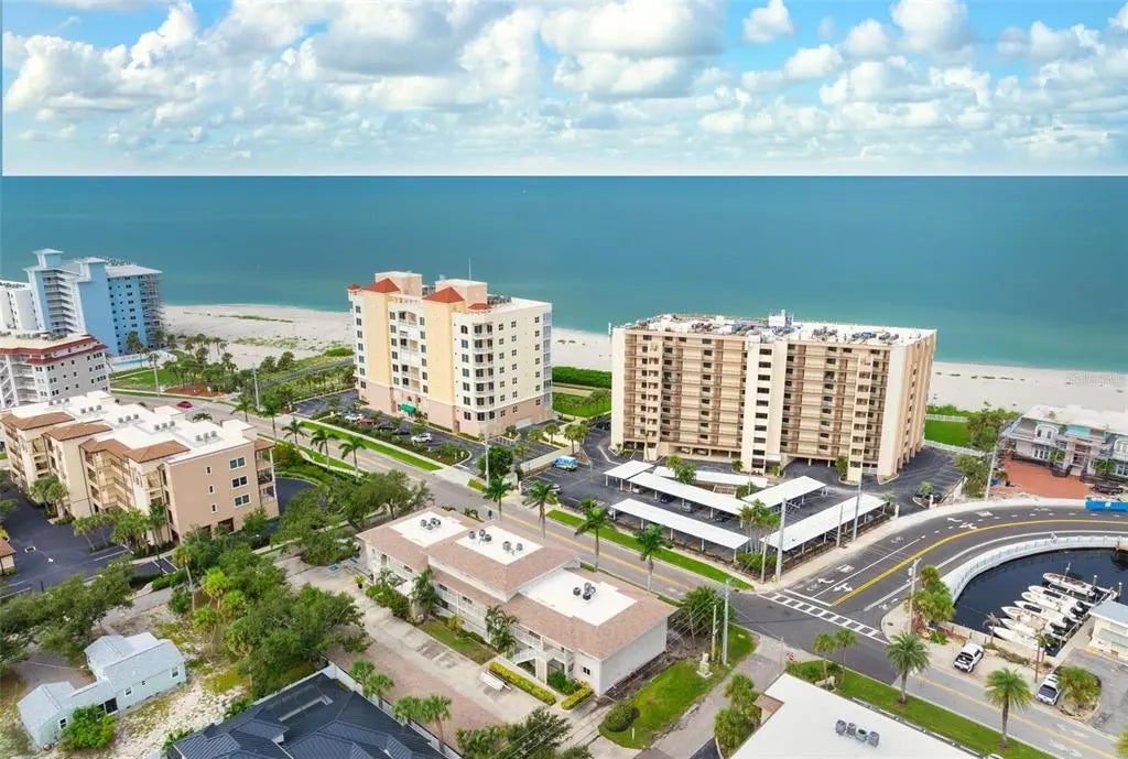 Just steps from the sand, this 2-bedroom, 2.5-bath condo blends coastal charm with a true walkable lifestyle. Less than 500 feet from the Gulf of Mexico, you can start your day with yoga on the beach, then ride your bike into Historic Downtown Venice to browse the farmers market or enjoy boutique shopping and sidewalk cafés. Freedom Boat Club, the Venice Yacht Club, the Venice Jetty, and the Crow's Nest Restaurant are also an easy waterfront stroll away—putting some of the best of Venice right at your doorstep. Inside, the open kitchen features wood cabinetry, stainless steel appliances, and granite counters, seamlessly flowing into a spacious, sunlit great room with a wall of sliders leading to the main balcony. Both bedrooms are designed for privacy and comfort with California closets and ensuite baths, while the primary suite boasts its own private balcony for soaking in Gulf breezes morning and night. The recently renovated primary bath offers a brand-new walk-in shower and all-new fixtures and finishes. With impact-resistant windows and sliders throughout, you’ll have peace of mind along with low-maintenance living. Even better, the association is completing a series of exterior upgrades—including new staircases, gutters, carport roofs, fresh exterior paint, and landscape renovations—with all costs covered by the seller. This is a highly desirable property in excellent condition that is rarely available, offering the perfect opportunity to enjoy a coastal lifestyle where the beach, dining, shopping, and recreation are just a walk or bike ride away.