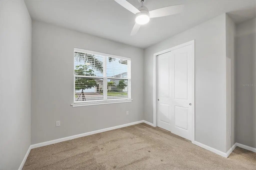 - Interior FeaturesCeiling Fan(s), High Ceilings, In Wall Pest System, Open Floorplan, Solid Surface Counters, Solid Wood Cabinets, Walk-In Closet(s)