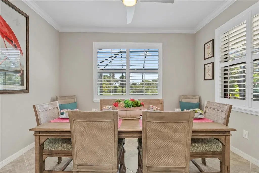- Interior FeaturesCeiling Fan(s), Crown Molding, Eating Space In Kitchen, Kitchen/Family Room Combo, Living Room/Dining Room Combo, Open Floorplan, Primary Bedroom Main Floor, Solid Surface Counters, Thermostat, Walk-In Closet(s), Window Treatments