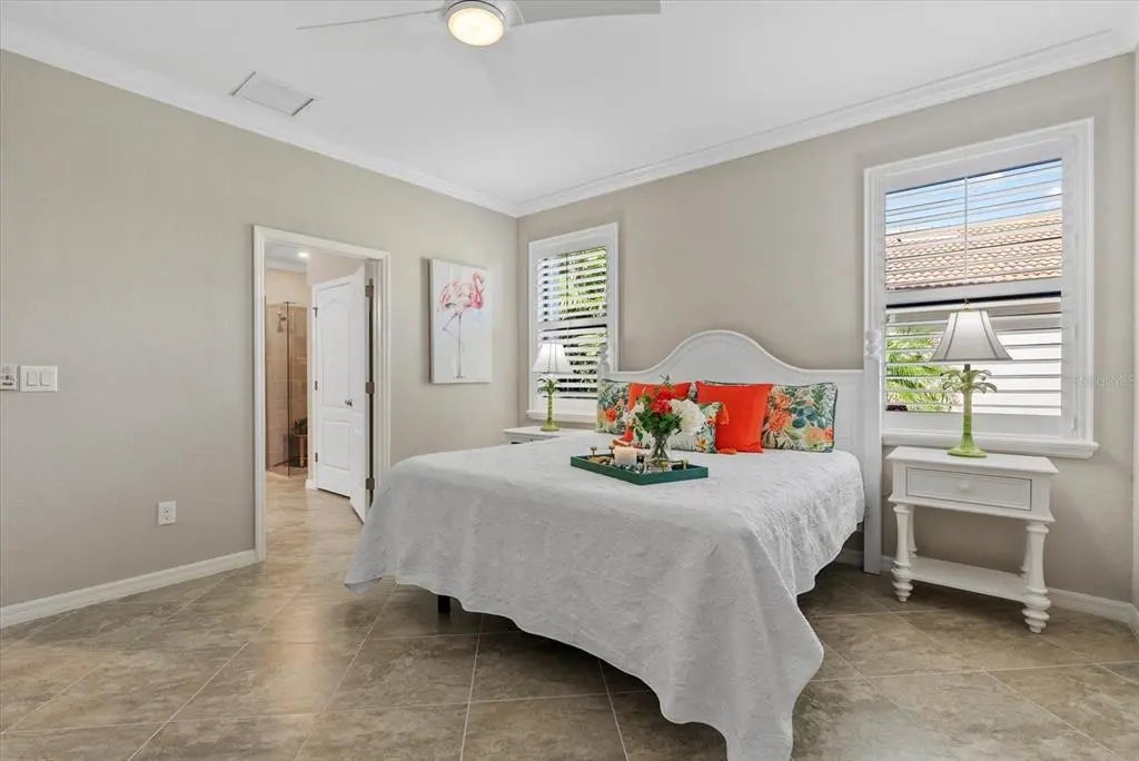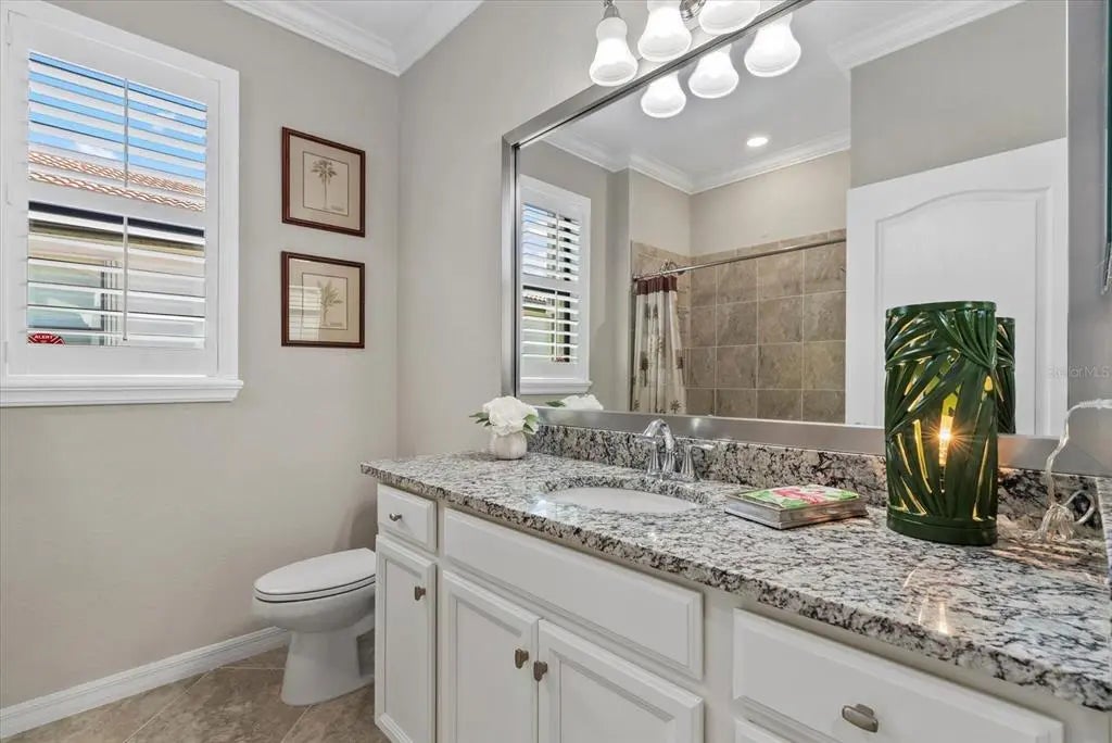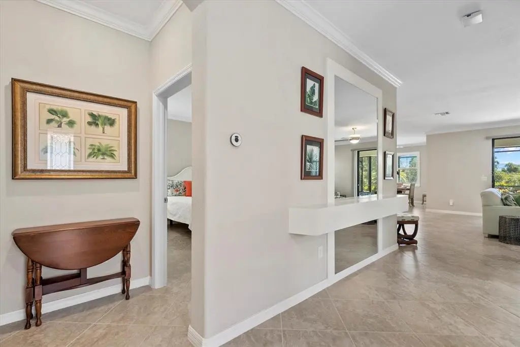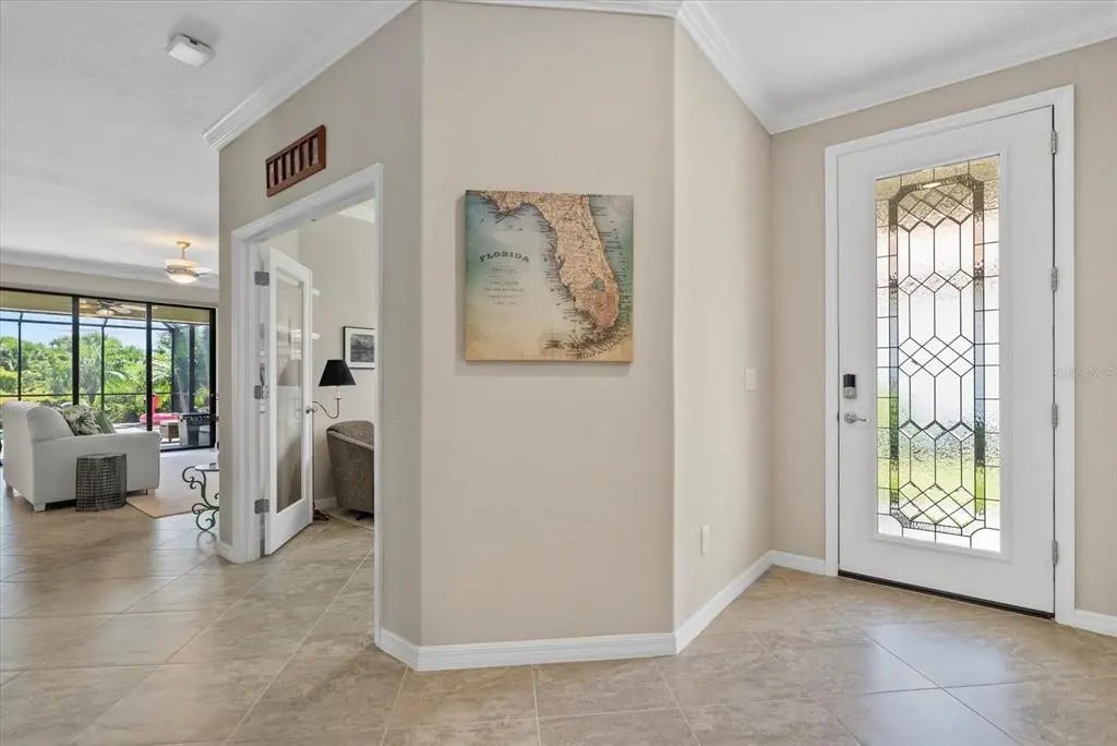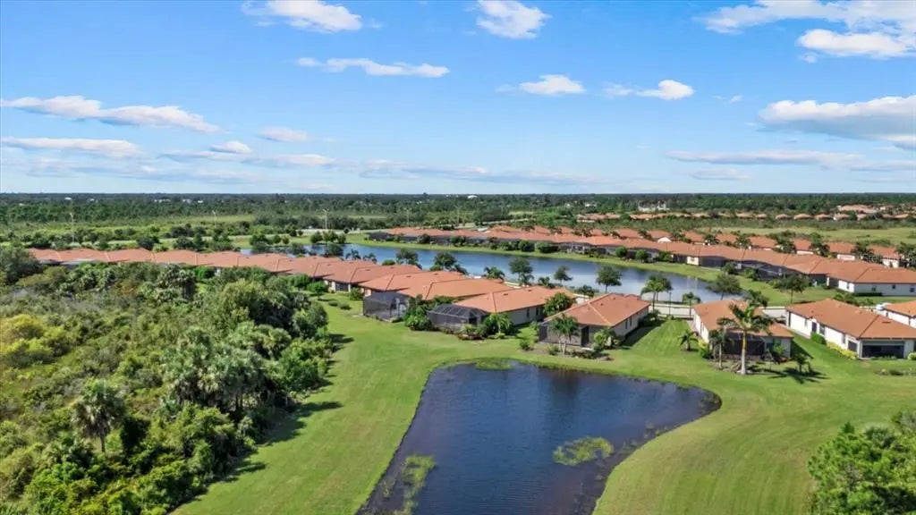 HEATED SALTWATER POOL! WATER VIEWS! HURRICANE PROTECTION! PRIVATE LANAI! Welcome to your own private slice of paradise in the guard gated community of Sarasota National. This meticulously maintained 2 bedroom, 2 bathroom home with a private office/den and 2 car garage was built in 2019 and is situated on a premium lot. This property offers WATER VIEWS in the front and in the back, with no neighbors directly behind and with an expansive green space for an unmatched sense of privacy. From the moment you arrive, you’ll notice the lush landscaping, peaceful setting from the front porch, and welcoming curb appeal. Step inside to a bright, open-concept floor plan featuring ceramic tile floors, crown molding, plantation shutters, and granite countertops throughout. The spacious great room blends seamlessly with the kitchen and dining area, making it perfect for both everyday living and entertaining. The entertainer’s kitchen is equipped with stainless steel appliances, a large center island with room for barstool seating, a corner walk-in pantry, granite countertops, and plentiful cabinetry complete with pull-out shelving. The adjacent dining area is ideally positioned for meals overlooking the pool and lake, while the living room opens through sliding glass doors to your lanai for the perfect indoor-outdoor Florida lifestyle. The spacious primary bedroom offers a custom designed walk-in closet with an en-suite bath featuring dual sinks with granite counters, a spacious walk-in shower, a separate water closet, and a linen closet for extra storage. Guests will enjoy their own private wing with a generously sized bedroom, full bath with tub/shower combo, granite vanity, and convenient hallway linen closet. A large interior laundry room provides abundant cabinetry, granite counter utility sink — making laundry day a breeze. Outside, the screened-in lanai is a showstopper, offering both a covered seating area and sunny pool deck, finished in elegant pavers. Enjoy the evening sunsets with this lanai! The heated saltwater pool is perfect for year-round enjoyment which features a durable Pebbletec finish. The motorized Storm Smart HURRICANE PROTECTION screens allow you to control airflow and privacy, while the surrounding landscaping creates a lush and tranquil backdrop loaded with privacy. You’ll love sitting outside and soaking up the sweeping WATER views and the open green space beyond — the setting feels like a private resort. Additional HIGHLIGHTS include accordion hurricane shutters, a retractable screen on the front door and outdoor solar lighting along the front and the back of the home. Living in Sarasota National means enjoying resort-style amenities including a clubhouse with indoor dining, resort style pool with outdoor tiki bar dining, social activities, whirlpool tub, playground, fitness center, tennis, pickleball, bocce ball, and more! Sarasota National is an Audubon International Silver Signature member home to a variety of wildlife. All this is just minutes from Downtown Venice, Wellen Park, CoolToday park, shopping, dining, Gulf beaches, and easy access to I-75. This home checks every box — privacy, sweeping water views, a heated saltwater pool, and open layout, all within one of Venice’s premier gated communities. Please copy and paste the following link into your browser to view the luxury video of this home: https://player.vimeo.com/video/1109996551?badge=0&autopause=0&player_id=0&app_id=58479