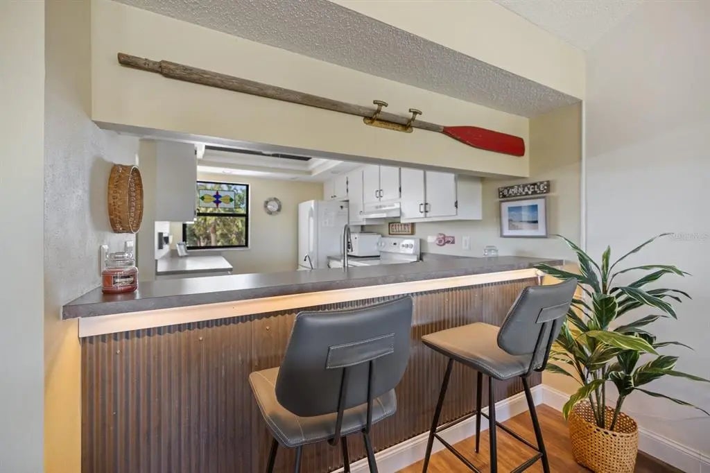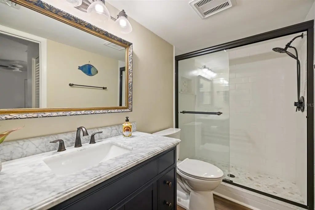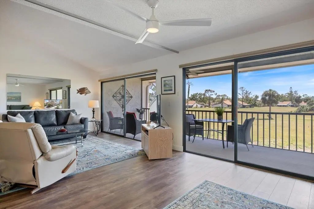 Welcome to your carefree slice of paradise in Bird Bay Village. This bright and airy second-floor condo is designed for relaxed Gulf Coast living, offering vaulted ceilings, newly installed luxury vinyl plank flooring, and a smart, flexible layout that fits your lifestyle. The two-bedroom, two-bath convertible floorplan provides versatility, with the second bedroom currently styled as a cozy additional living space—perfect for guests, quiet reading, or working remotely. The kitchen is updated with modern appliances and flows seamlessly into the open-concept living and dining areas. Both the primary and guest bathrooms have been completely renovated with thoughtful finishes, giving the home a fresh, move-in ready feel. One of the standout features is the oversized screened lanai, where you can sip your morning coffee or unwind in the evening while enjoying tranquil, unobstructed views of the former Hawks Run golf course. The lanai also includes in-unit laundry and ample storage space for added convenience. This condo is being offered turnkey furnished, minus artwork and personal items, so you can step right into the Florida lifestyle. Located just a short stroll from the Phase II pool and grill area, this home is perfectly positioned for enjoying the community’s many amenities. Across the street, a recently completed boardwalk offers stunning views of Roberts Bay, adding yet another peaceful place to unwind. Bird Bay Village is known for its lush landscaping, active lifestyle, and resort-style features. Residents enjoy access to a junior Olympic-sized pool, tennis and pickleball courts, fully equipped fitness center, and a clubhouse with a full kitchen for social gatherings. The location is unbeatable—just minute to Venice Beach, historic downtown Venice, and scenic trails along the Legacy Trail, all offering endless opportunities to explore, relax, and connect. Whether you’re searching for a second home or your future retirement retreat, this beautifully updated condo offers the best of Florida’s Gulf Coast lifestyle. With comfort, convenience, and a warm community atmosphere, every day here feels like a vacation. Schedule your private showing today and come see why it’s a great day in Paradise!