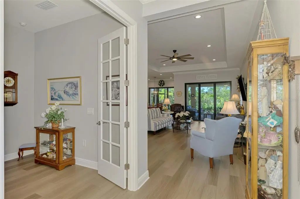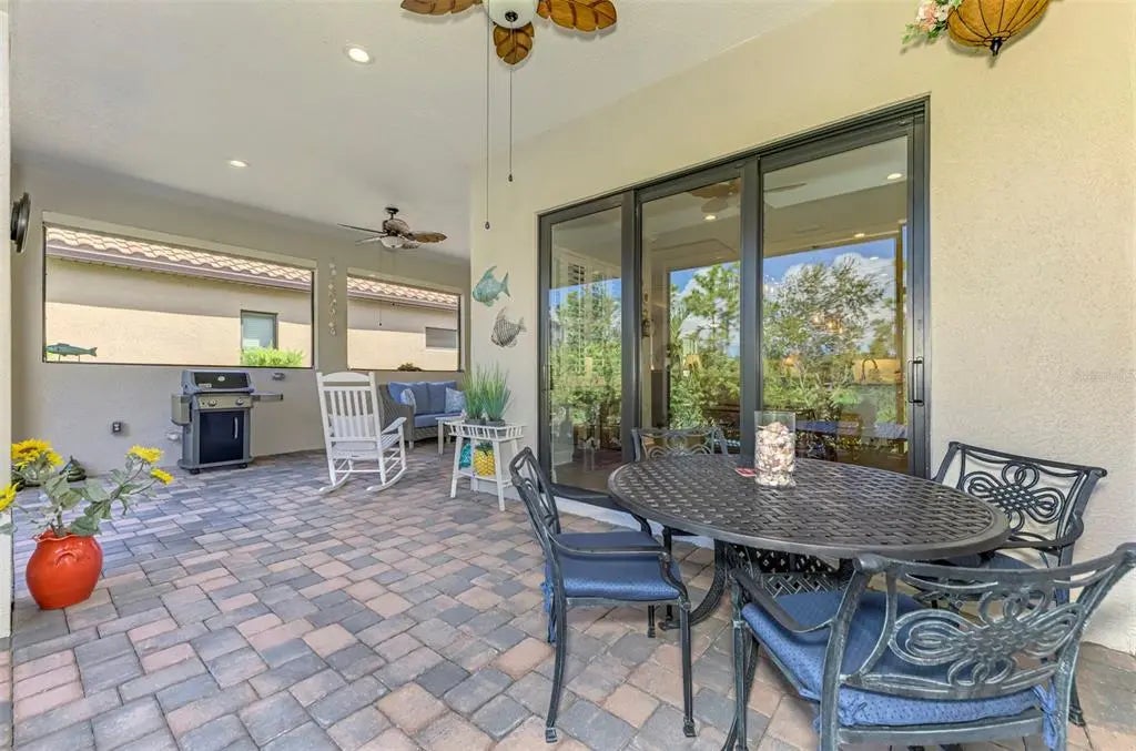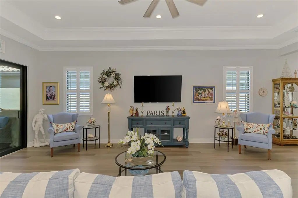Why wait to build when you can have a newer home (Built 2023) with Sellers offering a $10,000 closing cost incentive? Come take a look at this sought-after Sea Mist Model with 3 BDRM 2.5 BA 3-car garage home with 2,427 SF of beautiful living space! This stunning home has Hurricane Impact Glass Windows and Doors along with pre-wiring for a generator! As you walk through the front door, you immediately feel the open floor plan and bright light coming through the double door sliders to the lanai and outdoor living space! The kitchen is a chef’s dream with a large island bar, upgraded kitchen appliances, quartz countertops, pull-out kitchen drawers with soft close – a perfect kitchen for entertaining guests! This outstanding home has vinyl plank flooring throughout, crown molding, plantation shutters and more than $161K in lot and option upgrades! As you walk onto the lanai, you feel peace and serenity with the private backyard and side lot that is preserve. Enjoy spending quiet evenings on this lanai watching the beautiful Venice sunsets! The lanai is also pre-plumbed for an outdoor kitchen, has electrical power installed for a pool and has outside cable for a TV along with sun/privacy shades. One of the many great selling features of this home is the large extended driveway that allows 6 cars to park in the driveway so you don’t have to park on the street when entertaining guests! Grand Palm offers a plethora of amenities, including a full-time activities director, three pools with shaded cabanas, a fun slide, splash park, playgrounds, clubhouses, fitness center, pickle ball, and various sports courts. Nature enthusiasts will appreciate the fishing and kayak launch, 26+ miles of walking and biking trails, and Adventure Lake for water activities. Beyond the community’s borders, you’ll discover the vibrant development of Wellen Park, boasting shopping, dining, the Braves Spring Training facility, and easy access to major roadways and airports. And let’s not forget, Florida’s renowned beaches are just a short drive away, providing endless opportunities for relaxation and recreation. With its perfect blend of comfort, style, and recreational opportunities, this home in Grand Palm offers a truly unparalleled lifestyle experience. Come make it yours today!
