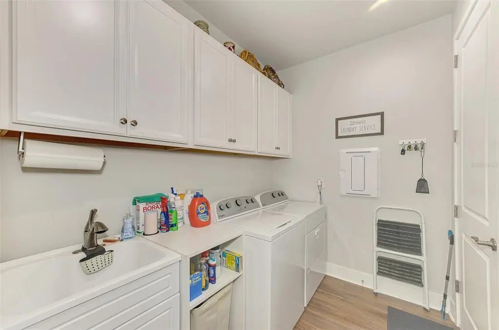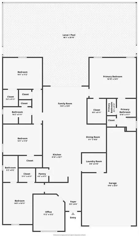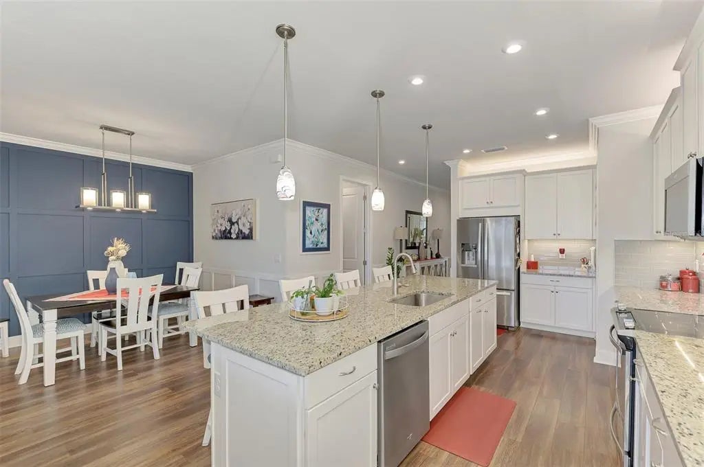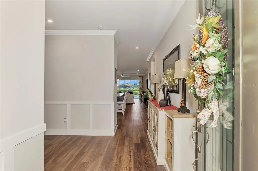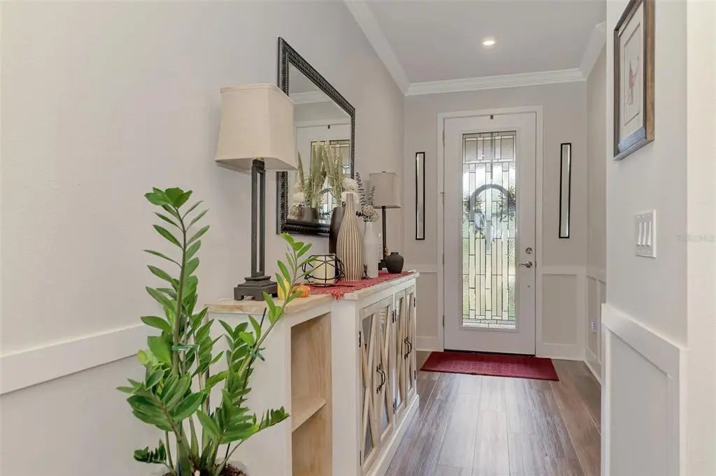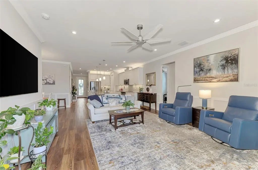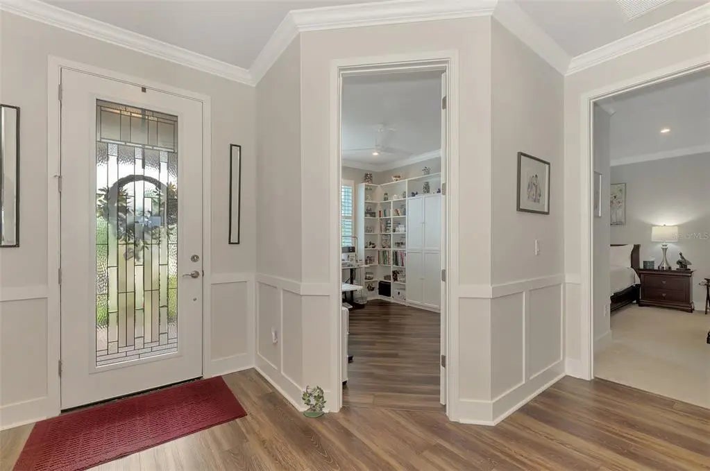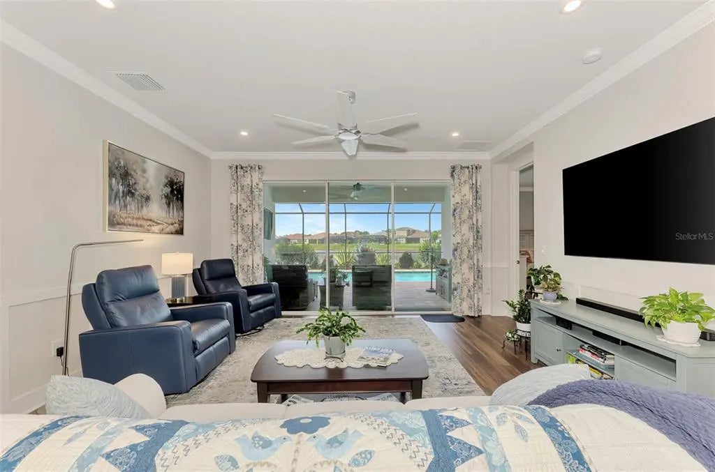 Spacious and inviting, this single level gem has 2332 square feet of living space with 4 bedrooms, flex room, 3 baths and a 2-car tandem garage for extra storage space. A must with Florida living! This home is what you need for a growing family or when the grandkids come to visit. This pool home offers comfortable living with an open floor plan, crown molding throughout and luxury plank flooring in the main living areas for that comfortable relaxed feeling. The kitchen is a cooks dream with its extra-large island and overlooking the dining and living spaces, perfect for entertaining. The owner's suite and one additional bedroom both include an ensuite bathroom and walk-in closets. The remaining 2 bedrooms both include walk-in closets and share a full bathroom. Enjoy seamless indoor-outdoor living with triple sliding doors that totally open to the outdoor retreat. Enhancements include hurricane windows and outdoor hurricane curtain on lanai, recently screened pool cage, added landscaping and lighting, whole house water softener and filtration system, AC soft start, insulation added in garage and driveway widened. Over $55,000 in upgrades! Located in the vibrant community of Renaissance at Wellen Park and just a golf cart ride away from downtown Wellen Park which is ranked #6 best-selling master planned community in the US where you can enjoy shopping, restaurants, entertainment and so much more. Don't miss this opportunity to own your piece of paradise!