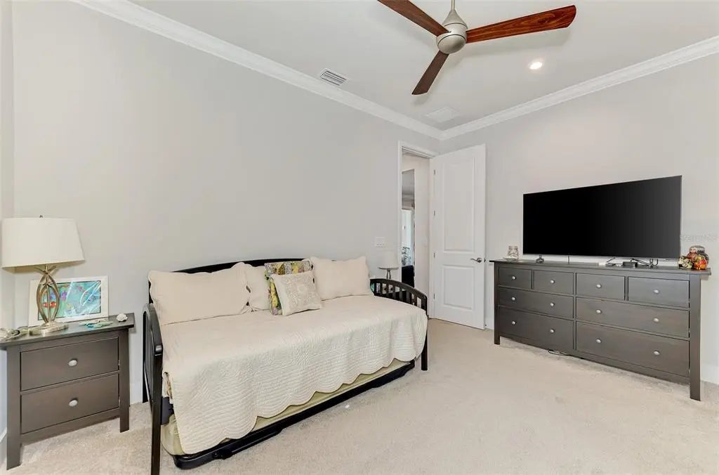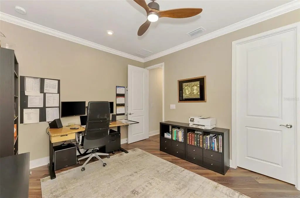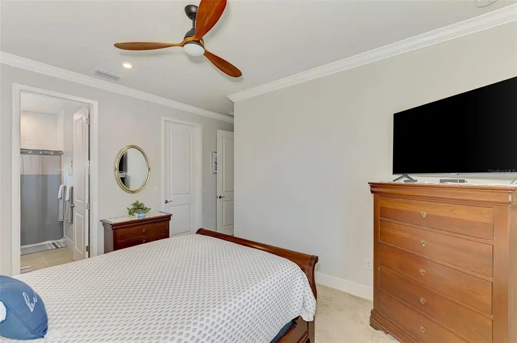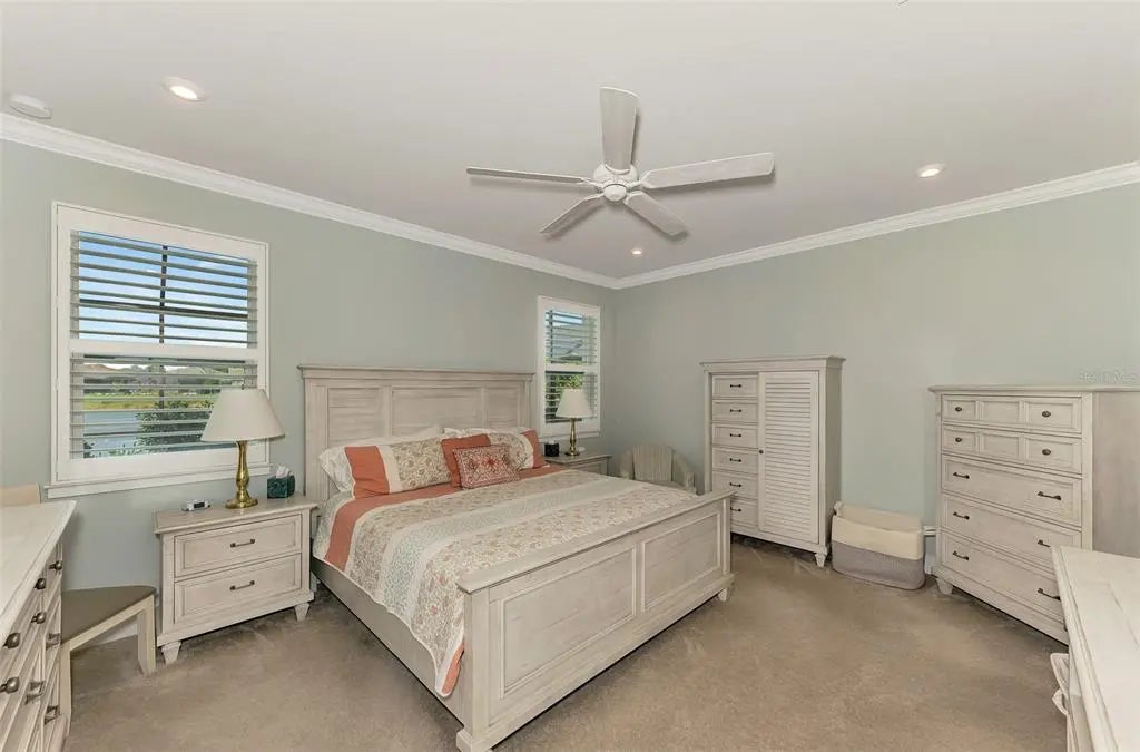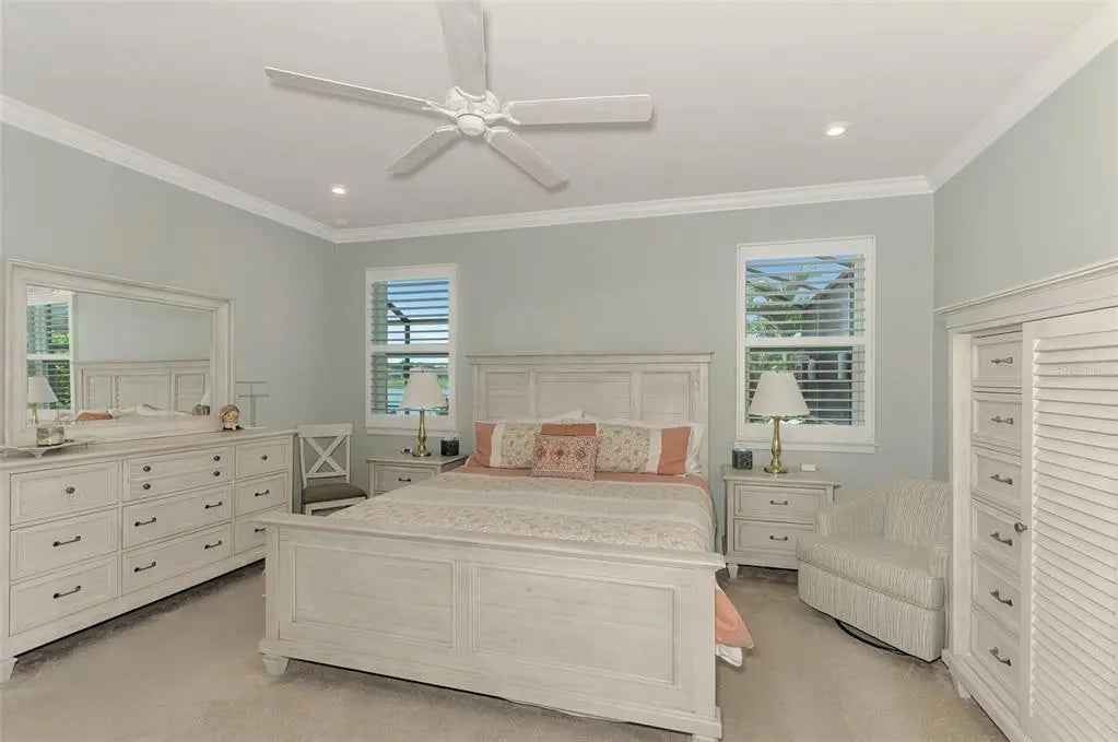 - Interior FeaturesCeiling Fan(s), Crown Molding, High Ceilings, Pest Guard System, Stone Counters, Walk-In Closet(s)