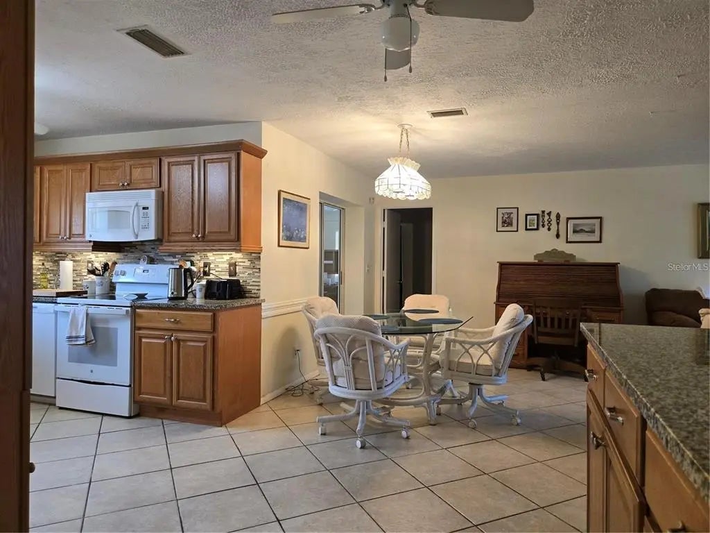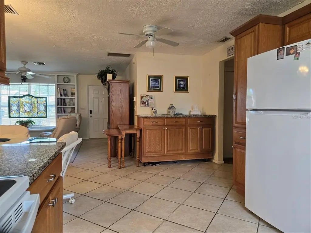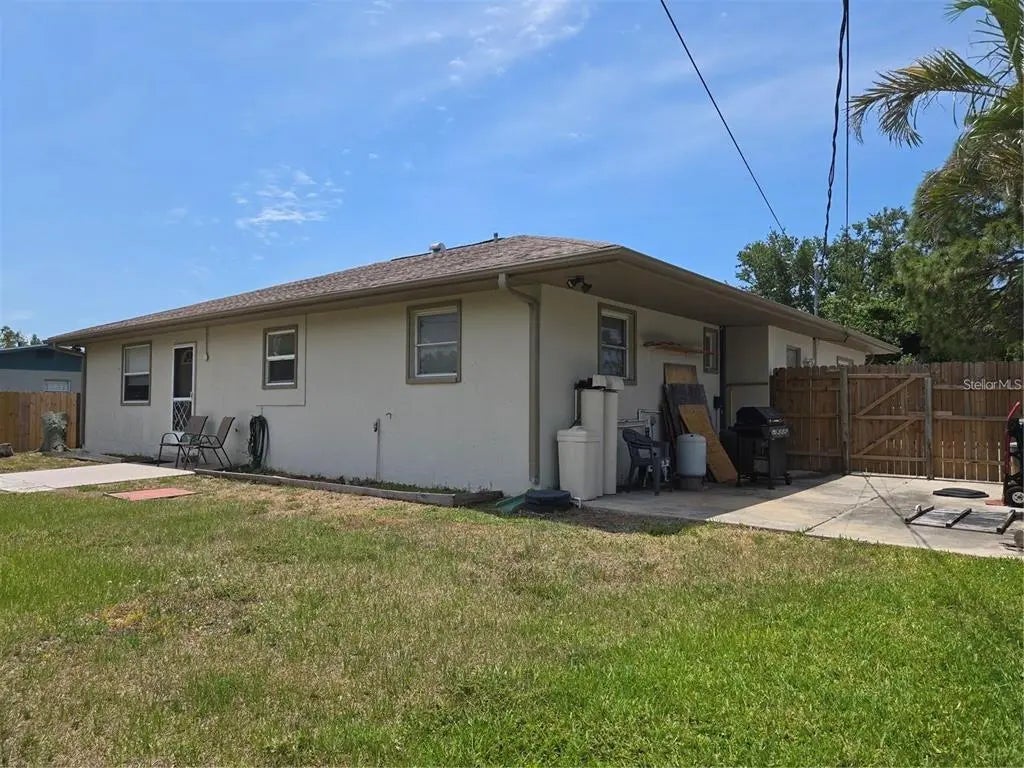 No Deed Restrictions! No HOA! No CDD! Not in a Flood Zone! Welcome to this well-maintained 2-bedroom, 2-bath single-family home offering comfort, flexibility, and room to grow—without the burden of community fees or restrictions. Nestled in a non-flood zone area, this home is ideal for those seeking freedom and functionality. Step inside to a spacious and thoughtfully laid-out interior. The kitchen features beautiful wood cabinets, granite countertops, and abundant cabinet space, perfect for the home chef or anyone who loves to entertain. The primary bedroom boasts a large walk-in closet, while the second bedroom is perfect for guests or family. A bonus room with its own closet provides versatile space for an office, den, or even a third bedroom. You'll also love the oversized 2-car garage, complete with a workbench—great for storage, hobbies, or projects. Outside, there's a large parking pad, ideal for boat, camper, or RV parking, something you rarely find in homes without restrictions. With solid features, no flood insurance required, and space to truly make your own, this home offers unbeatable value and peace of mind.